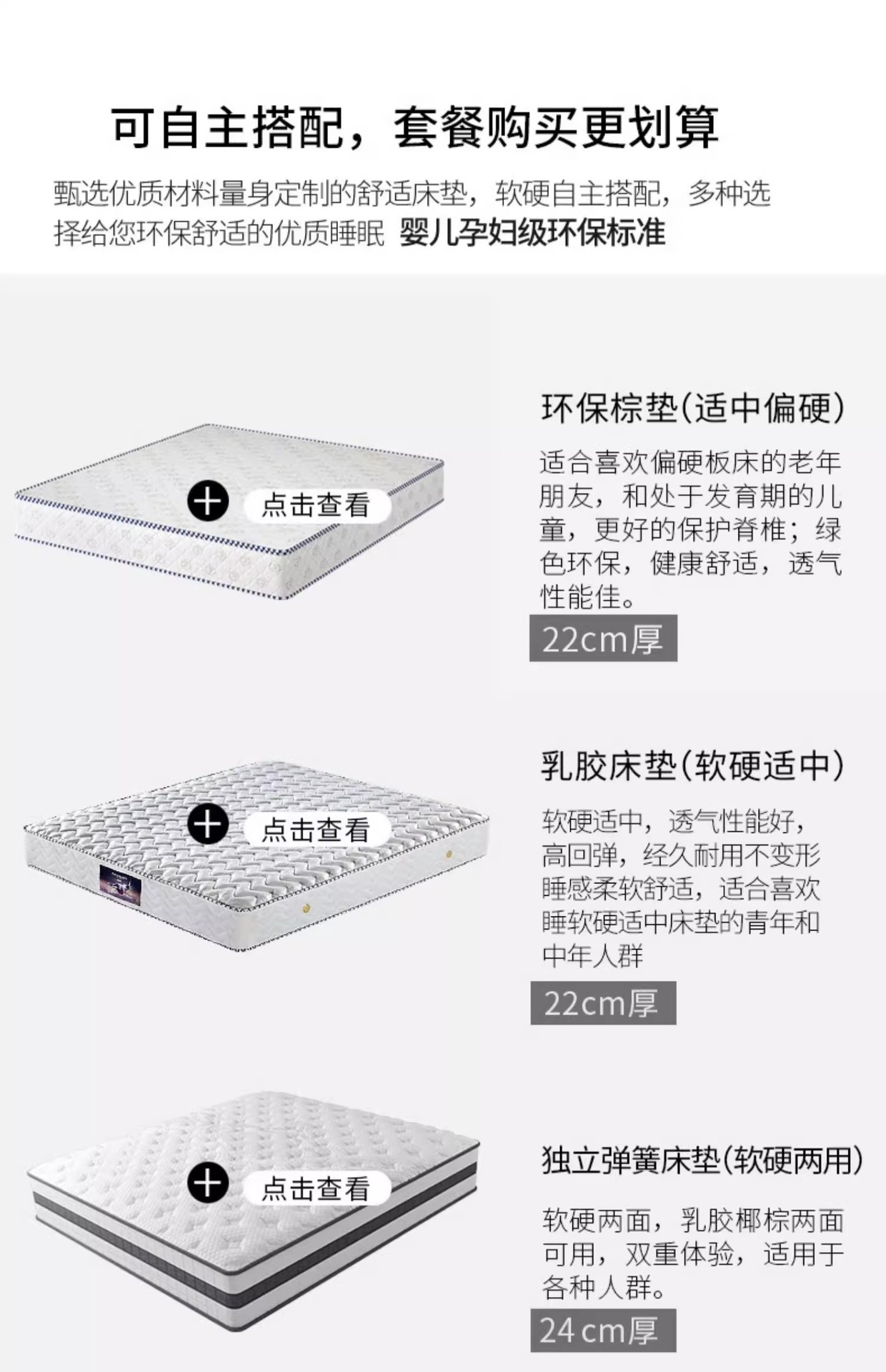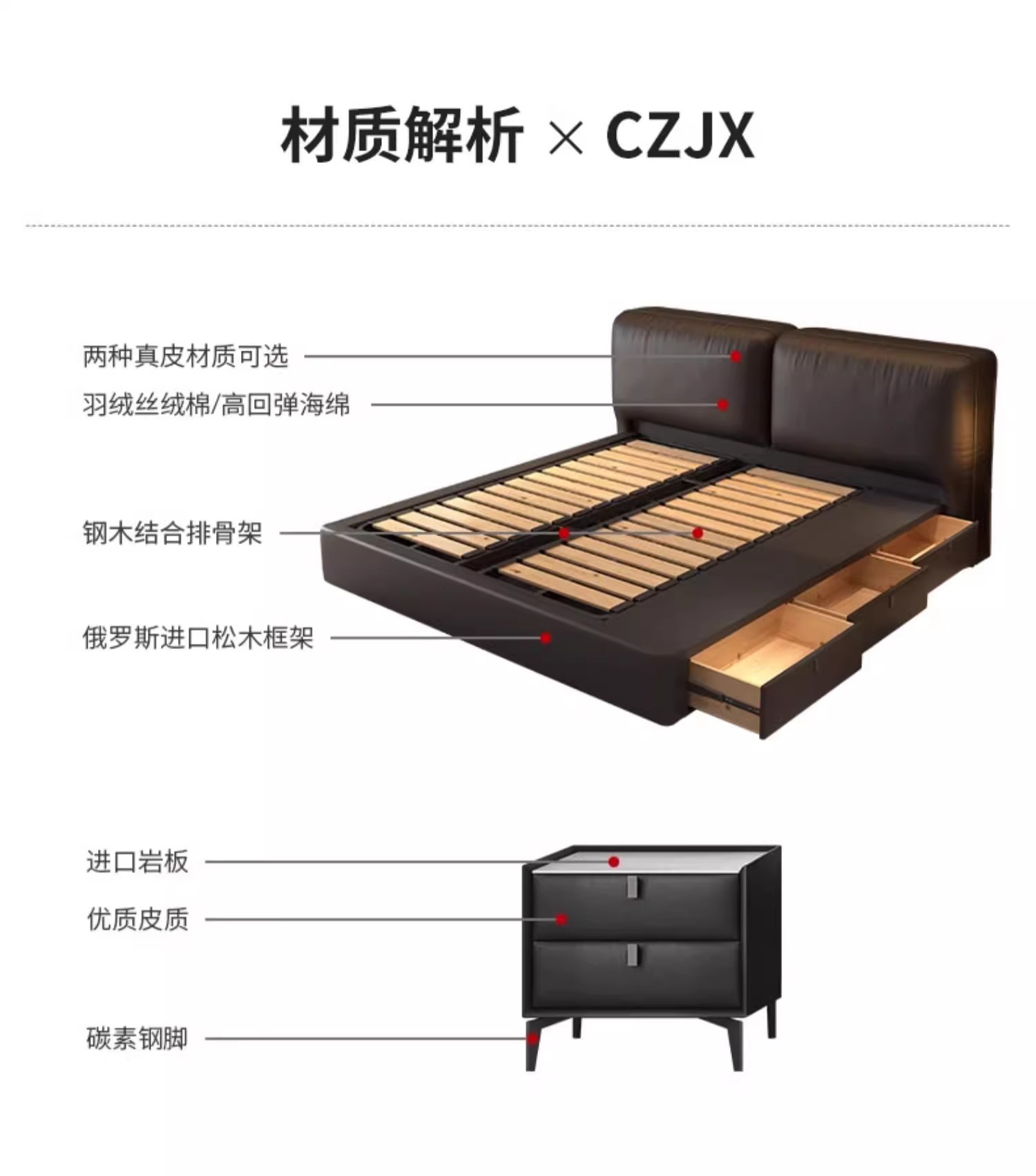 • [일반/플랫 패턴 1층 천연가죽] 싱글 침대 + 침대 옆 테이블*2 + 독립 스프링 매트리스(