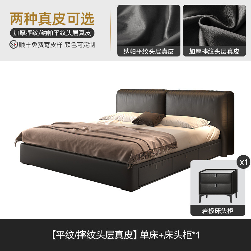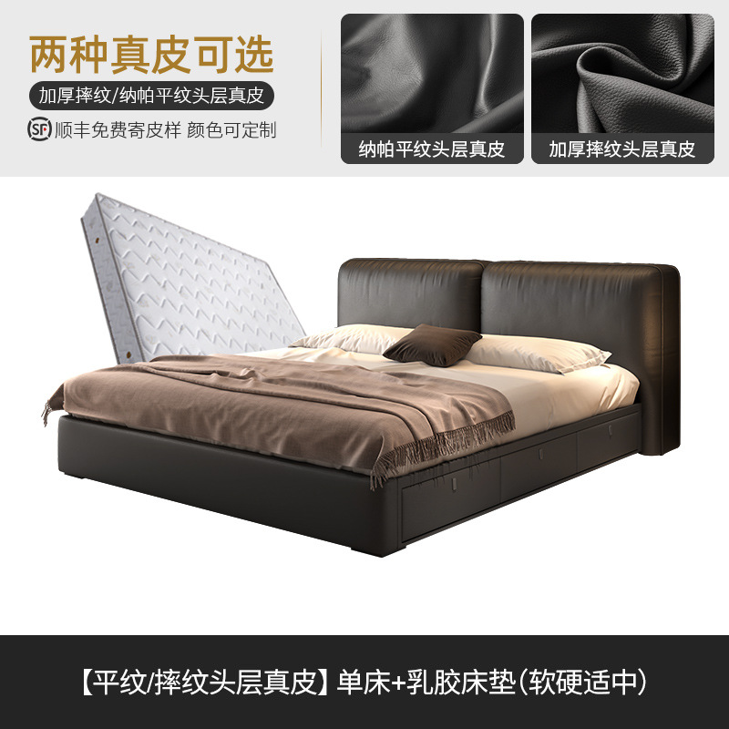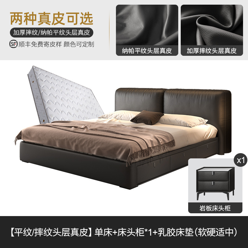 • [일반/플랫 패턴 1층 천연가죽] 싱글 침대 + 침대 옆 테이블*1 + 라텍스 매트리스(소프트 및 하드)