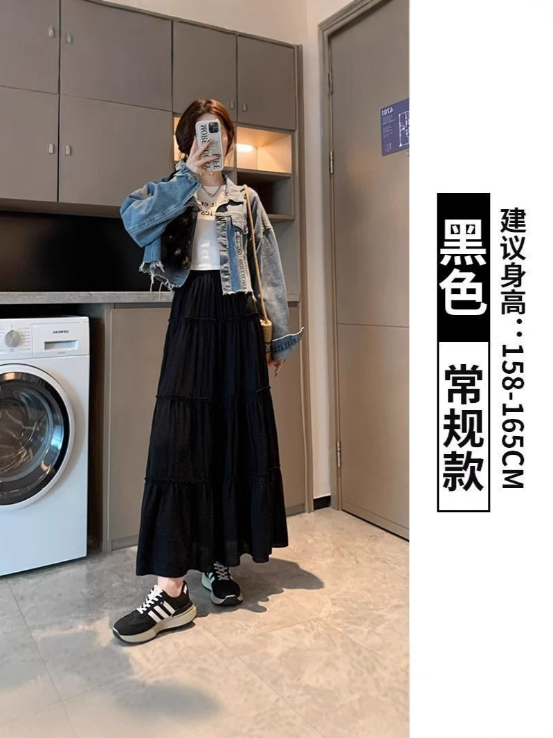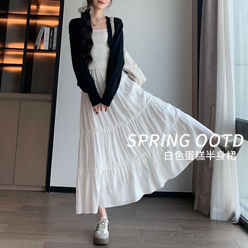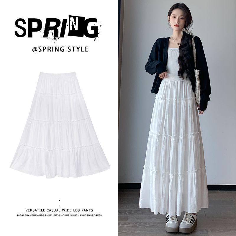 2025 봄 가을 신상 미니멀한 키의 소녀들을 위한 미디길이 하이웨이스트 A라인 투투 스커트