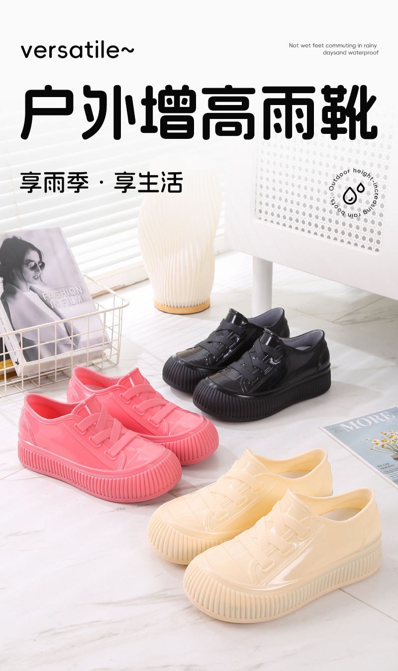 여성용 미끄럼 방지 로우탑 레인부츠, 패셔너블한 두꺼운 밑창 워터슈즈, 여성용 키높이 레인부츠, 방수 주방화, 귀여운 고무신스토어 가기
