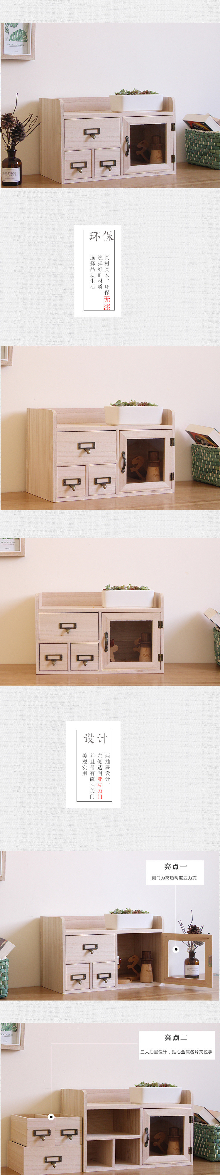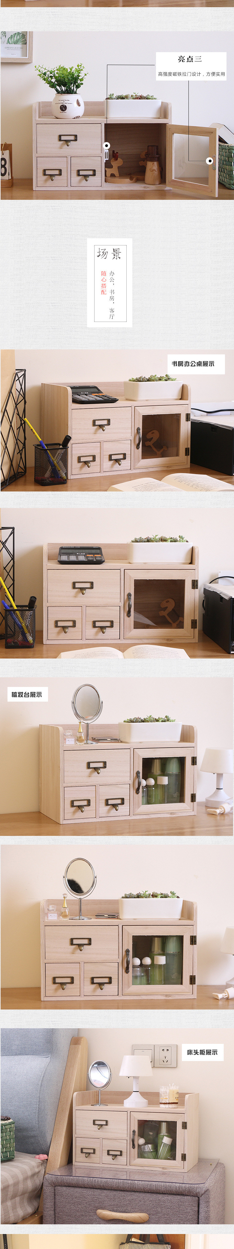창의적인 데스크탑 단단한 나무 보관함 서랍형 도어 보관 캐비닛 사무실 책상 보관함 나무 보관함