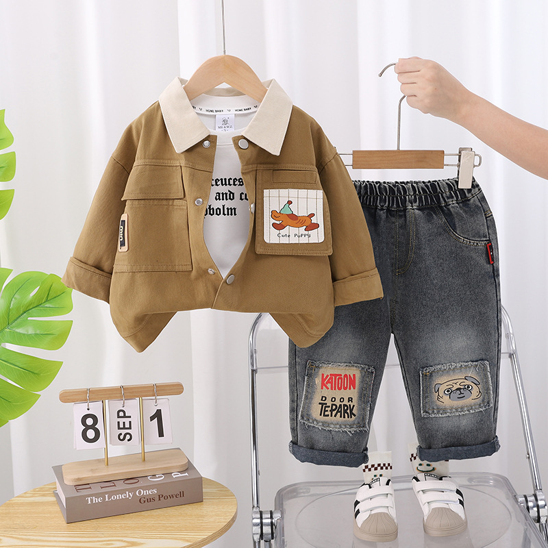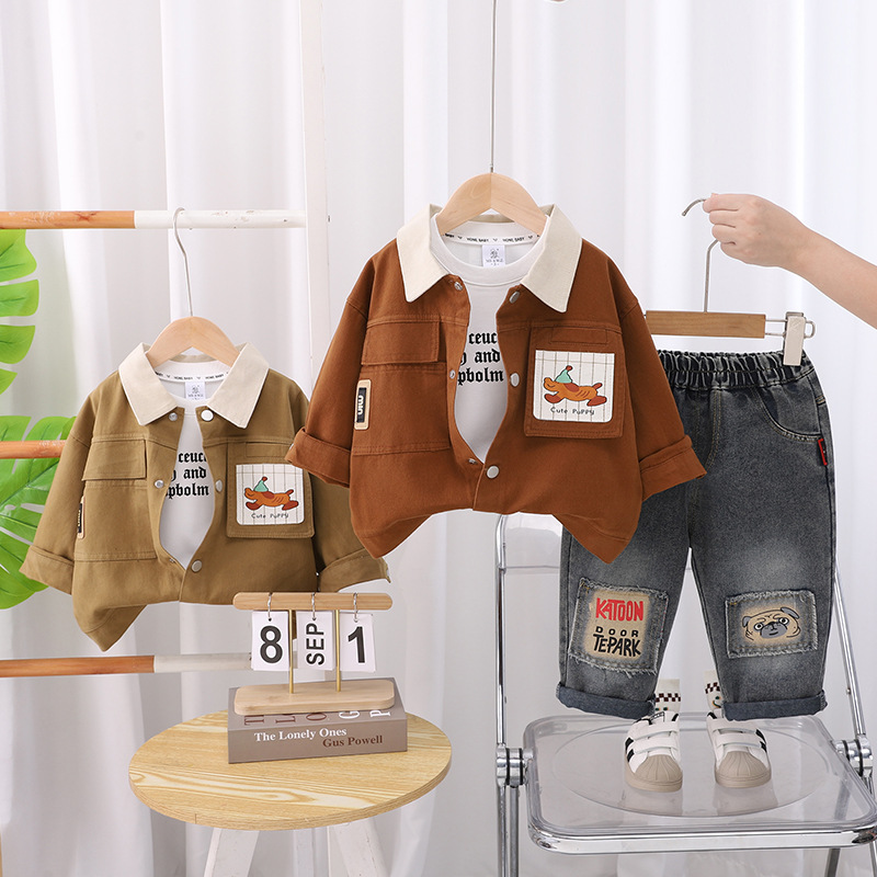 소년 가을 의류 세트 2025 새로운 한국어 스타일 어린이 봄, 가을 강아지 3 피스 아기 옷 드롭 배송