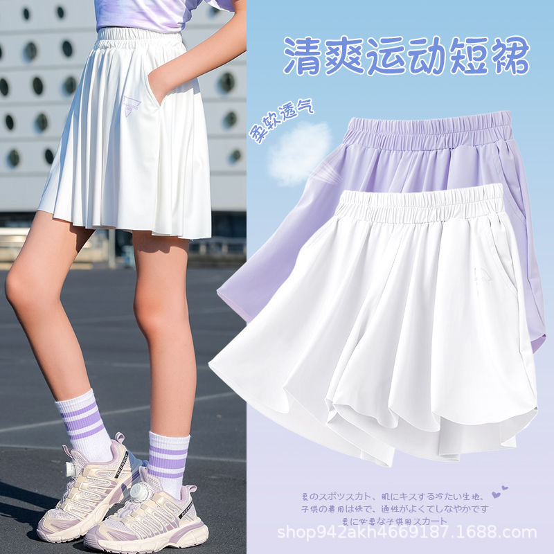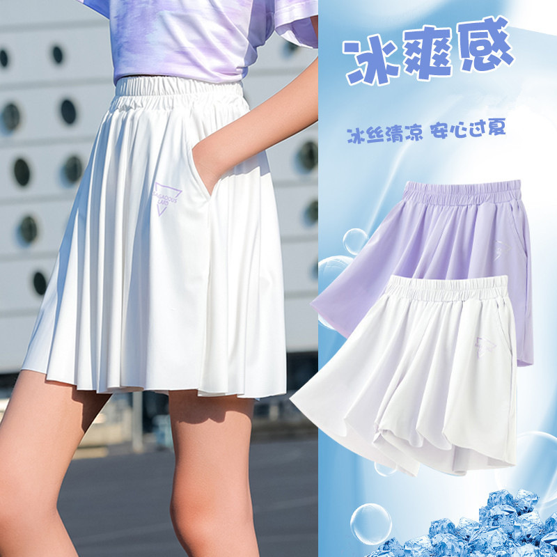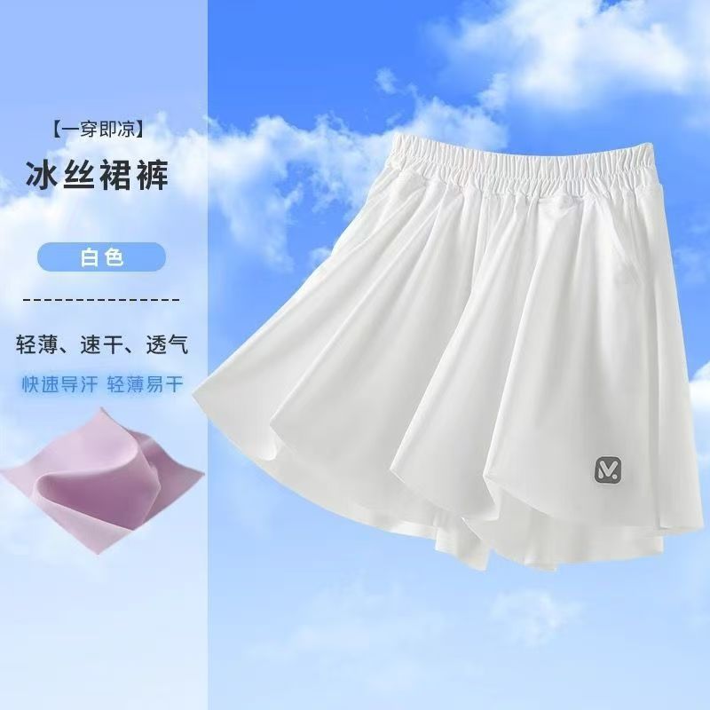 여아 반바지 여름 2025 새로운 스타일 중대형 아동 스포츠 속건성 5부 바지 아동용 얼음 실크 루즈 팬츠 스커트