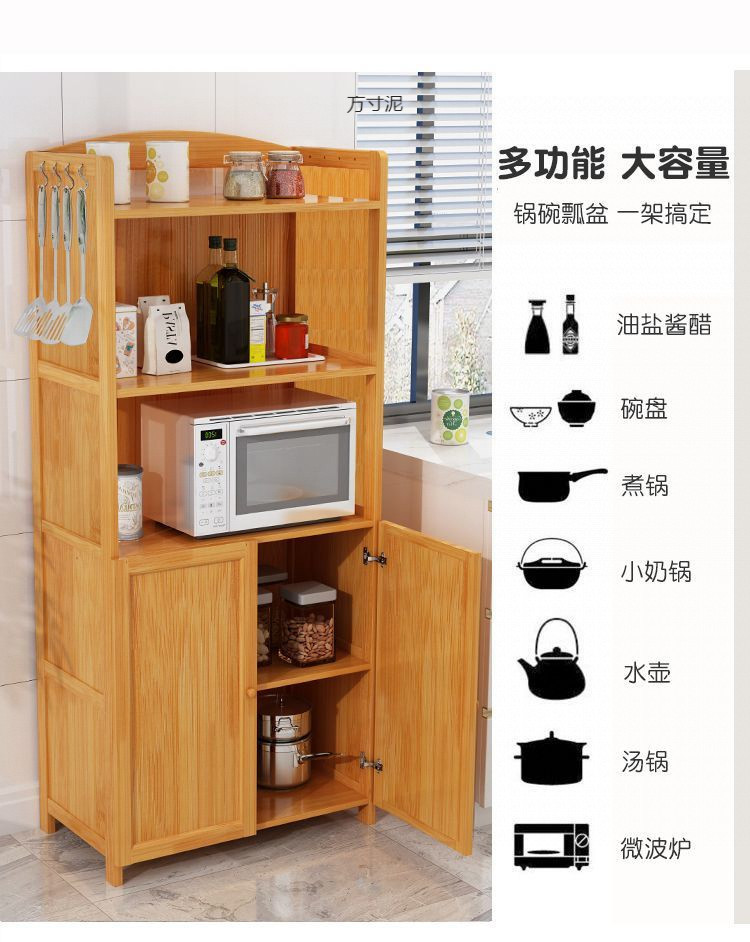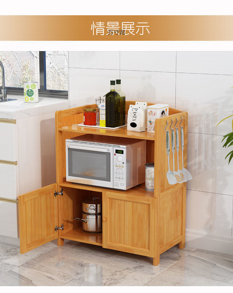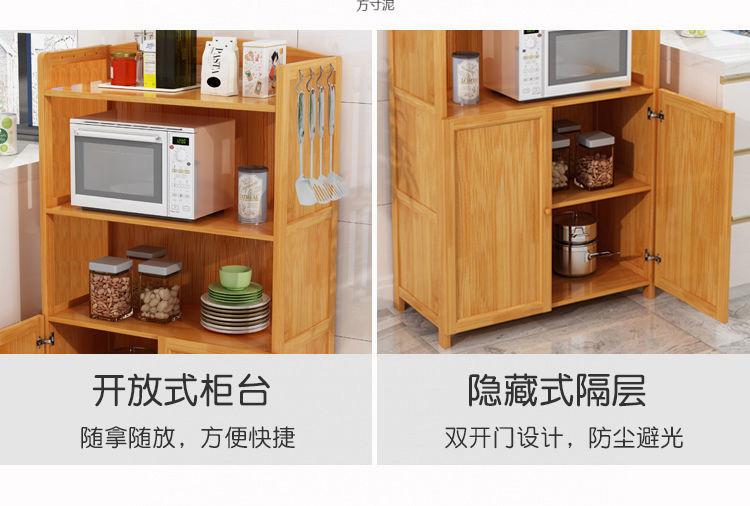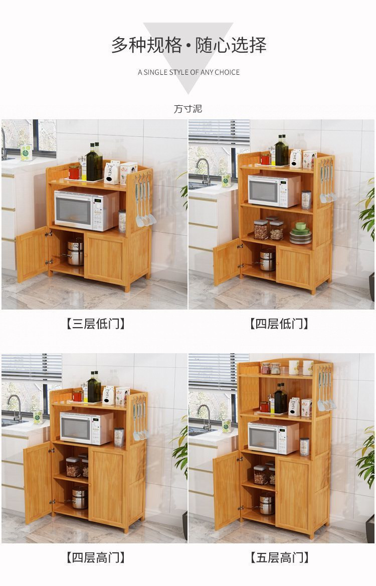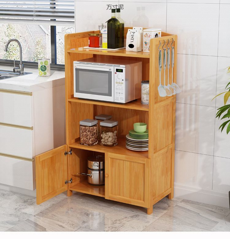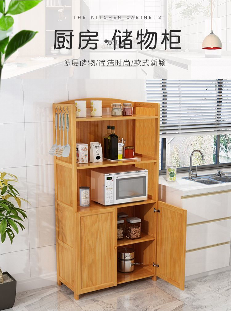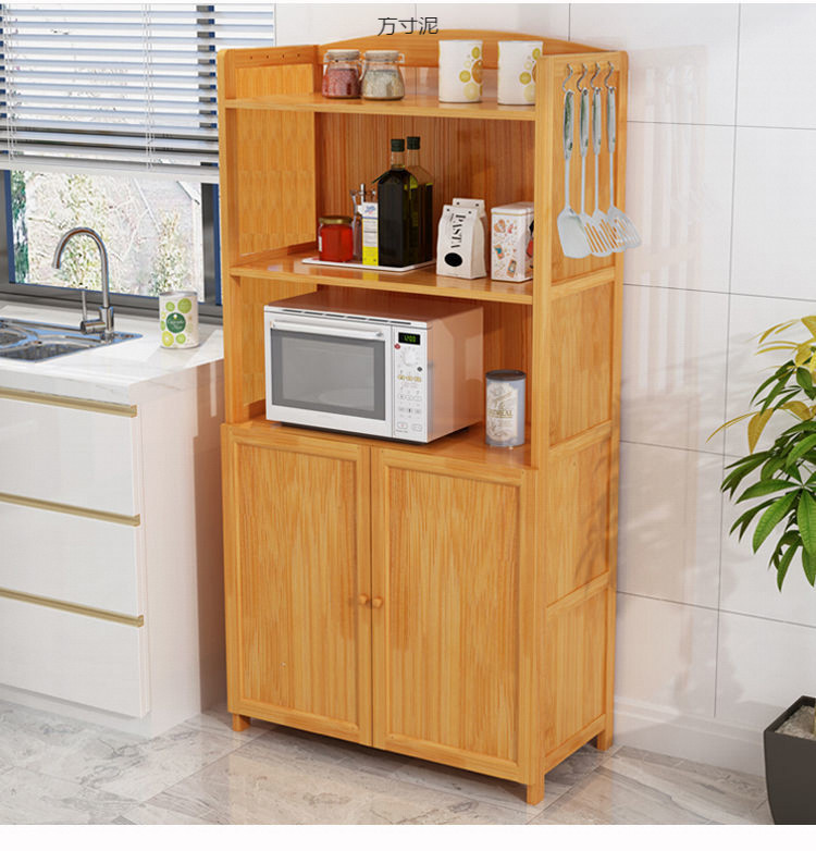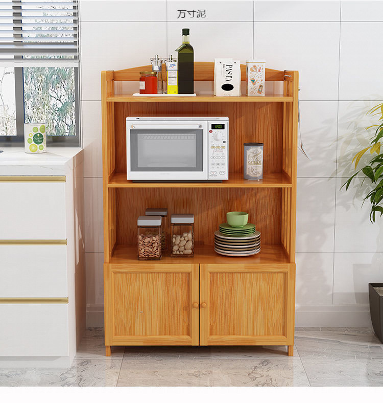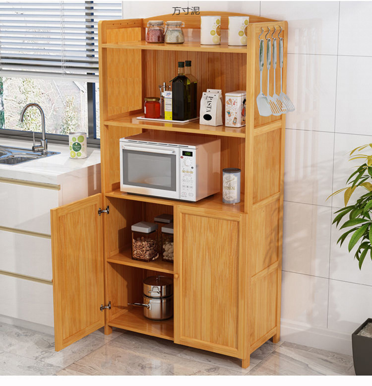 주방 정리 및 보관 캐비닛 전자 레인지 보관 랙 보관 캐비닛 도어가있는 바닥에서 천장까지 다층 단단한 나무 선반 도어 캐비닛스토어 가기