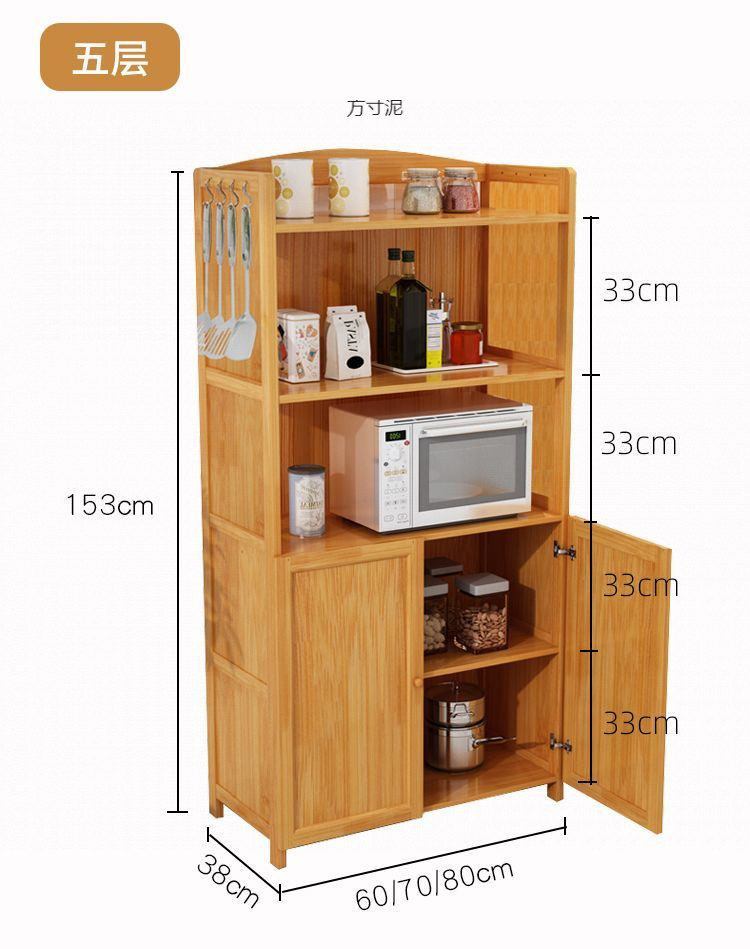 주방 정리 및 보관 캐비닛 전자 레인지 보관 랙 보관 캐비닛 도어가있는 바닥에서 천장까지 다층 단단한 나무 선반 도어 캐비닛