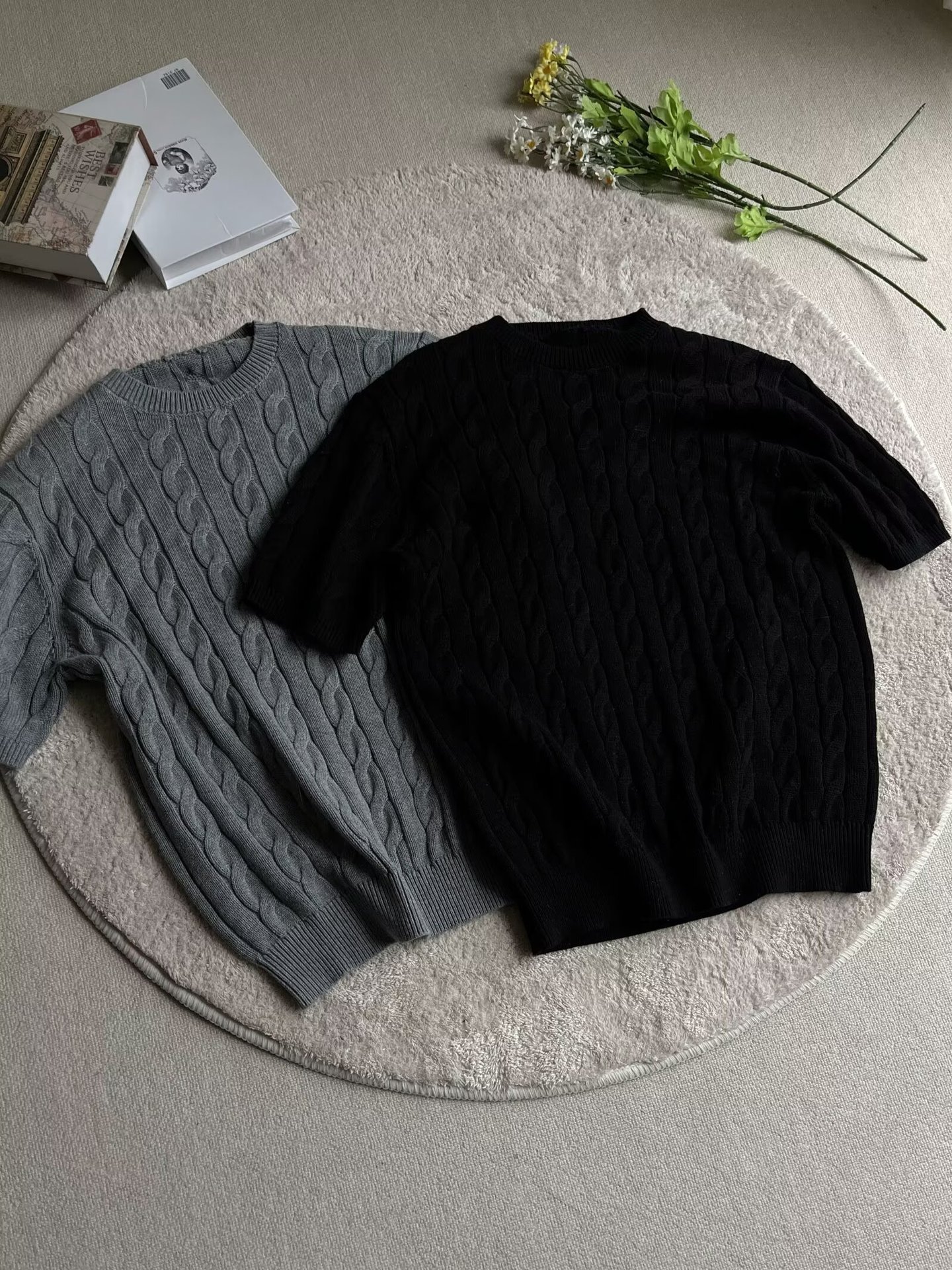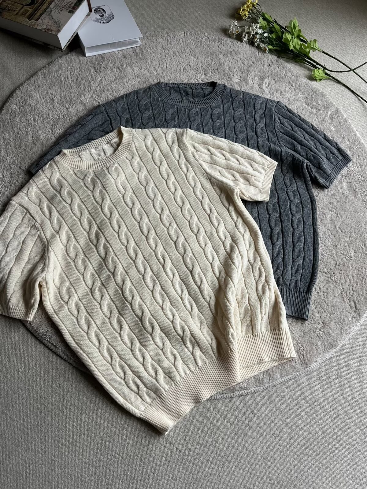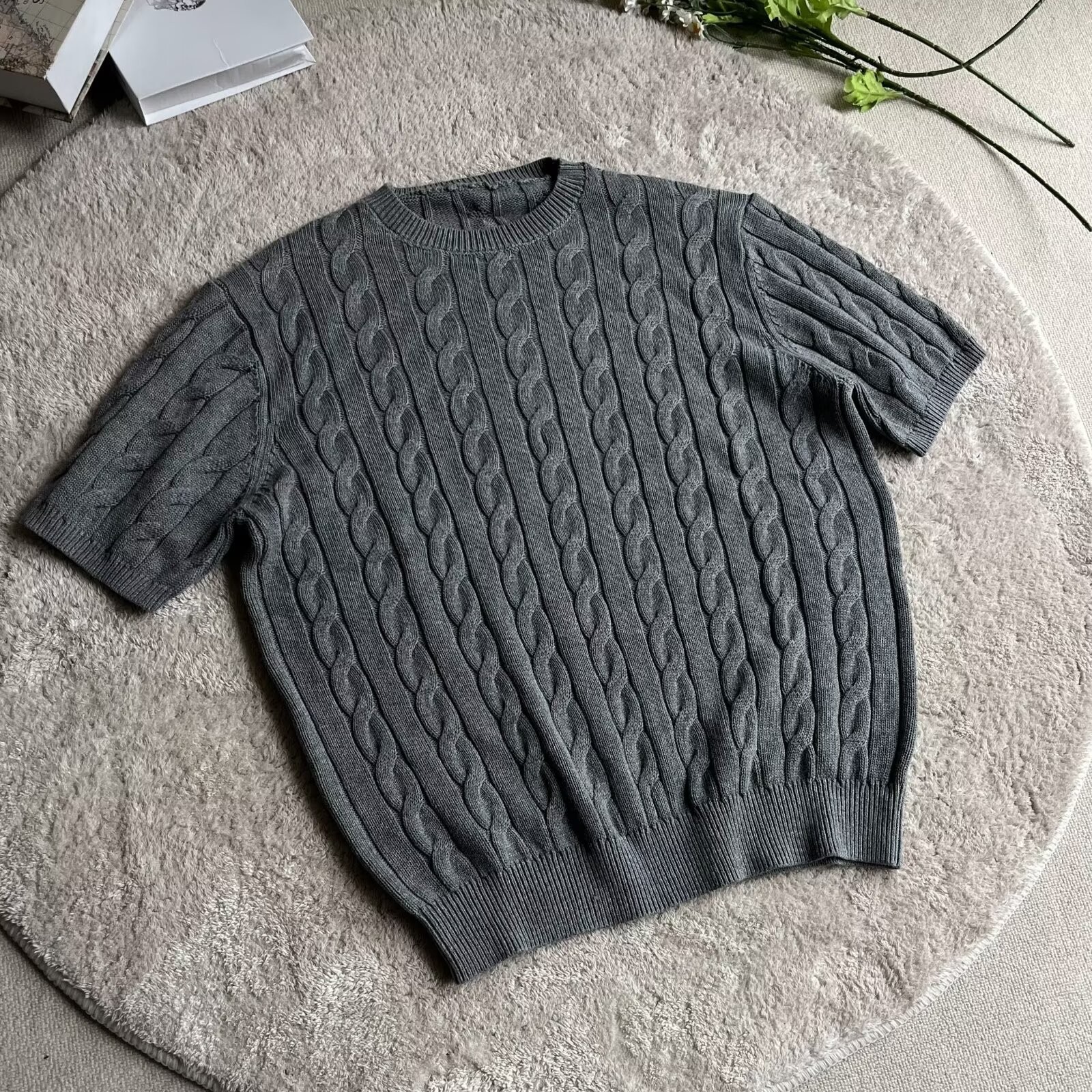 여름 남성용 고품질 트위스트 스트레치 니트 반팔 티셔츠 동대문 신작 가볍고 성숙한 게으른 스타일 반팔 탑