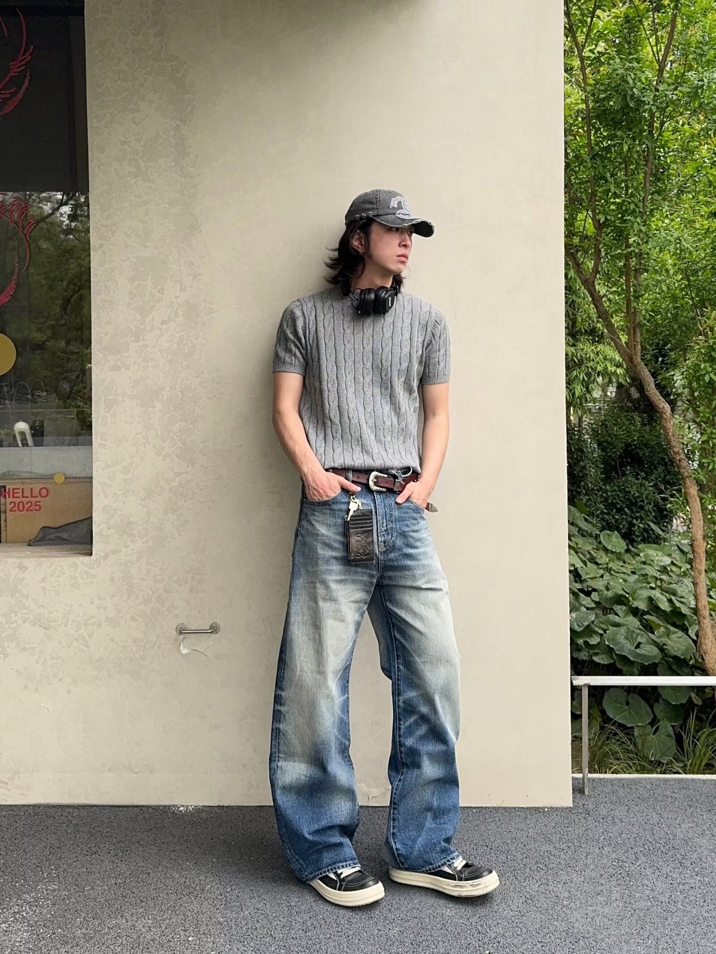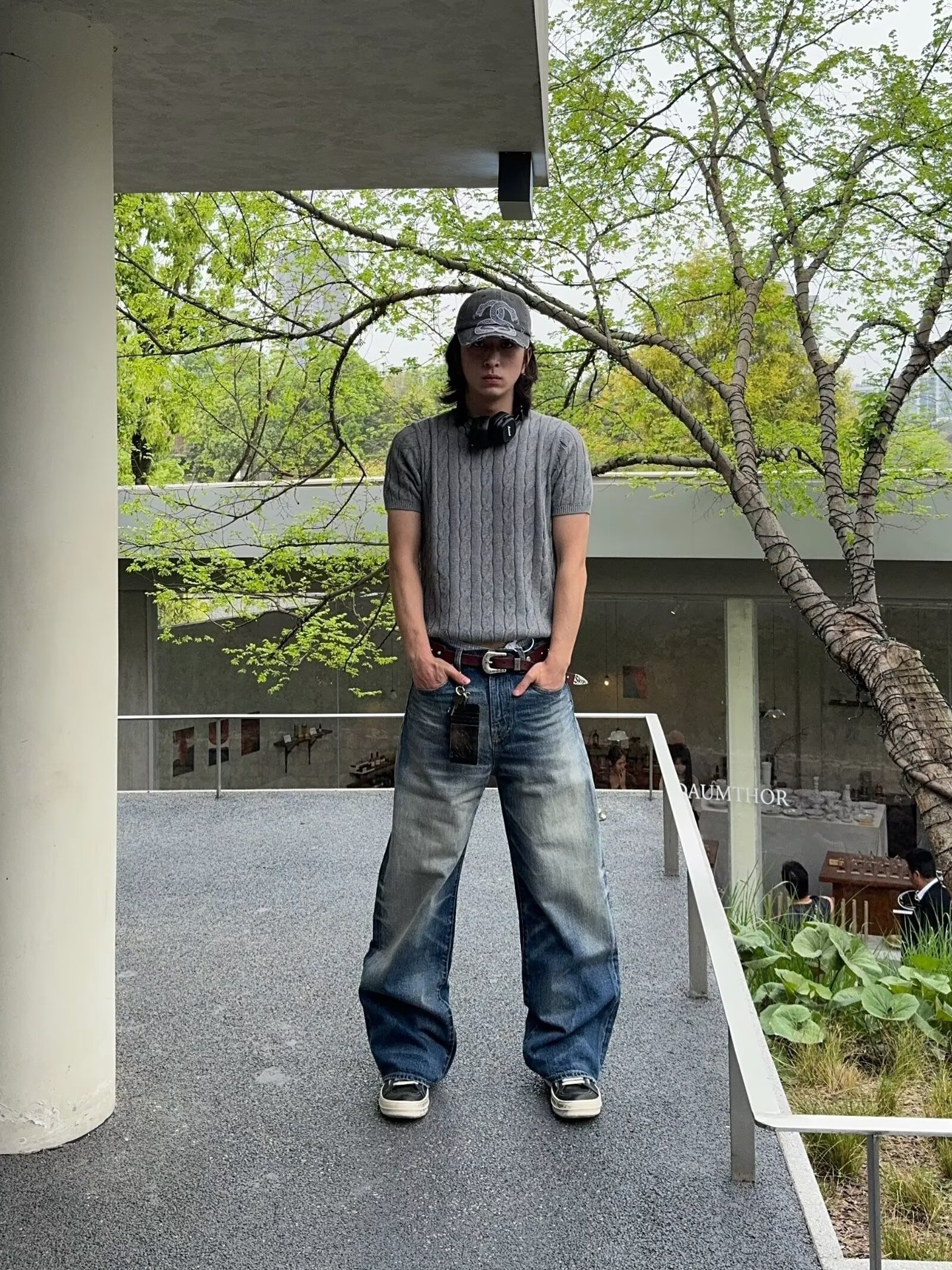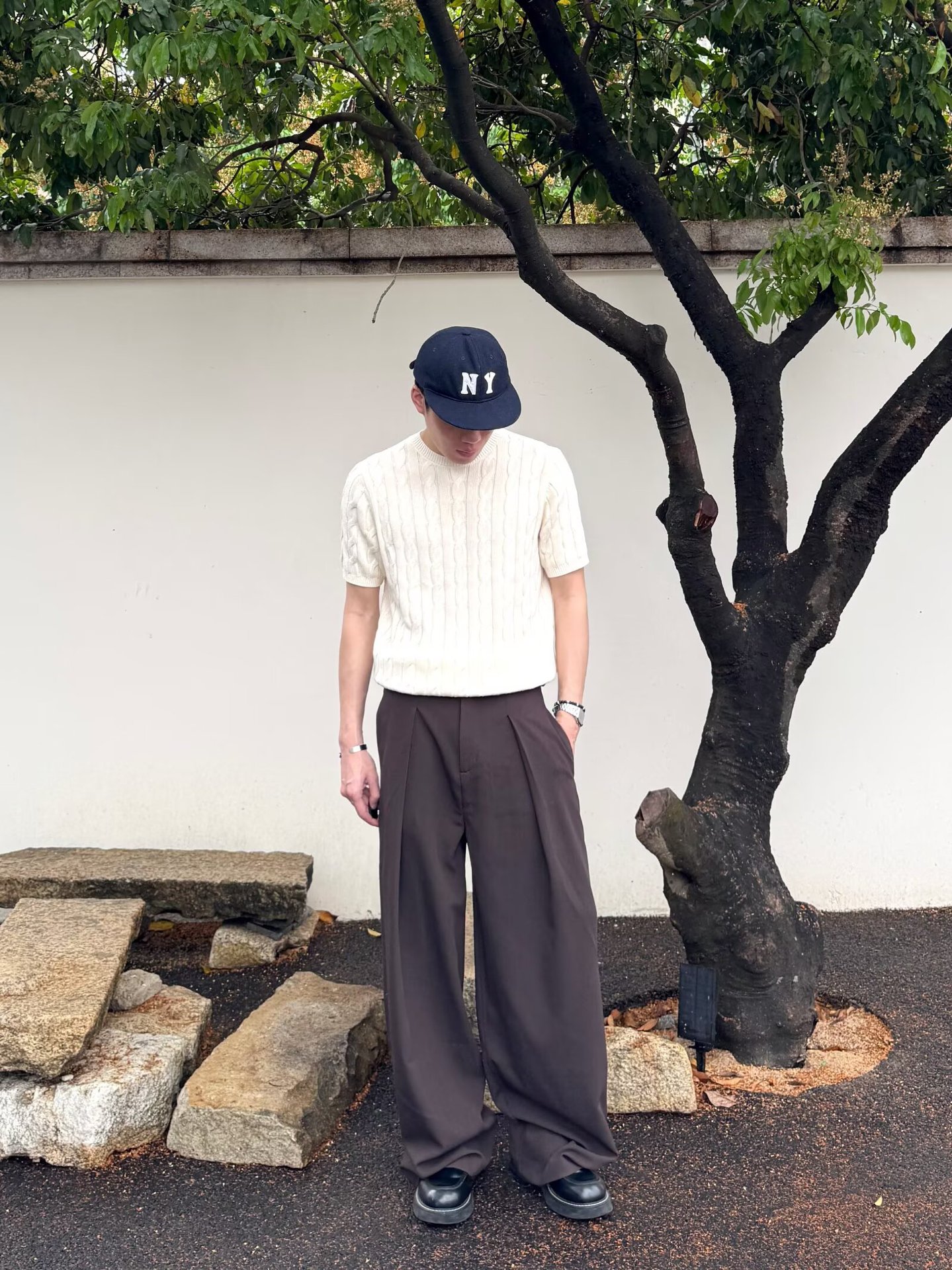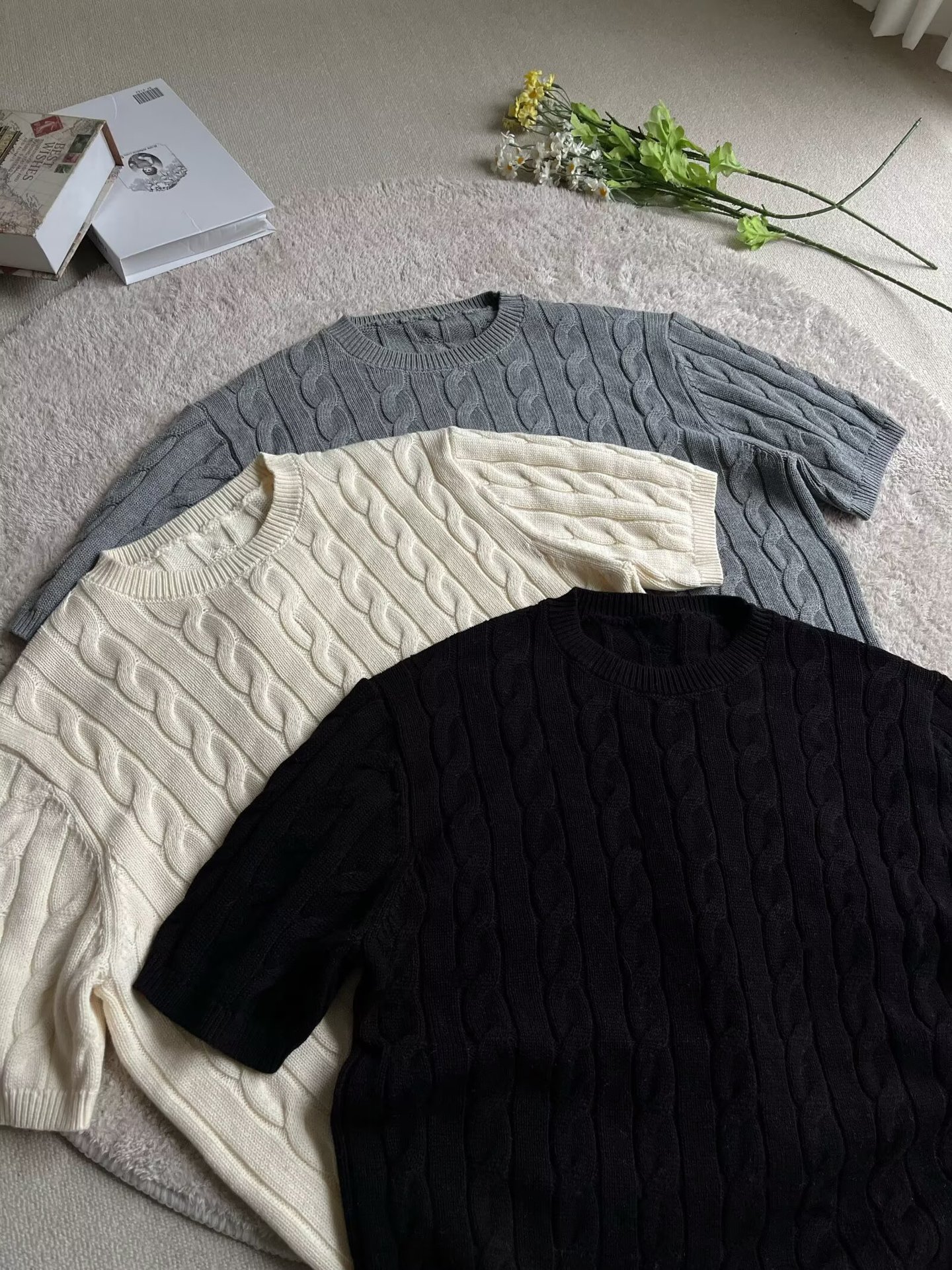 여름 남성용 고품질 트위스트 스트레치 니트 반팔 티셔츠 동대문 신작 가볍고 성숙한 게으른 스타일 반팔 탑