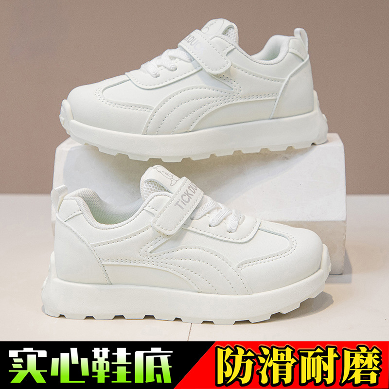 여자 로우 탑 운동화 2025 봄과 가을 새로운 어린이 패션 통기성 스포츠 신발 여자 부드러운 단독 미끄럼 방지 흰색 신발