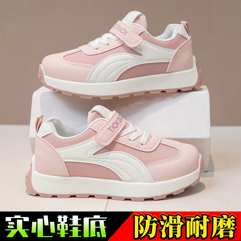 여자 로우 탑 운동화 2025 봄과 가을 새로운 어린이 패션 통기성 스포츠 신발 여자 부드러운 단독 미끄럼 방지 흰색 신발스토어 가기