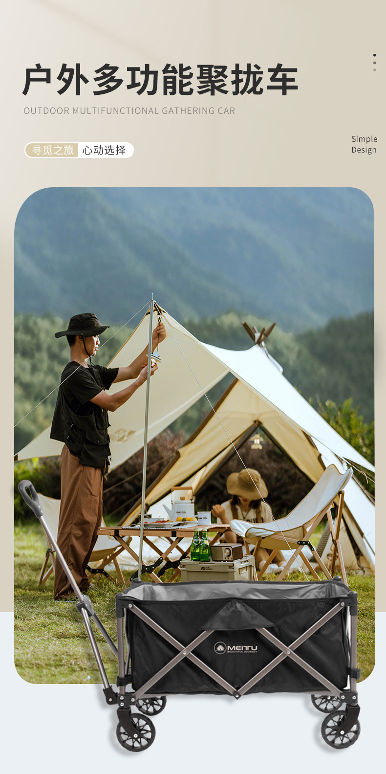 메이투(Meitu) 가정용 식료품 쇼핑 카트, 빠른 배송, 경량 푸시 카트, 야외 캠핑카, 캠핑카