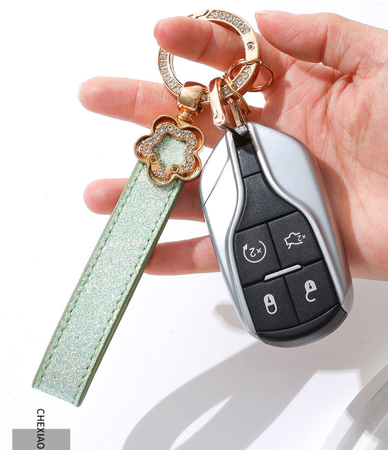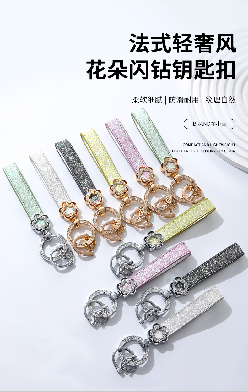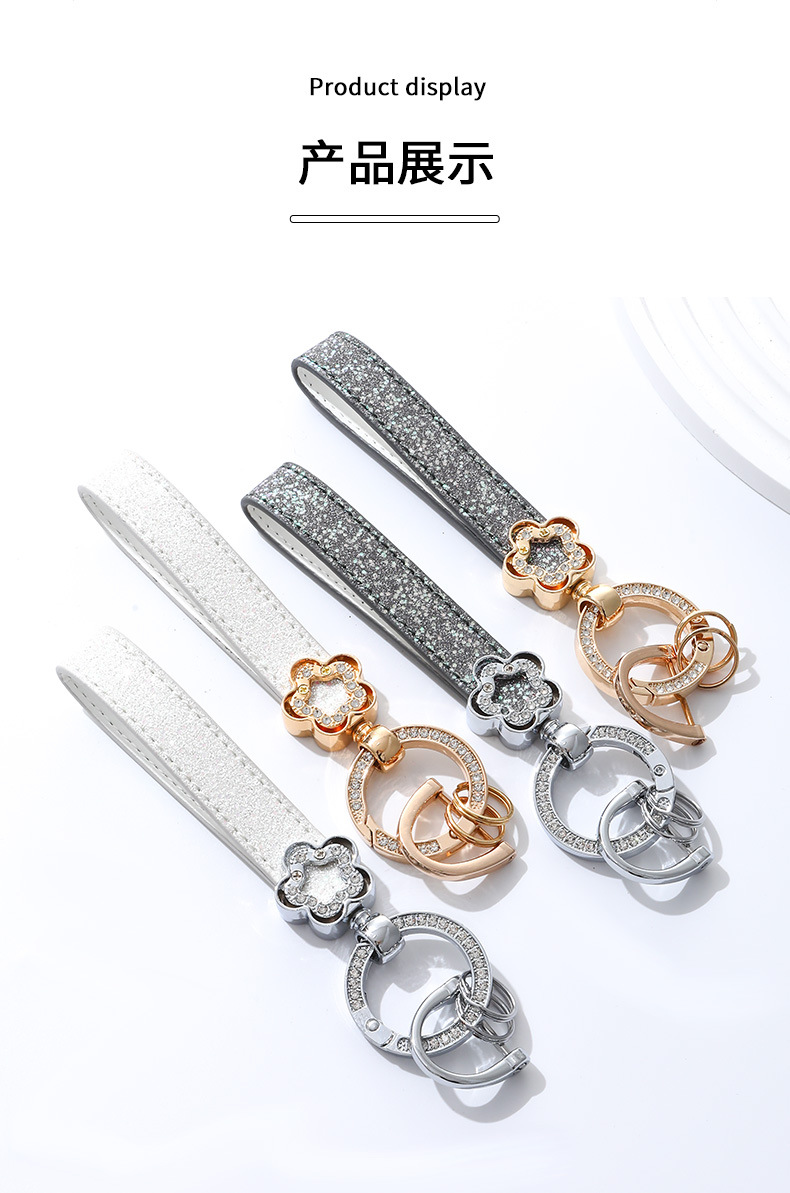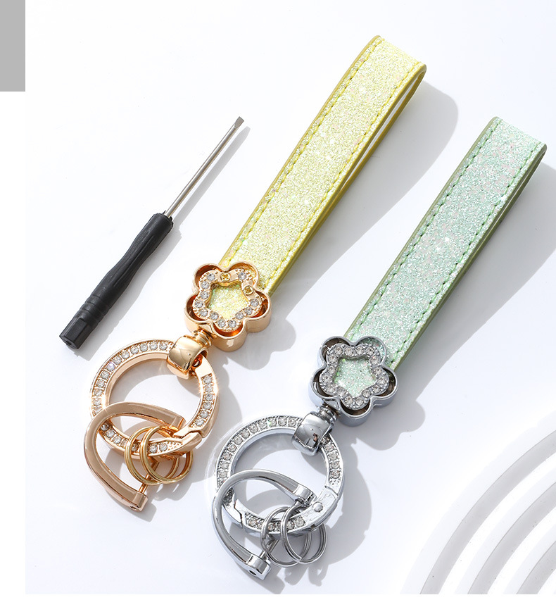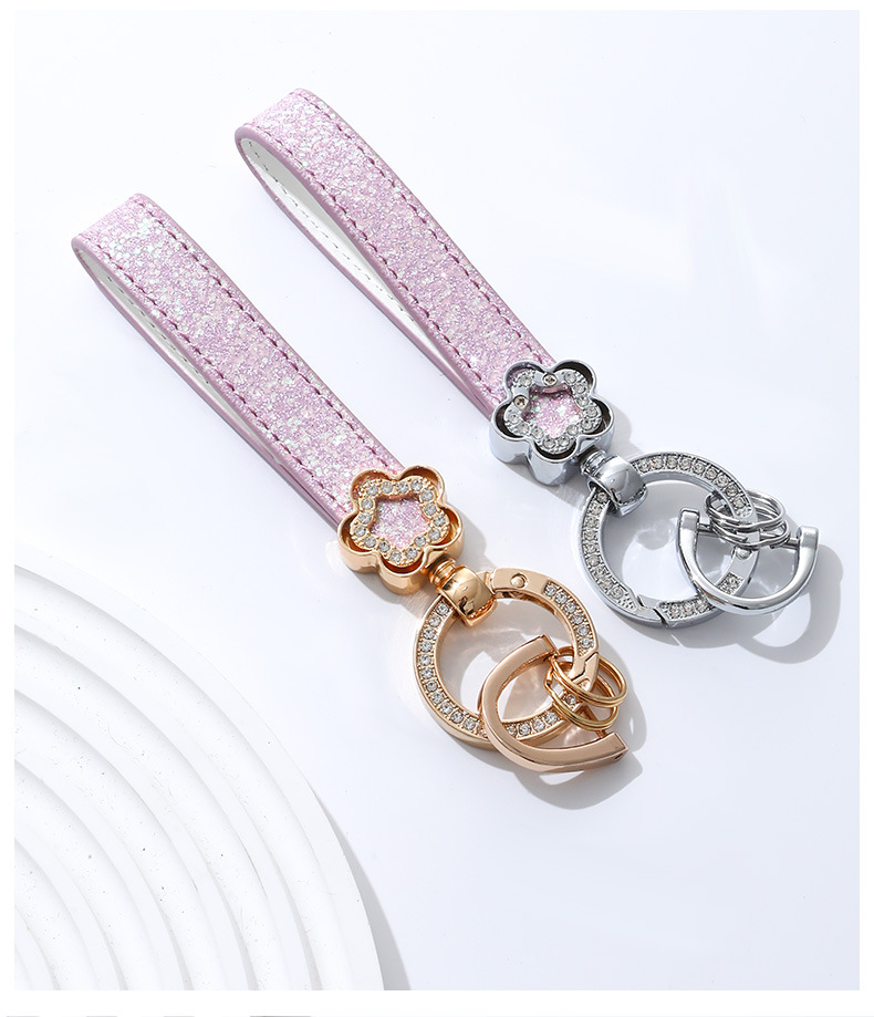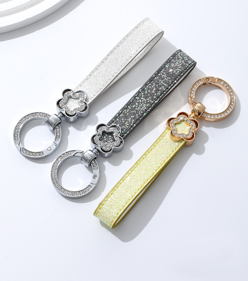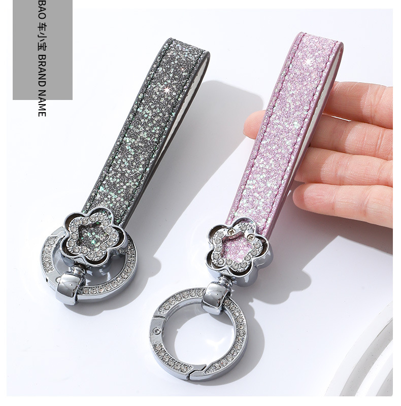 여성용 가방 액세서리를위한 가벼운 럭셔리 다이아몬드가 박힌 꽃 모양의 열쇠 고리 맞춤형 창의적 선물 자동차 열쇠 고리 금속 펜던트스토어 가기