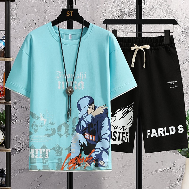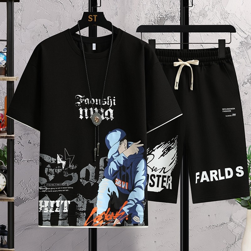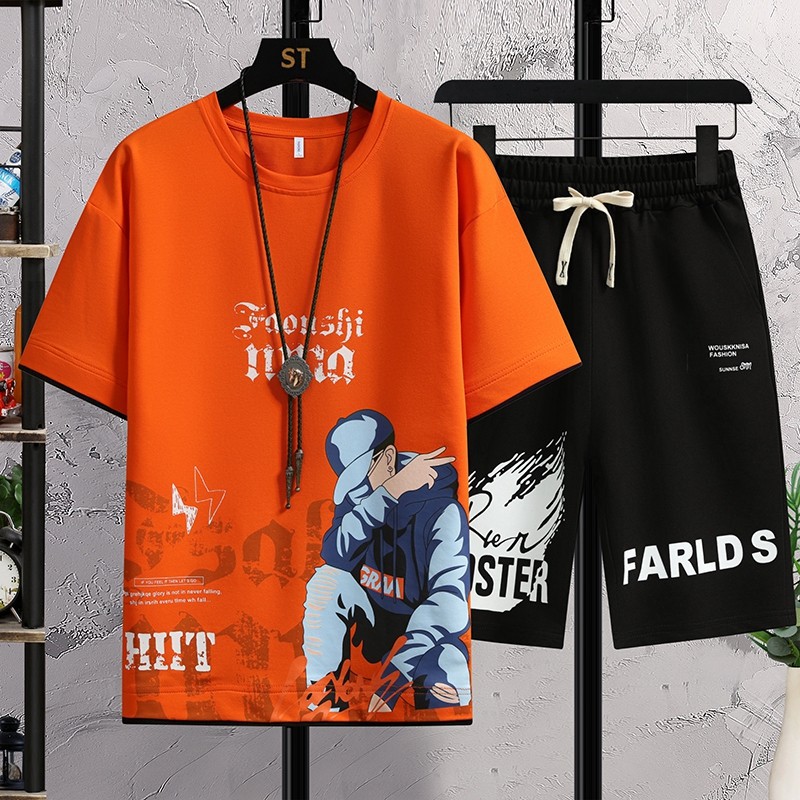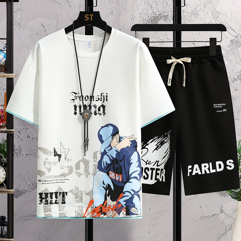 크로스보더 헌터 남자 반팔 티셔츠 청소년 남성 멋진 옷 트렌디 브랜드 중학생 여름 정장