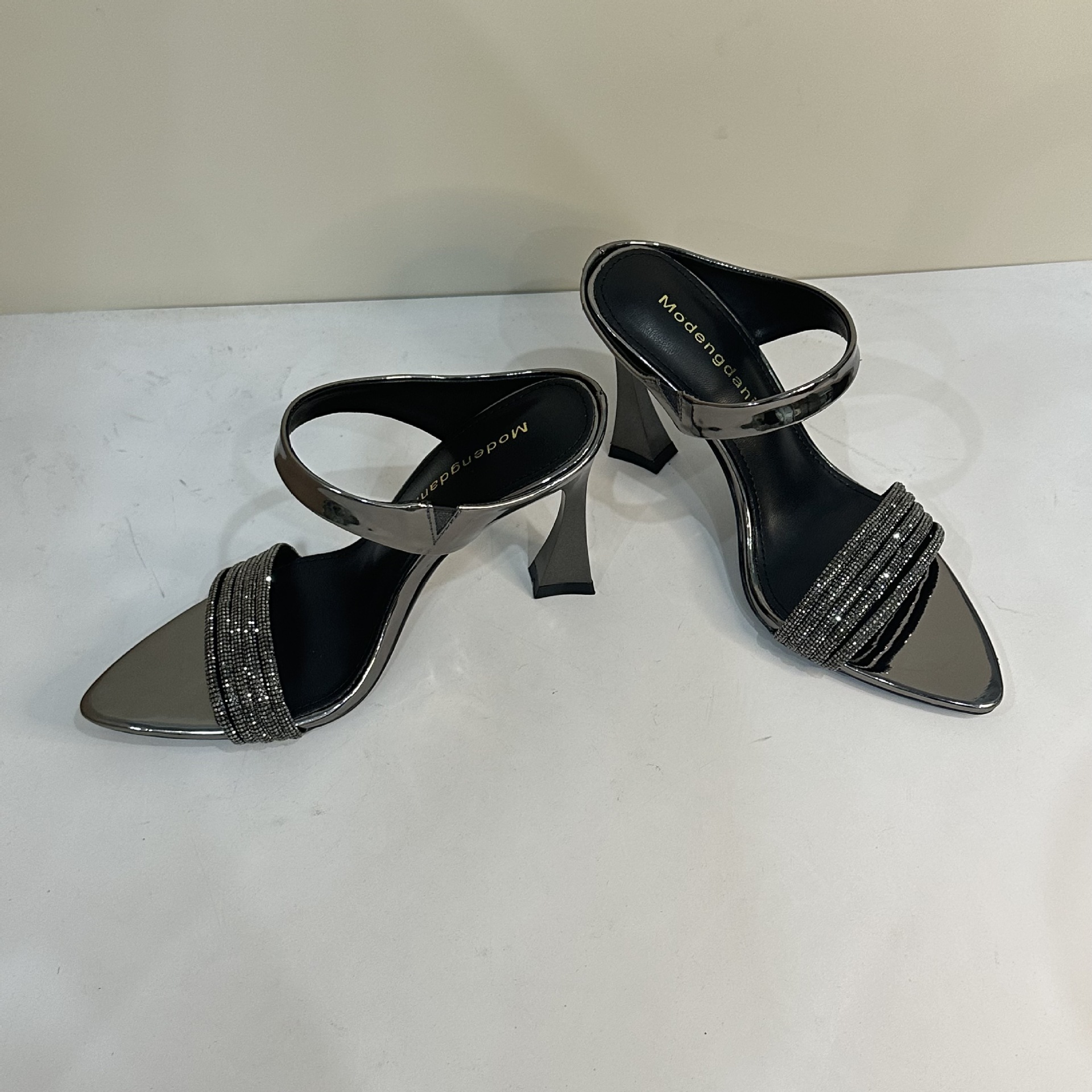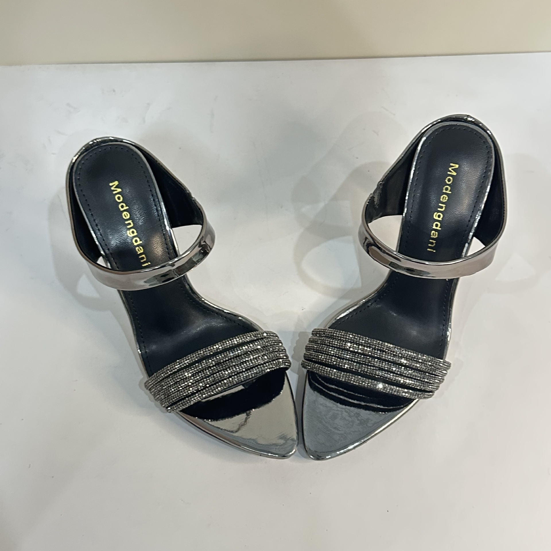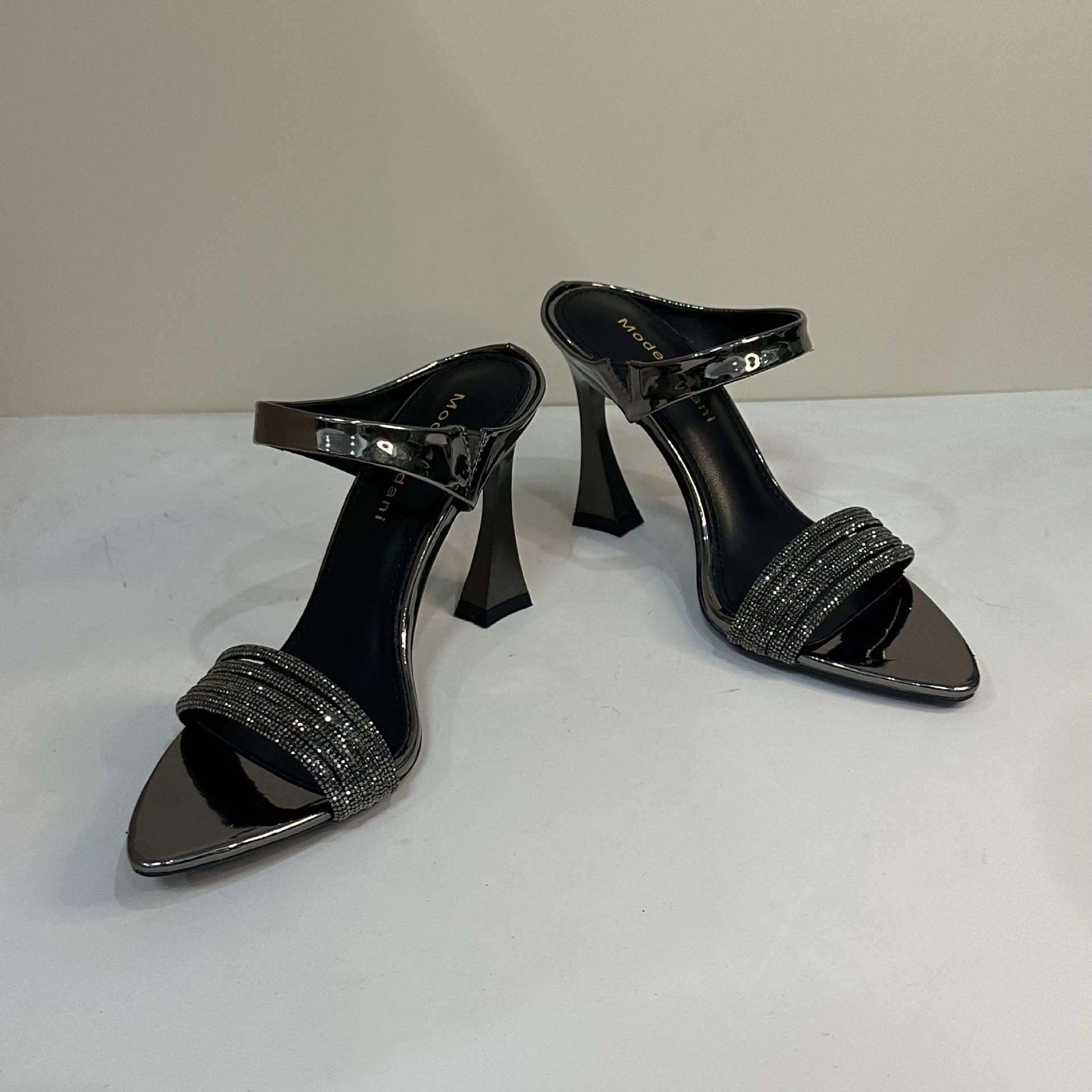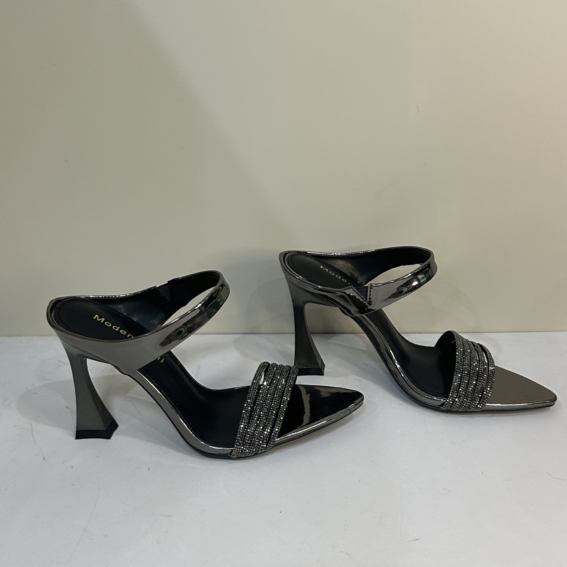 2025 새로운 스타일의 뾰족한 라인스톤 원 스트랩 샌들, 여성용 스틸레토 섹시 오픈 토 하이힐, 여성용 건메탈 샌들스토어 가기