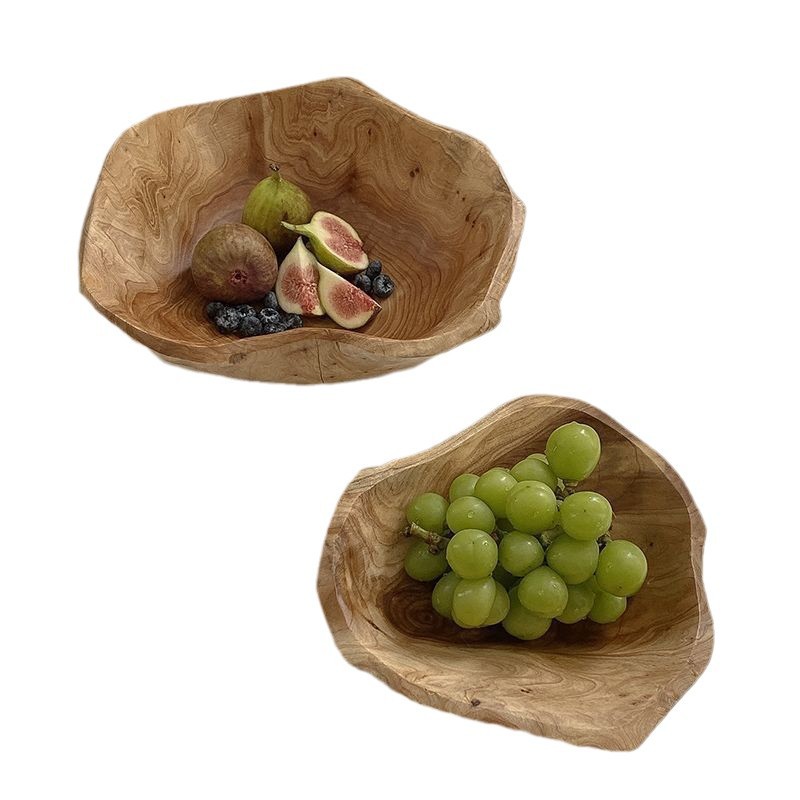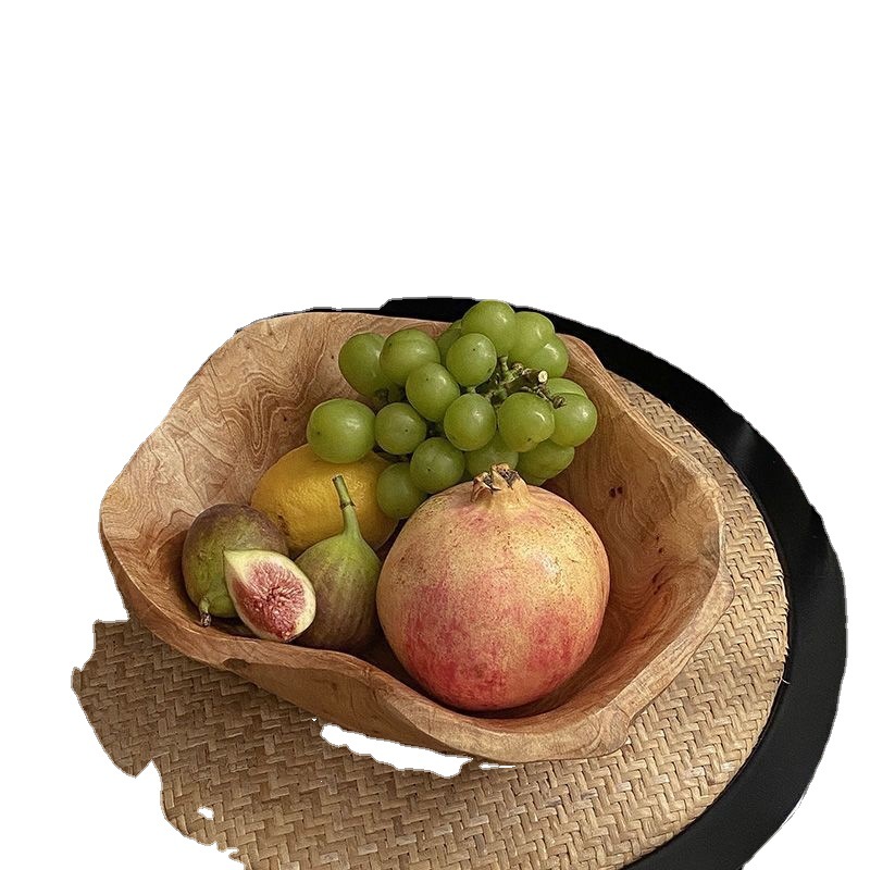 스낵 트레이 대용량 나무 과일 그릇 단단한 나무 과일 그릇 불규칙한 복고풍 거실 커피 테이블 과일 트레이 도매스토어 가기