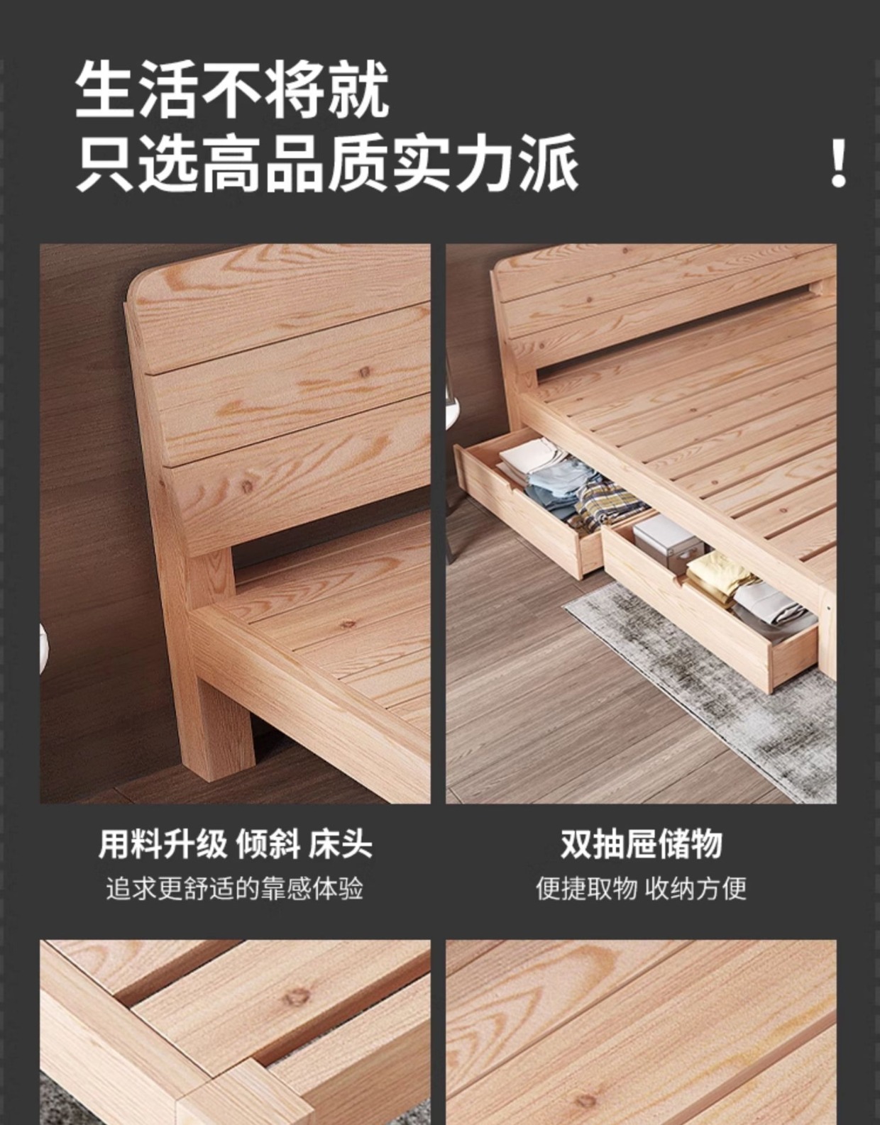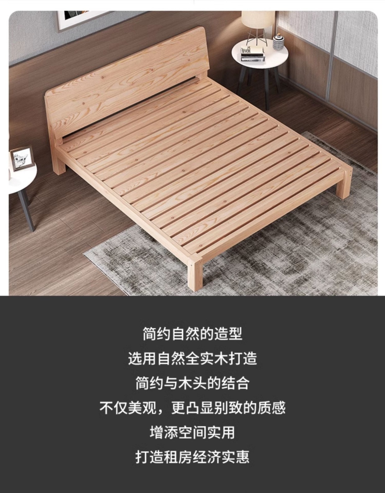 모던 심플 원목 침대 1.8m 더블 침대 임대실 1.5m 싱글 통나무 침대 1.2 다다미 침대 프레임스토어 가기