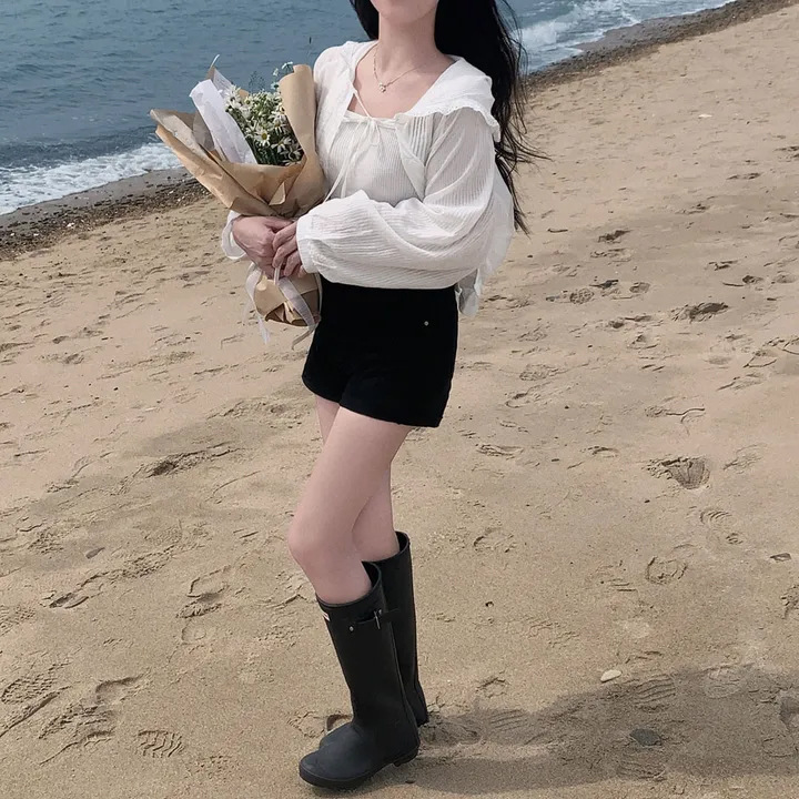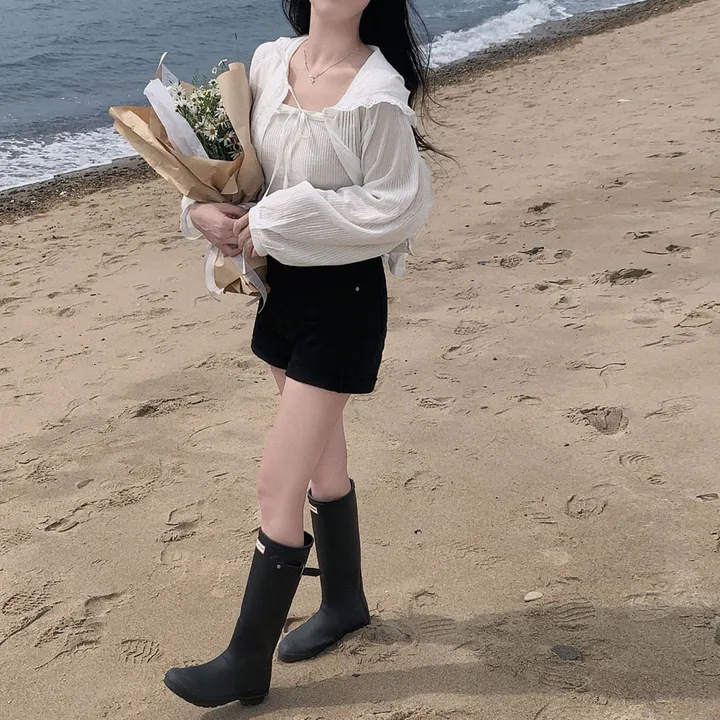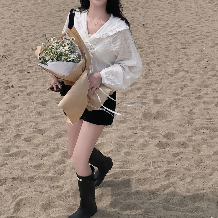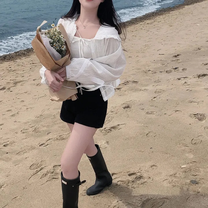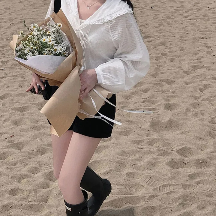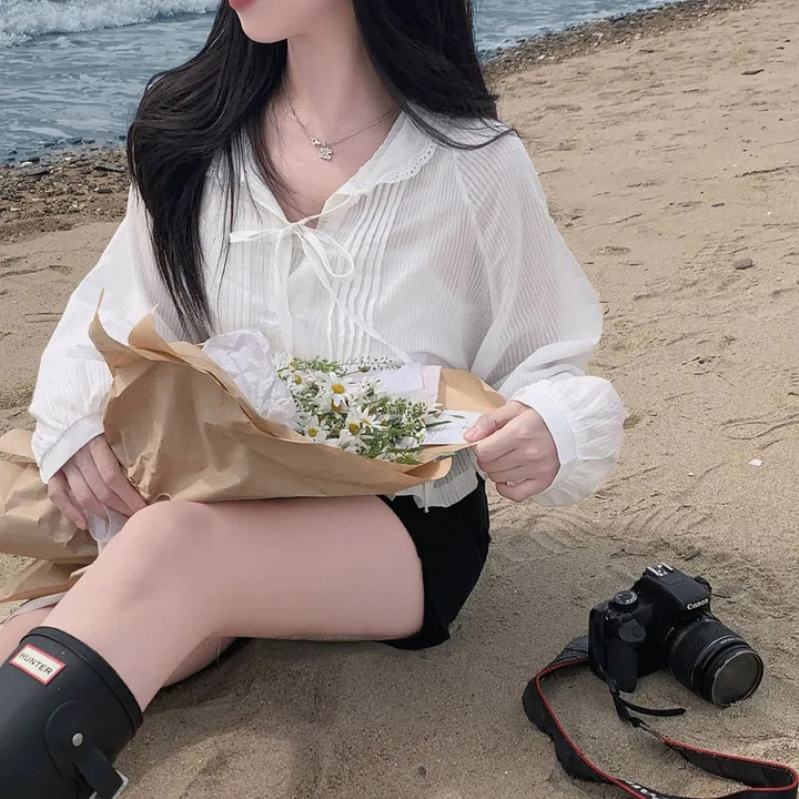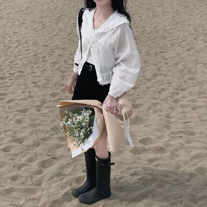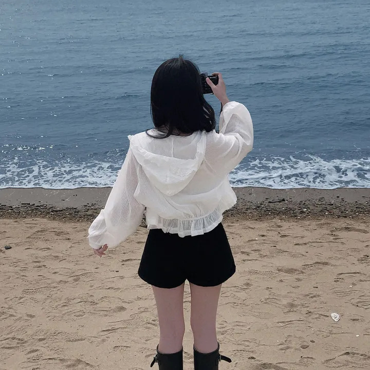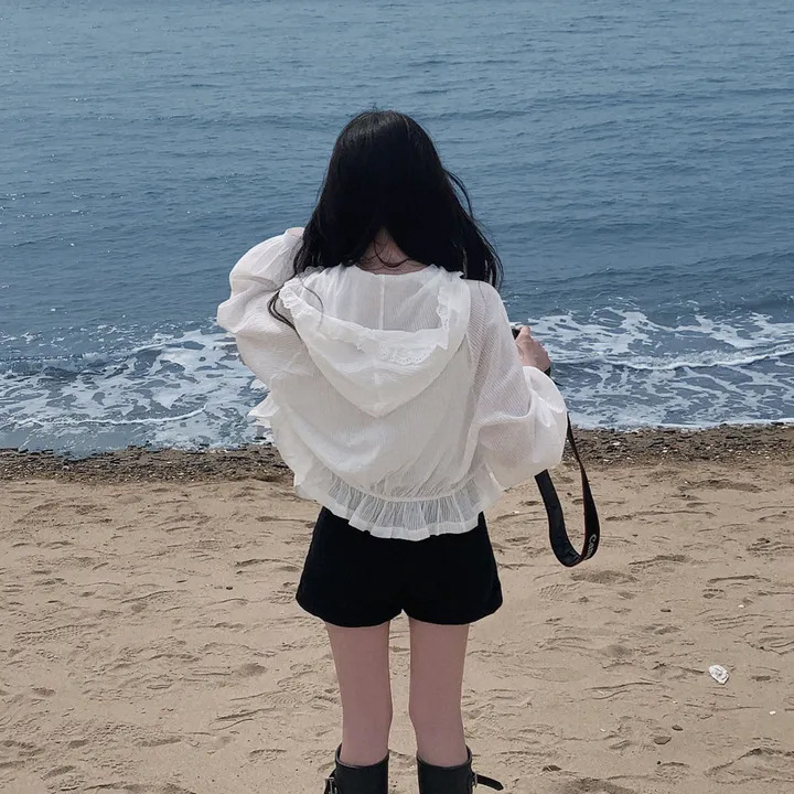 한국 세련된 여름 프랑스 틈새 달콤한 레이스 스플 라이스 후드 프릴 허리 자외선 차단 셔츠 자켓 여성용스토어 가기