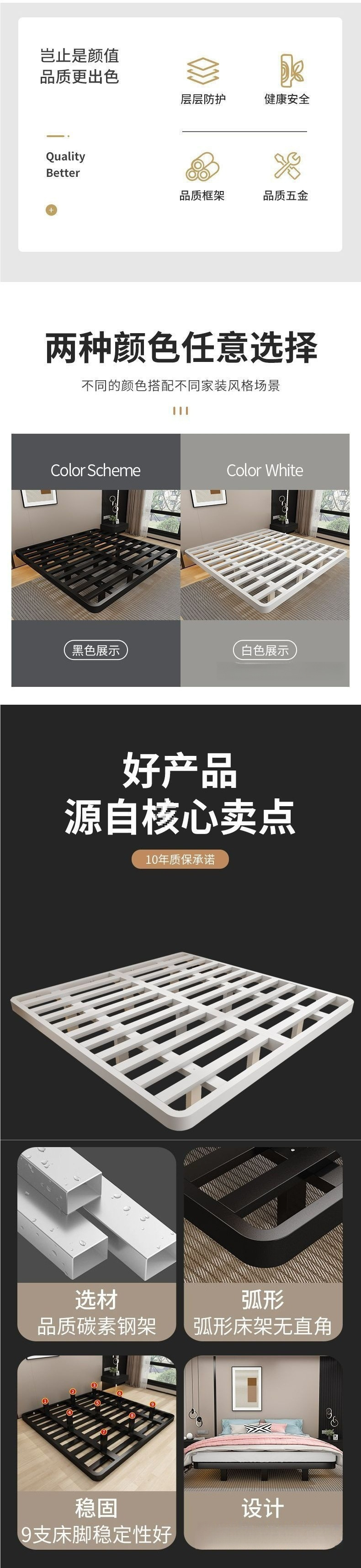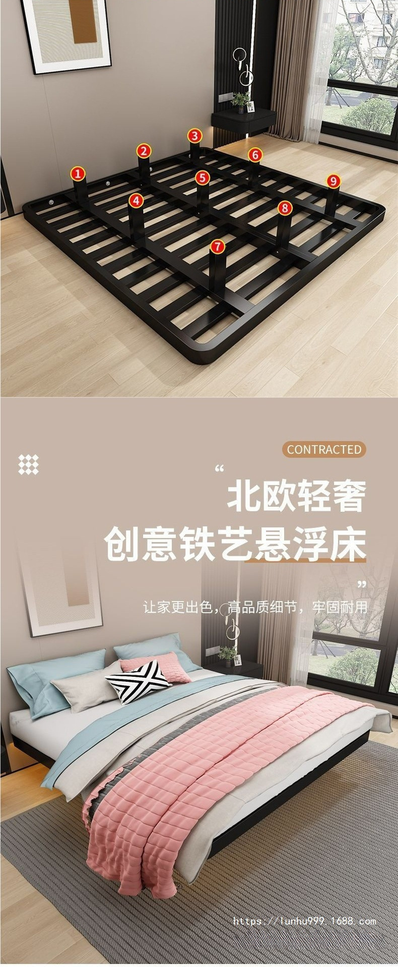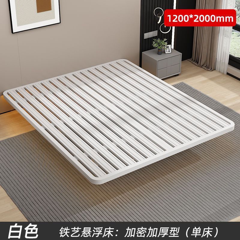 공중부양 침대 프레임, 전체 철제, 간단한 마스터 침실, 침대 옆이 없는 철제 침대 프레임, 더블 침대, 성인 아파트 임대 주택 철제 프레임 침대스토어 가기