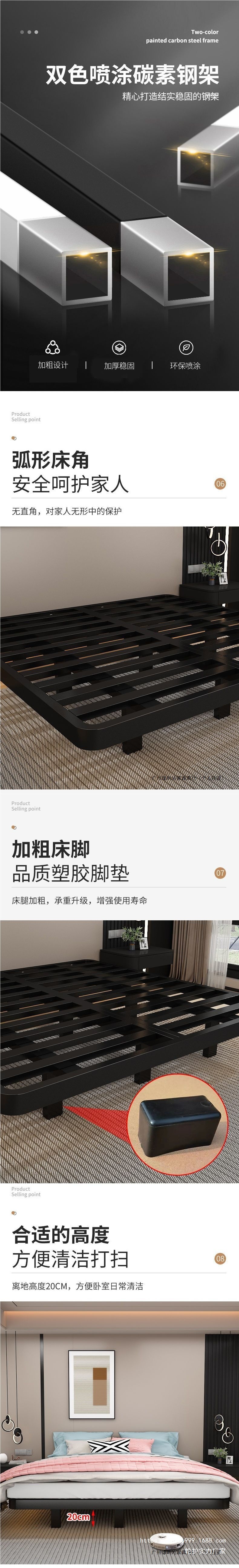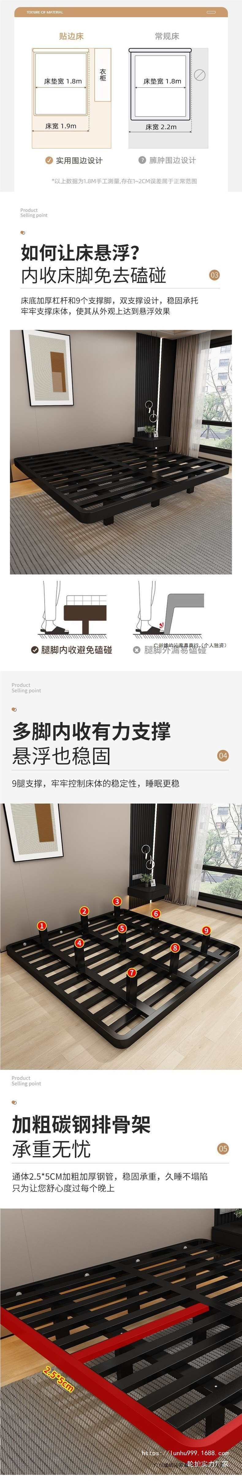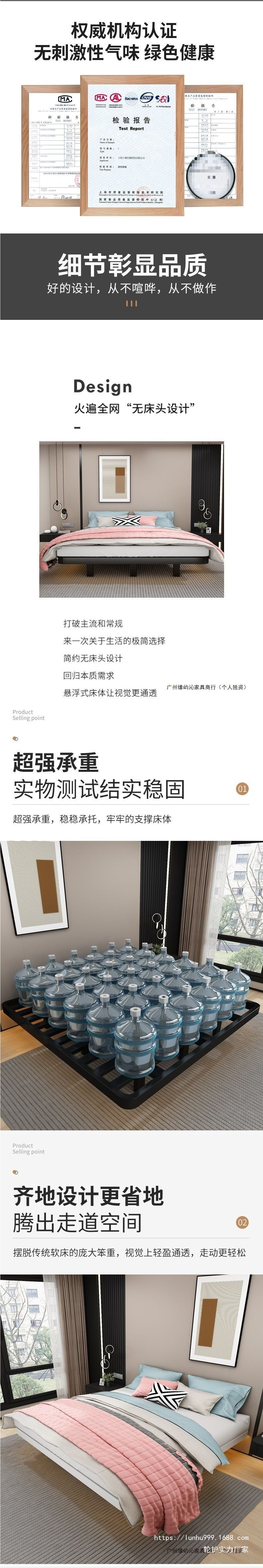 공중부양 침대 프레임, 전체 철제, 간단한 마스터 침실, 침대 옆이 없는 철제 침대 프레임, 더블 침대, 성인 아파트 임대 주택 철제 프레임 침대스토어 가기