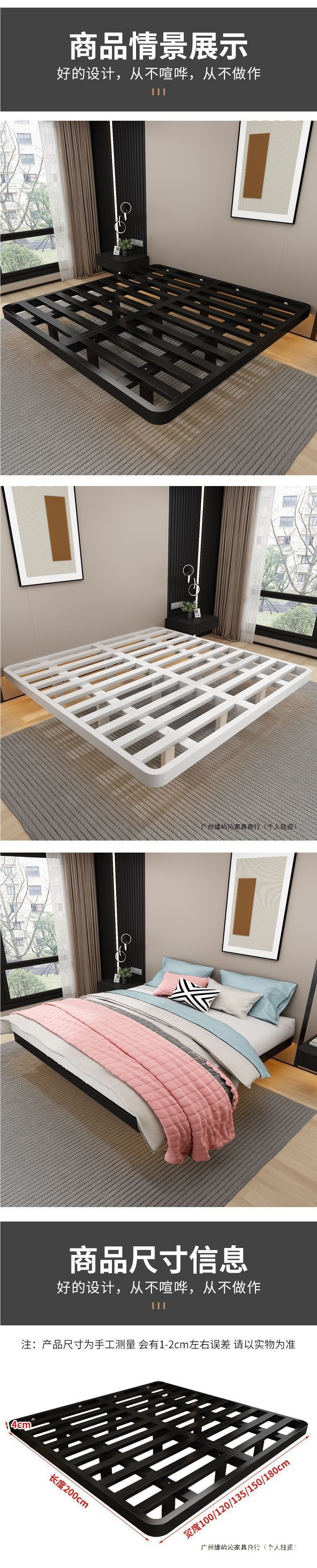 공중부양 침대 프레임, 전체 철제, 간단한 마스터 침실, 침대 옆이 없는 철제 침대 프레임, 더블 침대, 성인 아파트 임대 주택 철제 프레임 침대