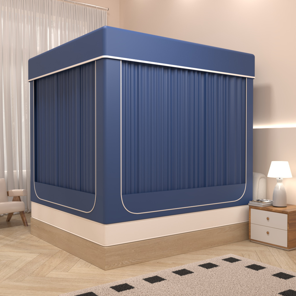 • 네이비블루[침대커튼+모기장+두꺼운 브래킷