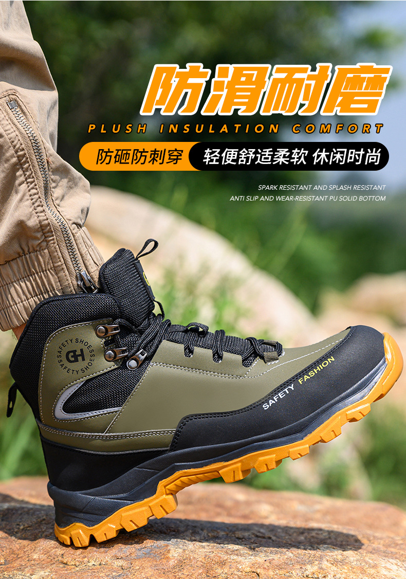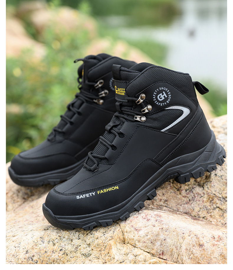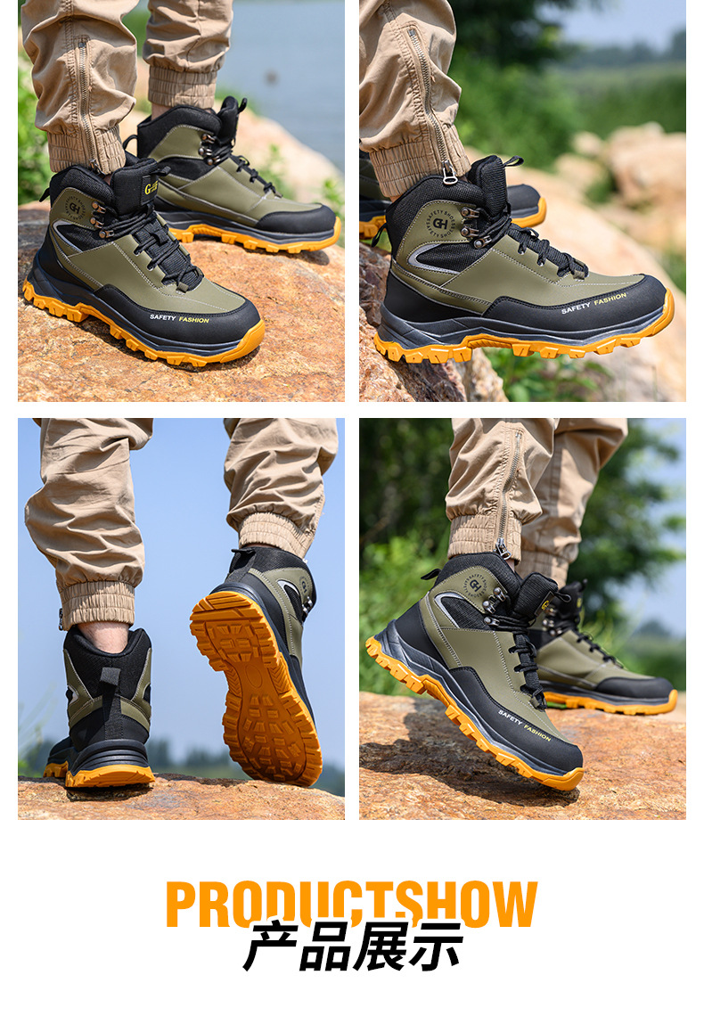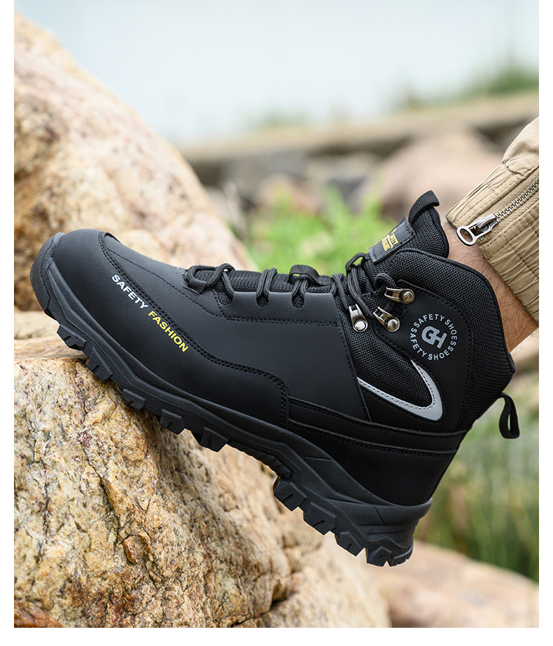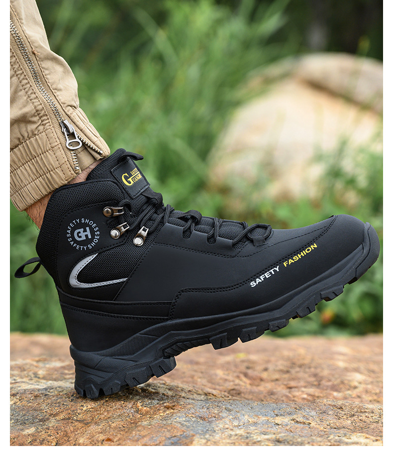 남성용 국경 간 노동 보호 신발, 탈취제, 통기성, 충격 방지 및 찌르기 방지 노동 보호 신발, 세련된 하이탑 미끄럼 방지 및 방수 안전 신발