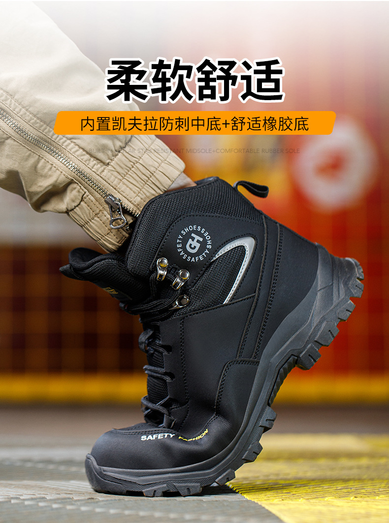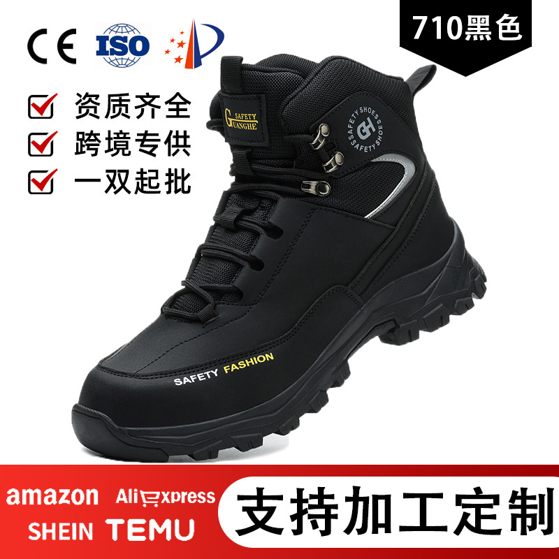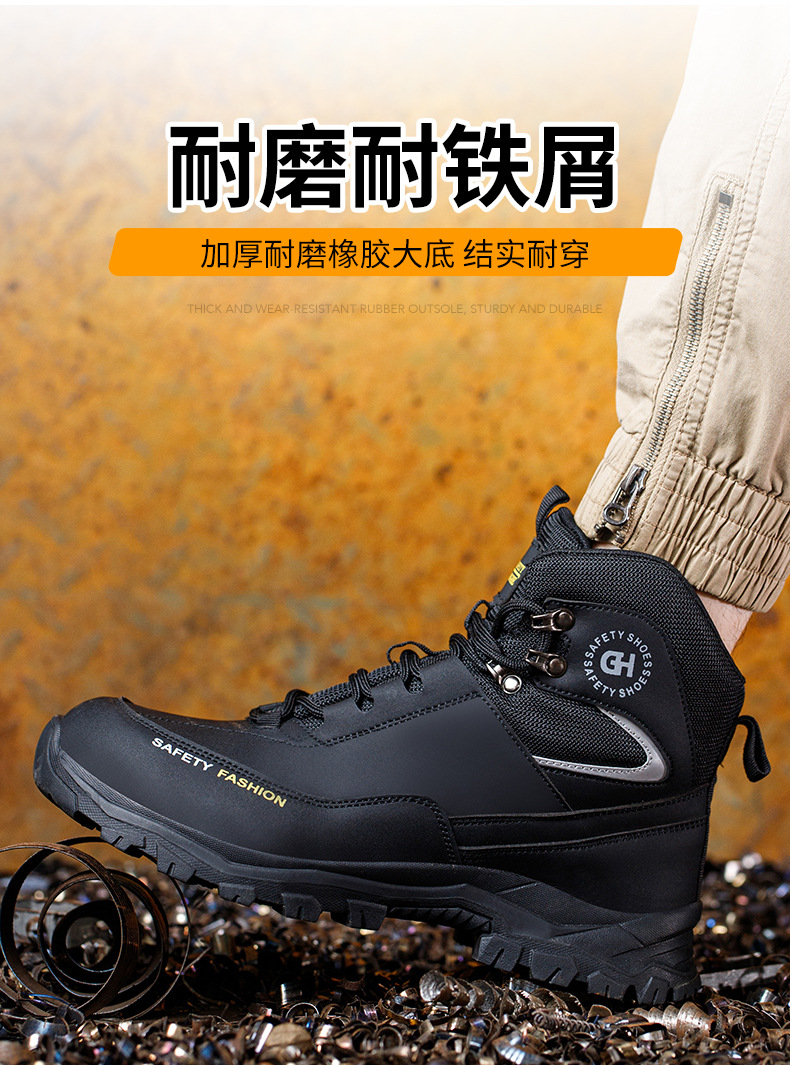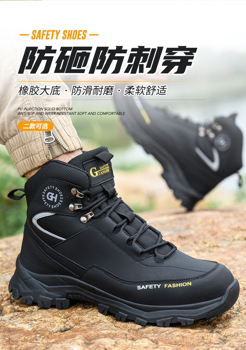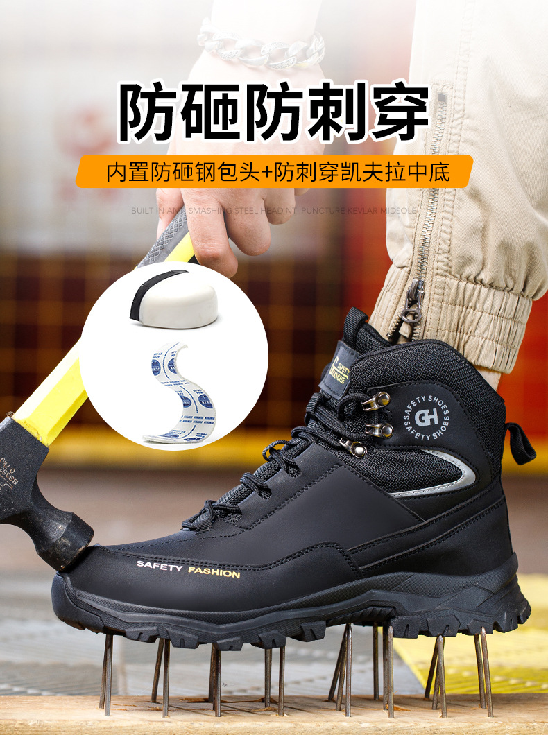남성용 국경 간 노동 보호 신발, 탈취제, 통기성, 충격 방지 및 찌르기 방지 노동 보호 신발, 세련된 하이탑 미끄럼 방지 및 방수 안전 신발스토어 가기