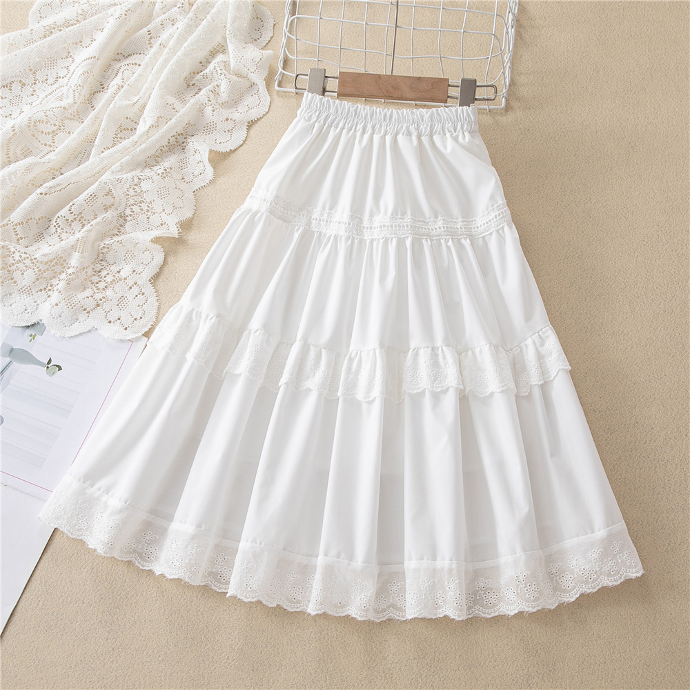 여아 스커트 2026 봄 신상 중대형 아동용 여름 흰색 예쁜 레이스 주름 케이크 스커트 아동용 스커트