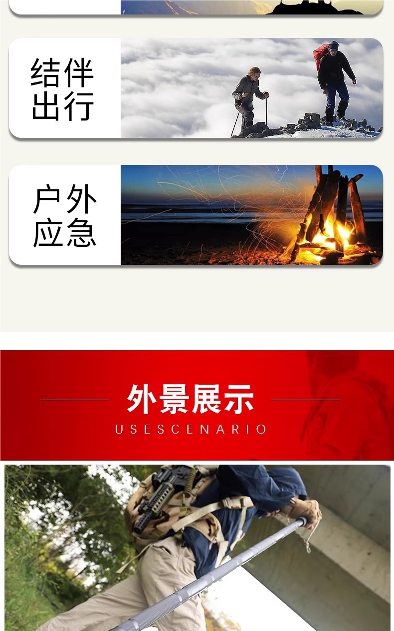 • 다기능 알루미늄 합금 전술 트레킹 폴 [7 섹션]
