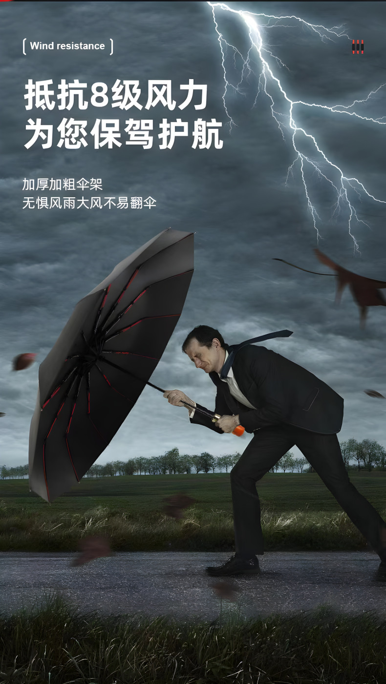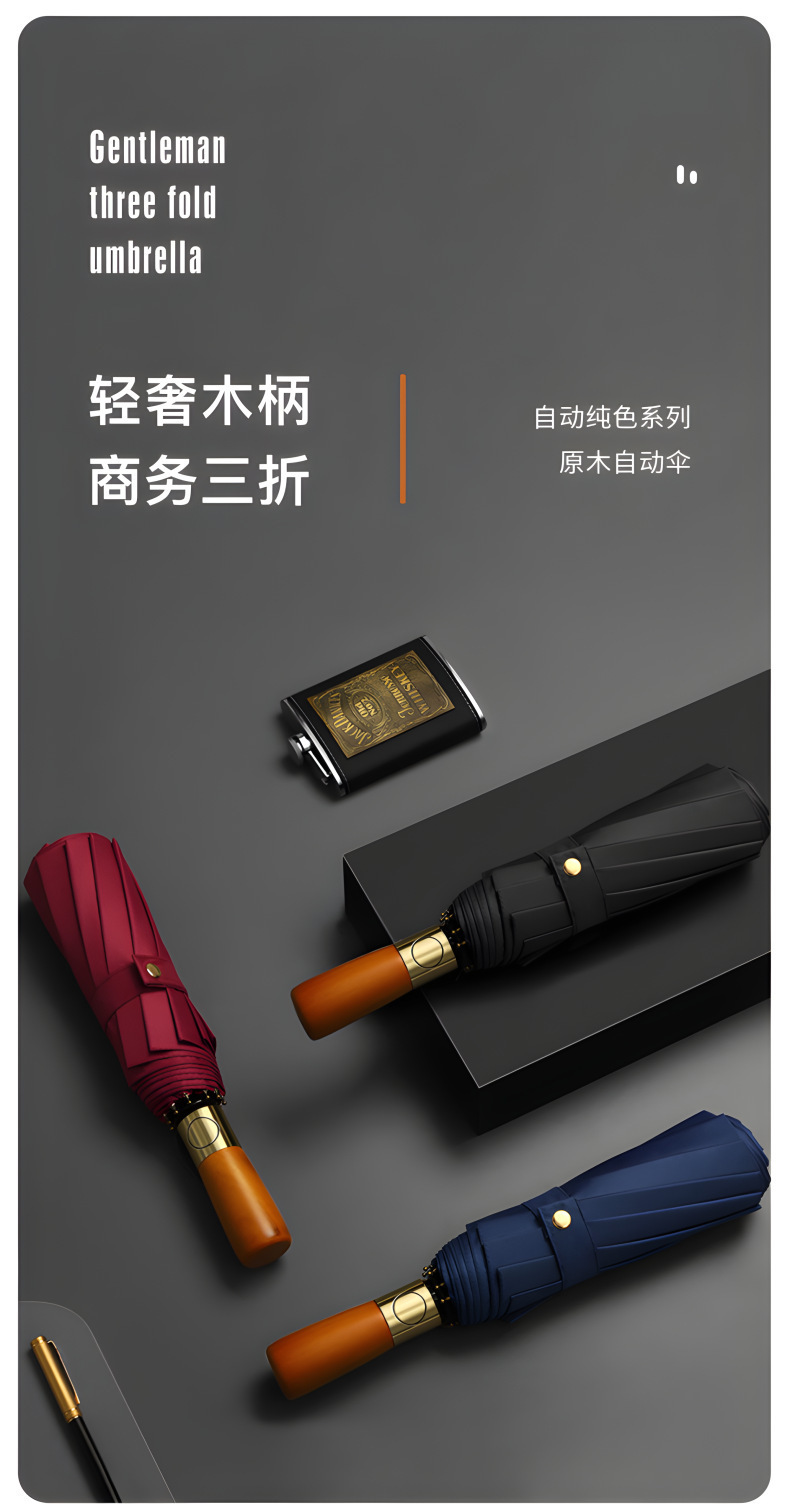 12본 전자동 복고풍 원목 손잡이 우산, 비닐 자외선 차단 양산, 비 또는 빛 접이식 우산스토어 가기