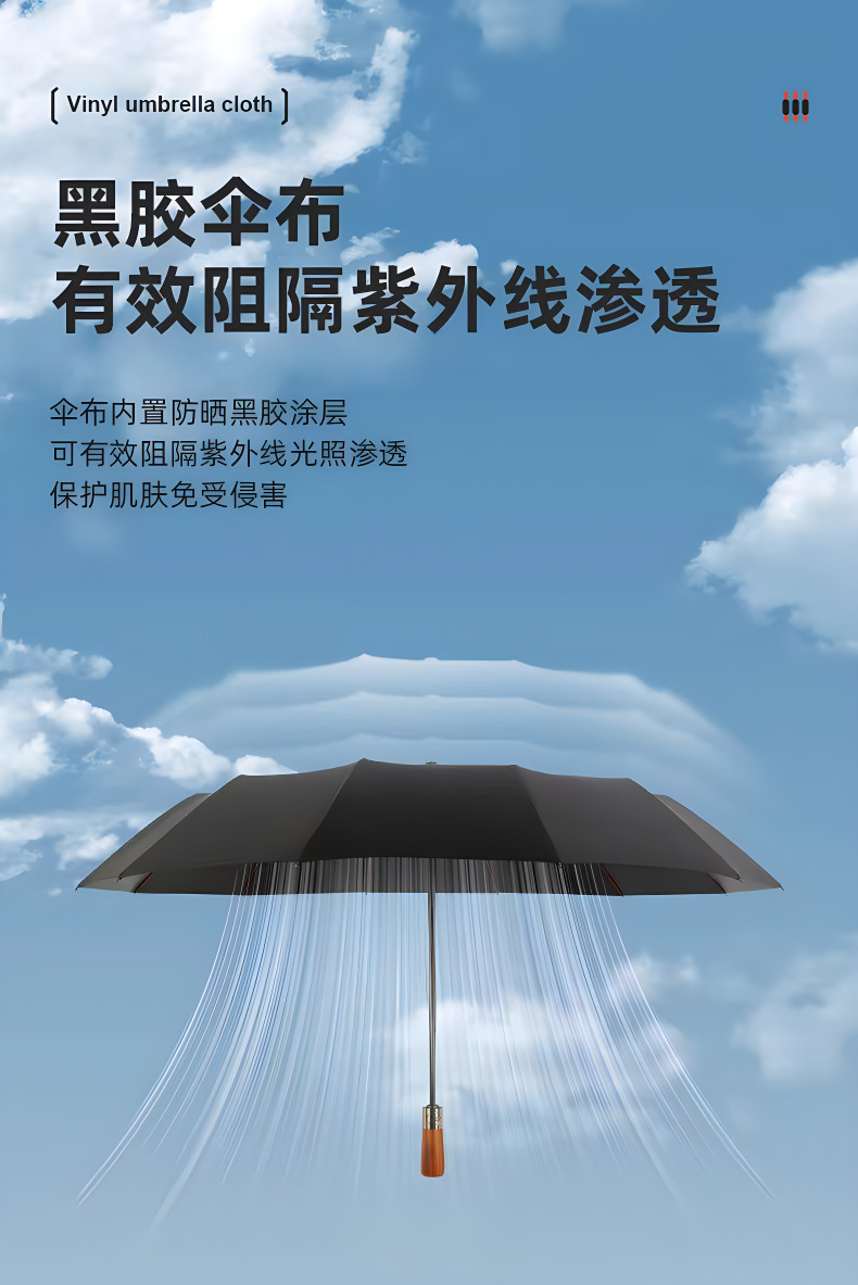 12본 전자동 복고풍 원목 손잡이 우산, 비닐 자외선 차단 양산, 비 또는 빛 접이식 우산