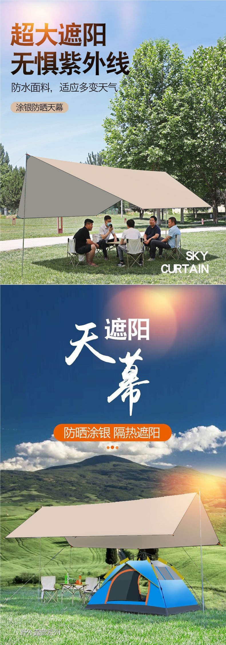 야외 캐노피 텐트 두꺼운 천막 방수 태양 보호 UV 보호 휴대용 캠핑 나비 캐노피스토어 가기