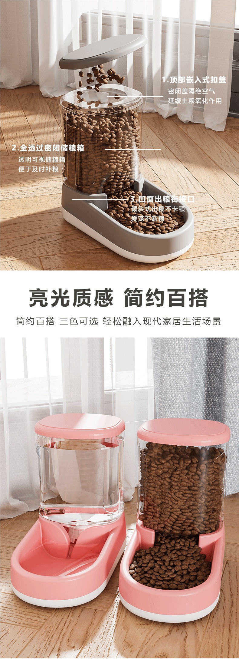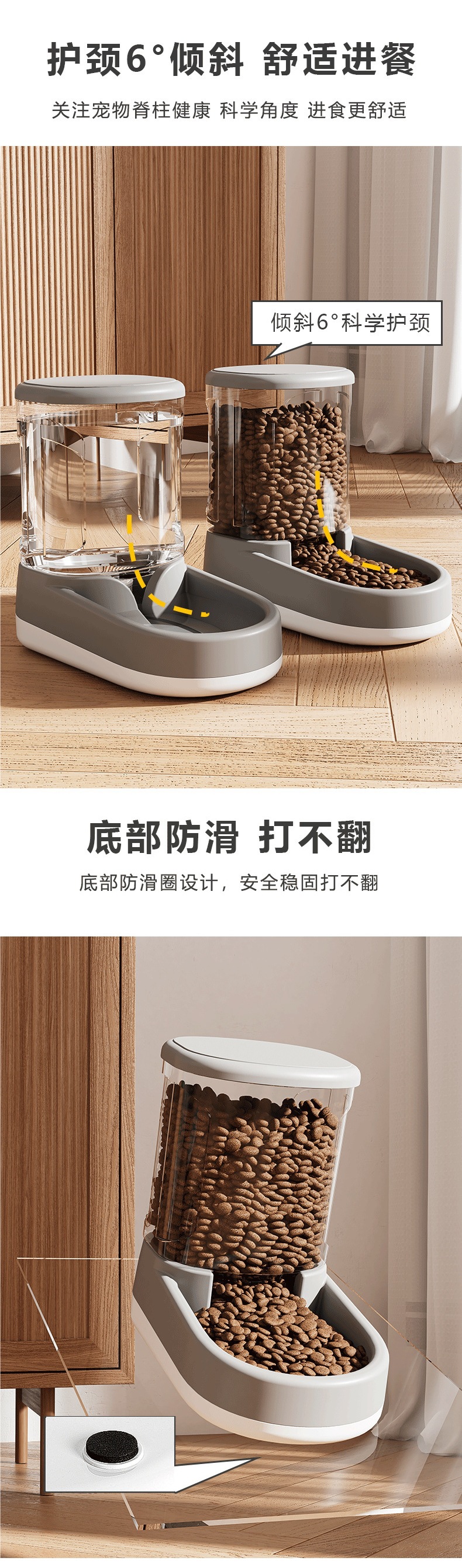• 우아한 회색 식수대 + 피더 세트