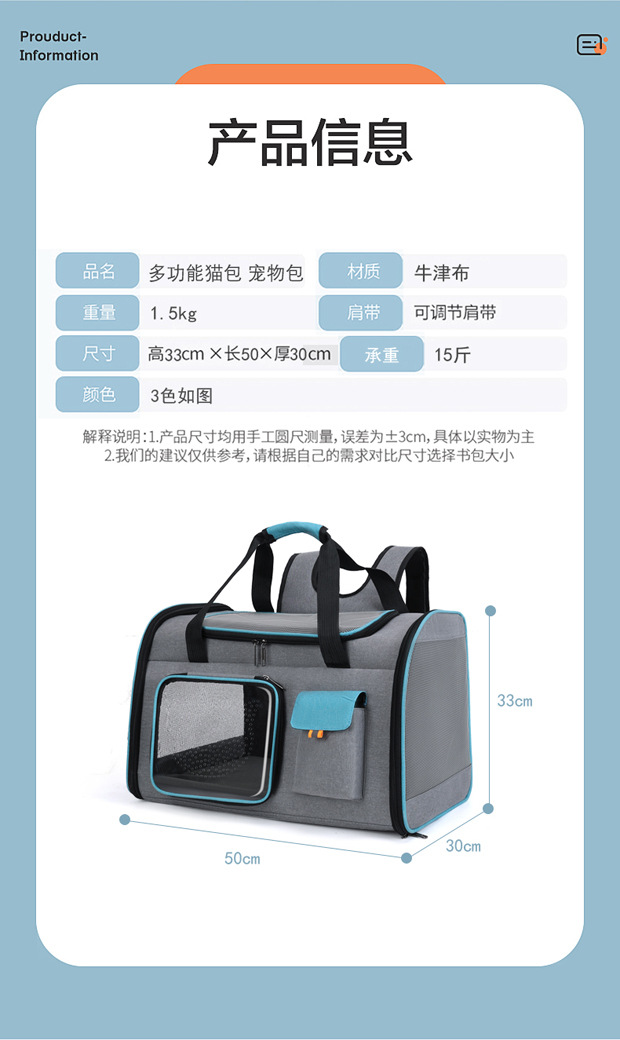고양이 가방, 애완 동물 가방, 휴대용 핸드백, 대형 공간 통기성 애완 동물 배낭, 고양이 및 개 애완 동물 가방스토어 가기