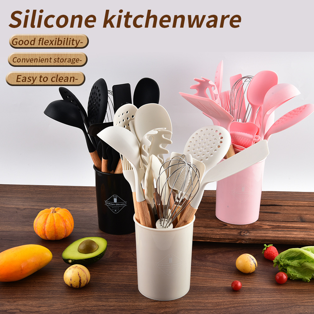 국경을 넘나드는 인기 마카롱 컬러 실리콘 13피스 세트, 고급스럽고 다양한 스타일의 주방 조리 도구 제조업체 도매