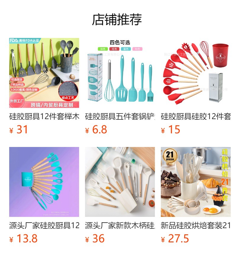 국경을 넘나드는 인기 마카롱 컬러 실리콘 13피스 세트, 고급스럽고 다양한 스타일의 주방 조리 도구 제조업체 도매스토어 가기