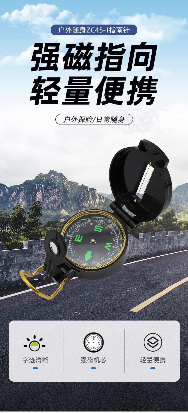 제조업체는 ZC45-1 미국식 다기능 플라스틱 야외 모험 여행 캠핑을 제공합니다. 야간 조명 플립 커버 나침반스토어 가기