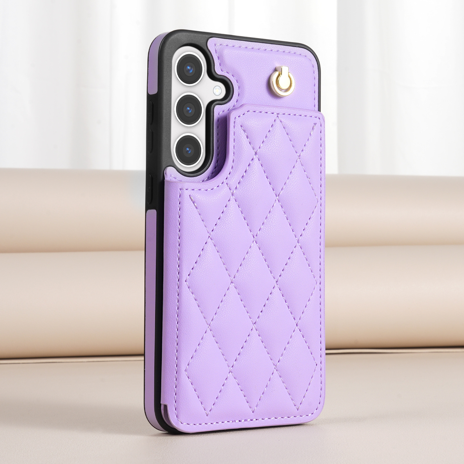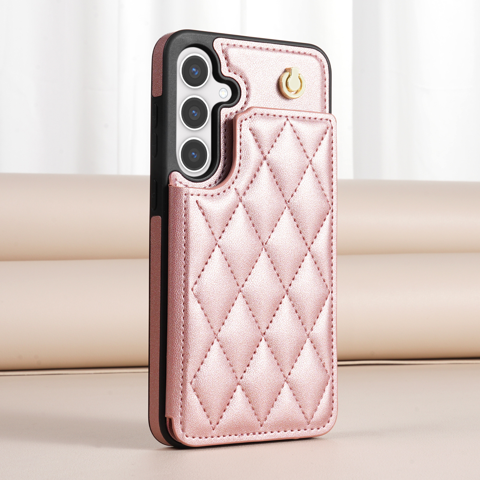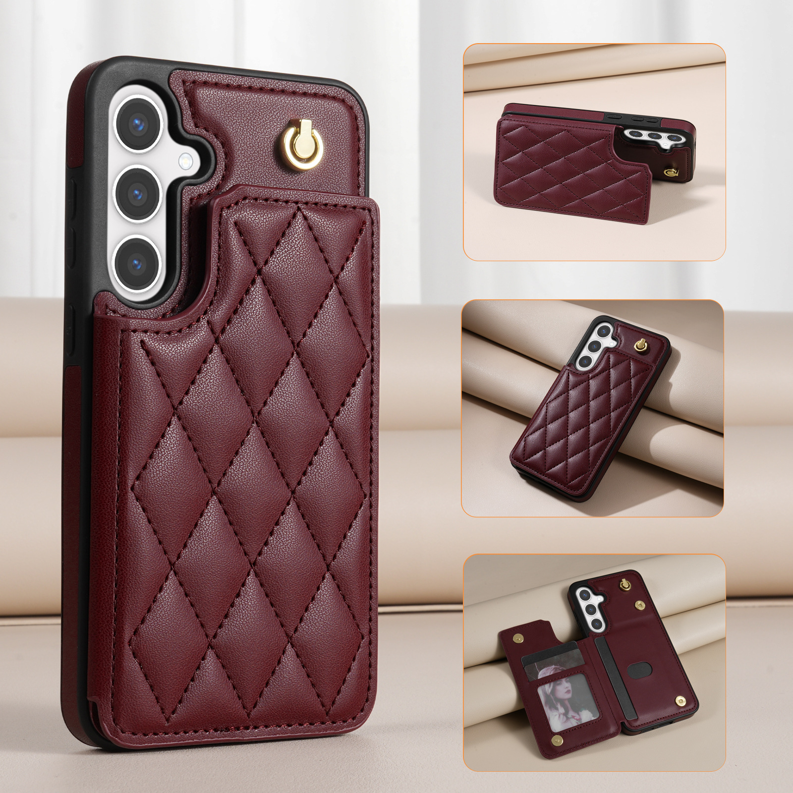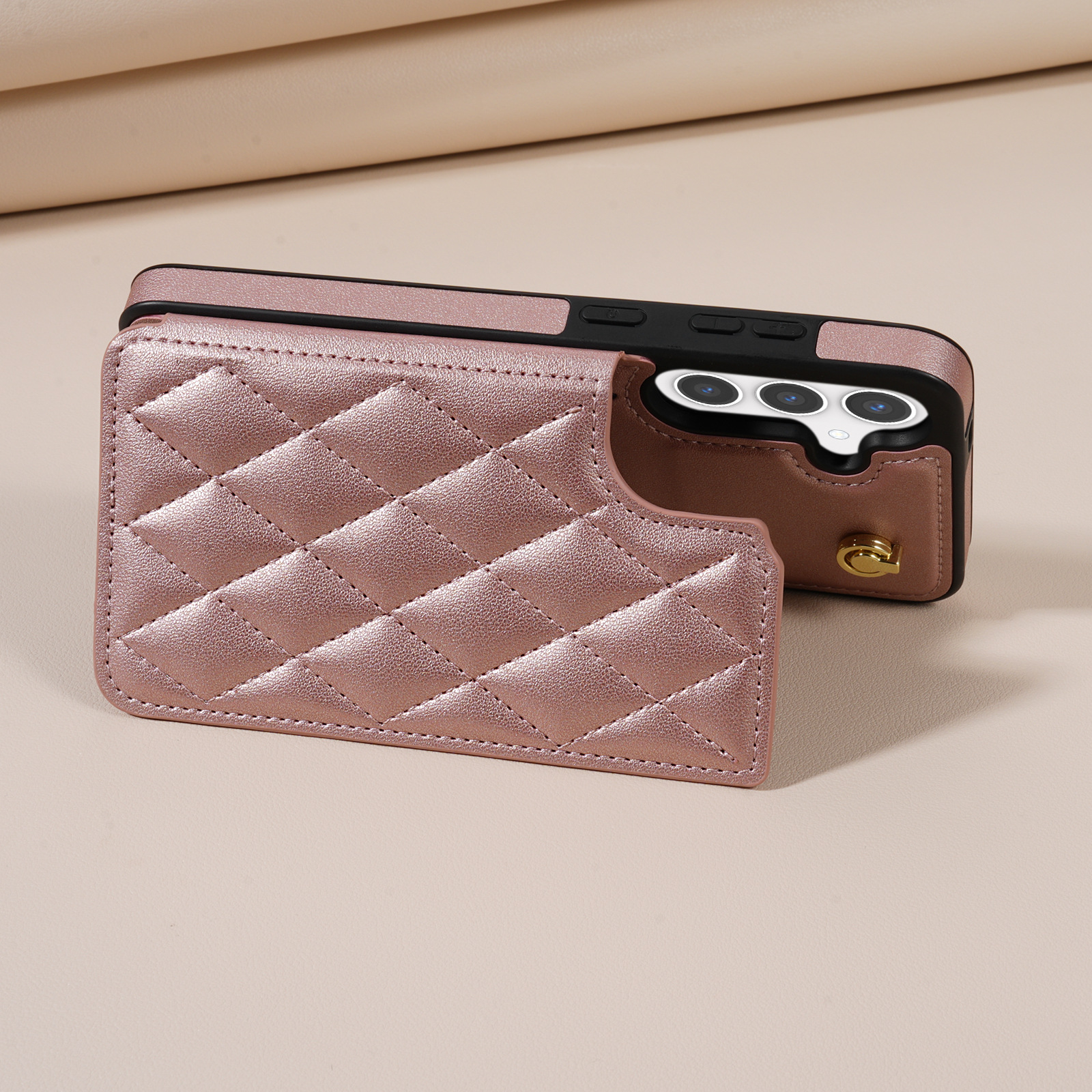 삼성 S25ULTRA 휴대폰 케이스에 적합한 새로운 더블 버튼 작은 향기 스타일 마름모 패턴 카드 홀더 가죽 케이스