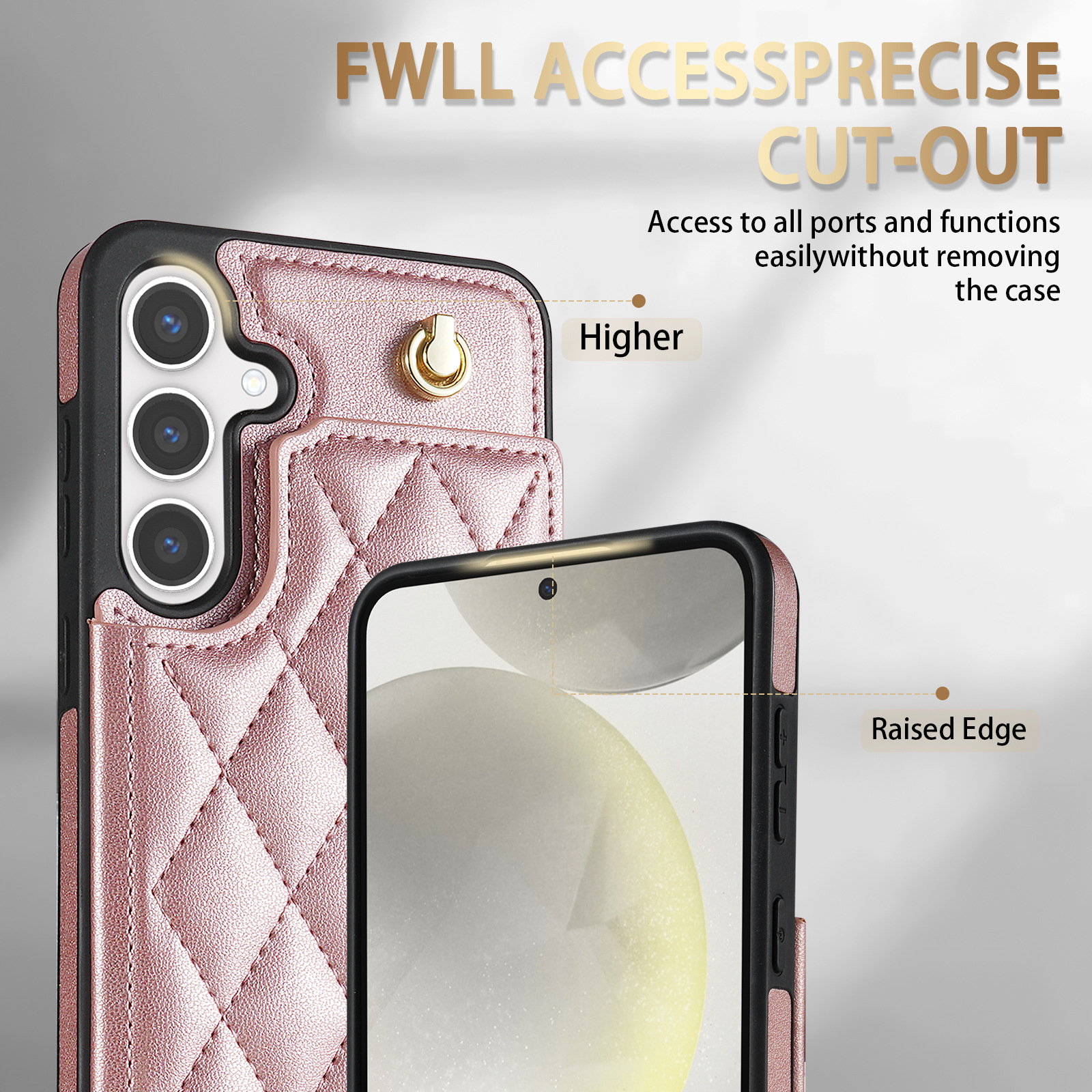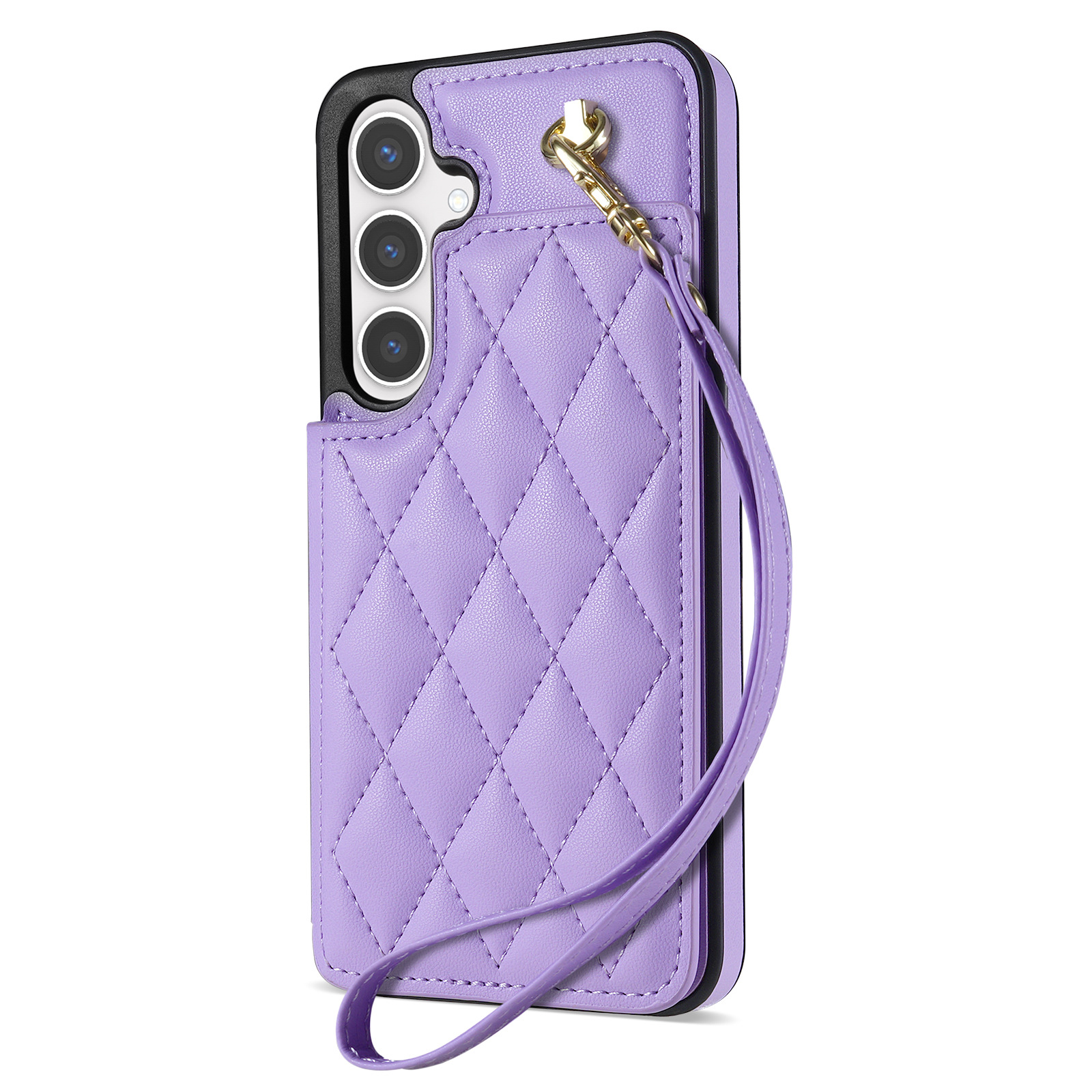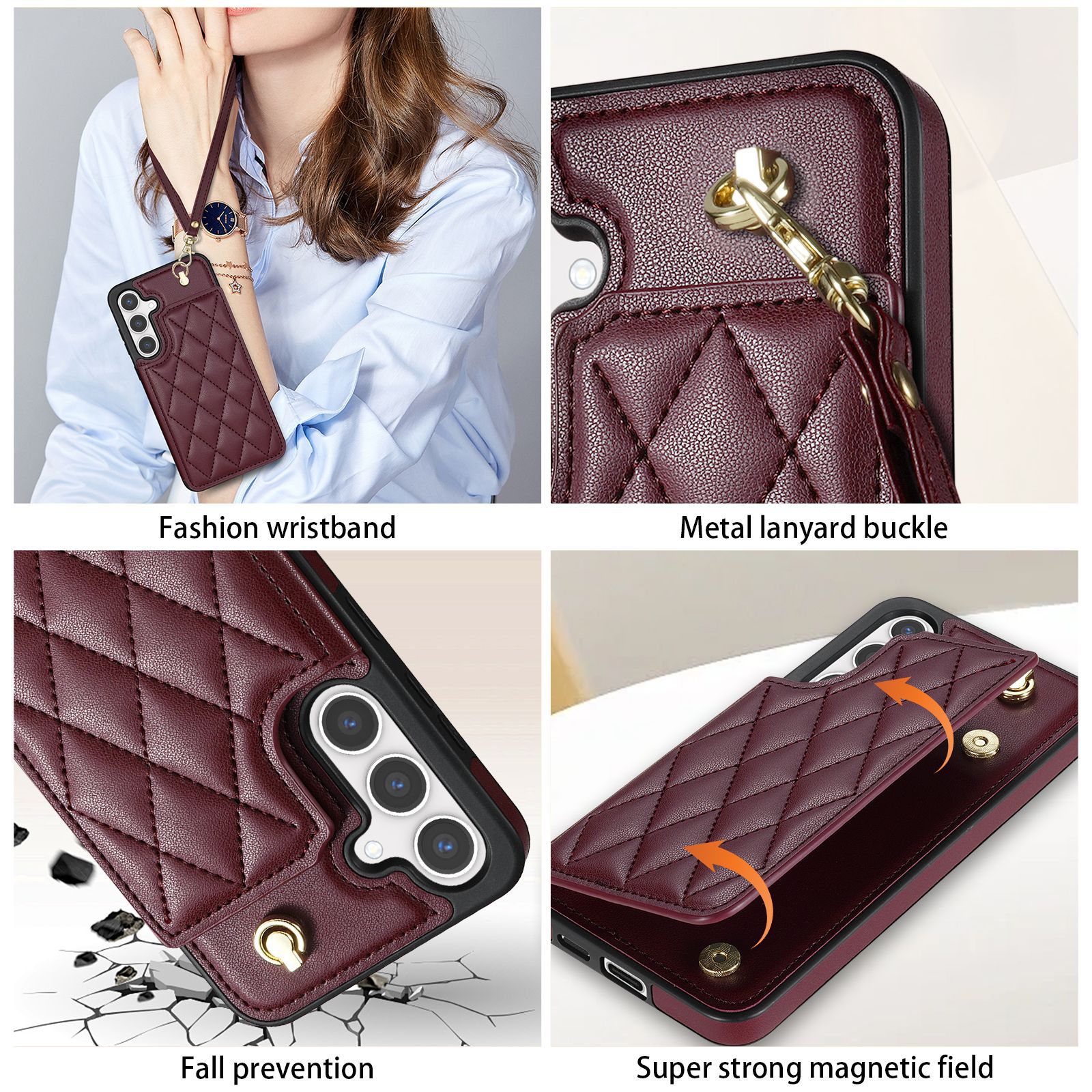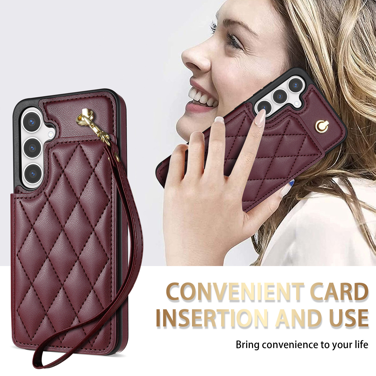 삼성 S25ULTRA 휴대폰 케이스에 적합한 새로운 더블 버튼 작은 향기 스타일 마름모 패턴 카드 홀더 가죽 케이스