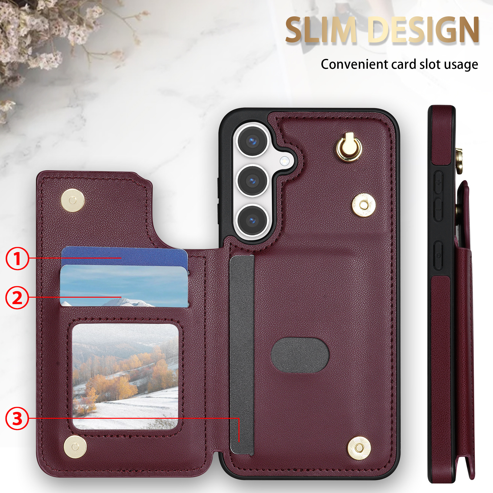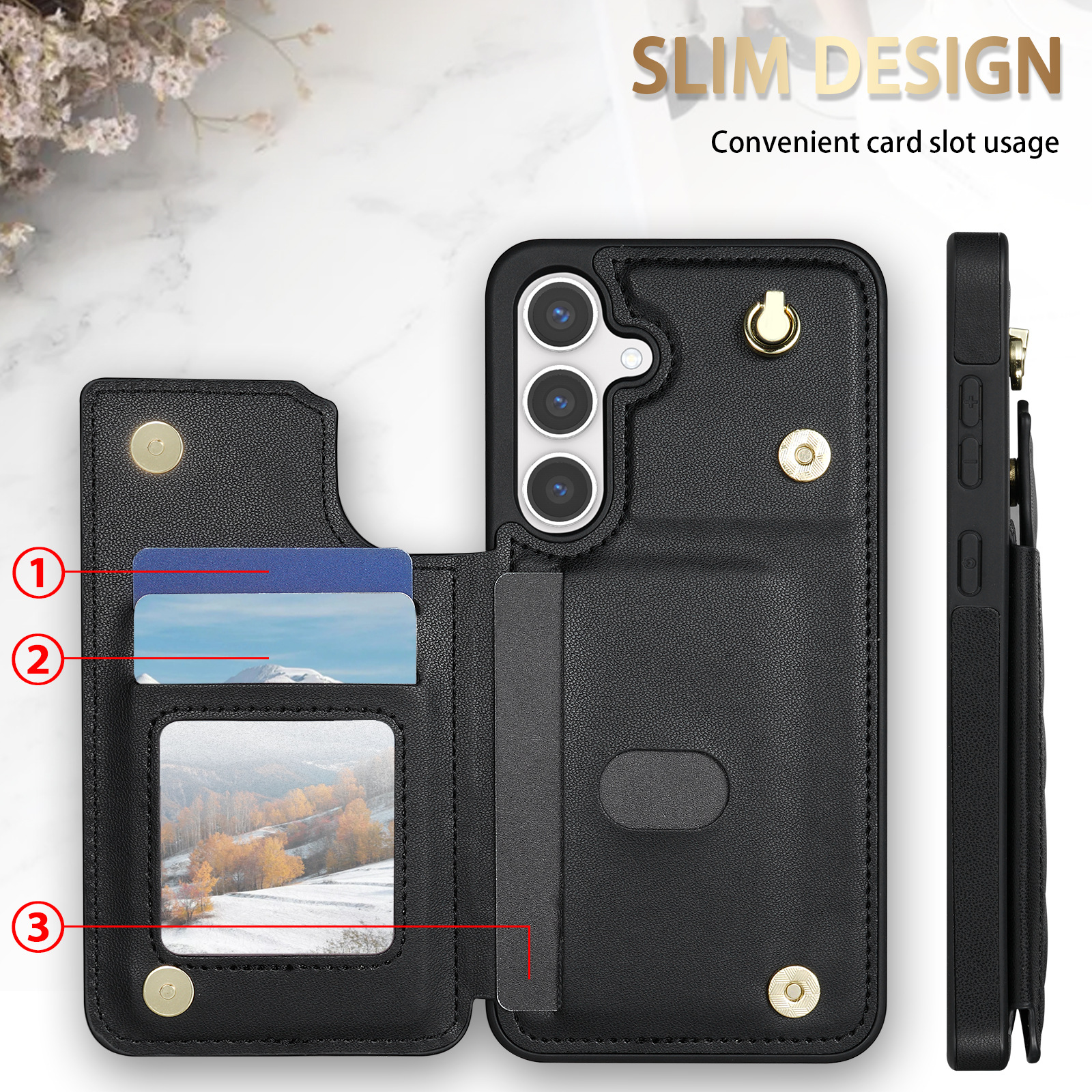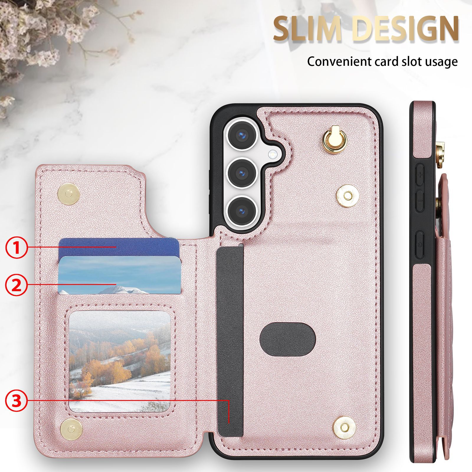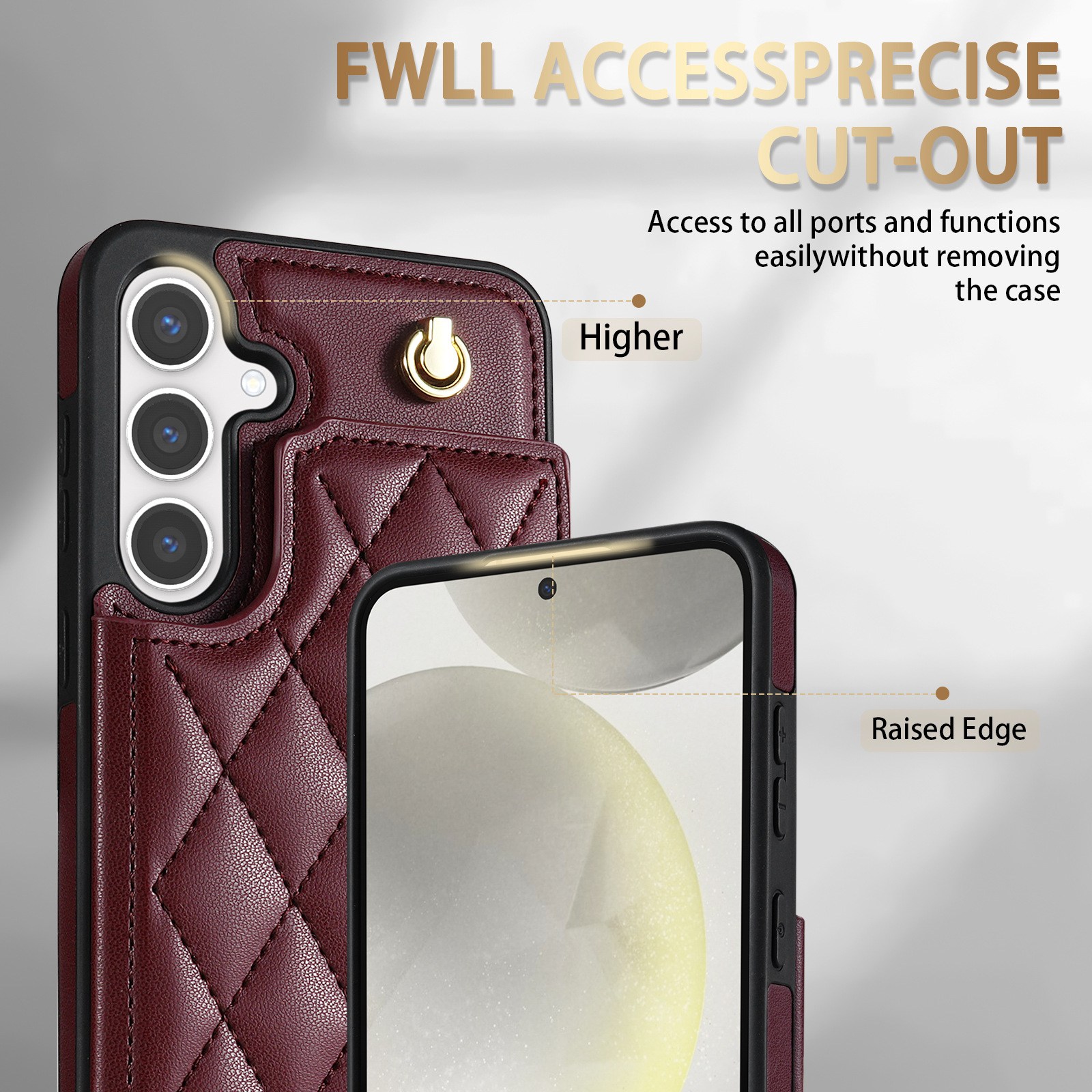 삼성 S25ULTRA 휴대폰 케이스에 적합한 새로운 더블 버튼 작은 향기 스타일 마름모 패턴 카드 홀더 가죽 케이스