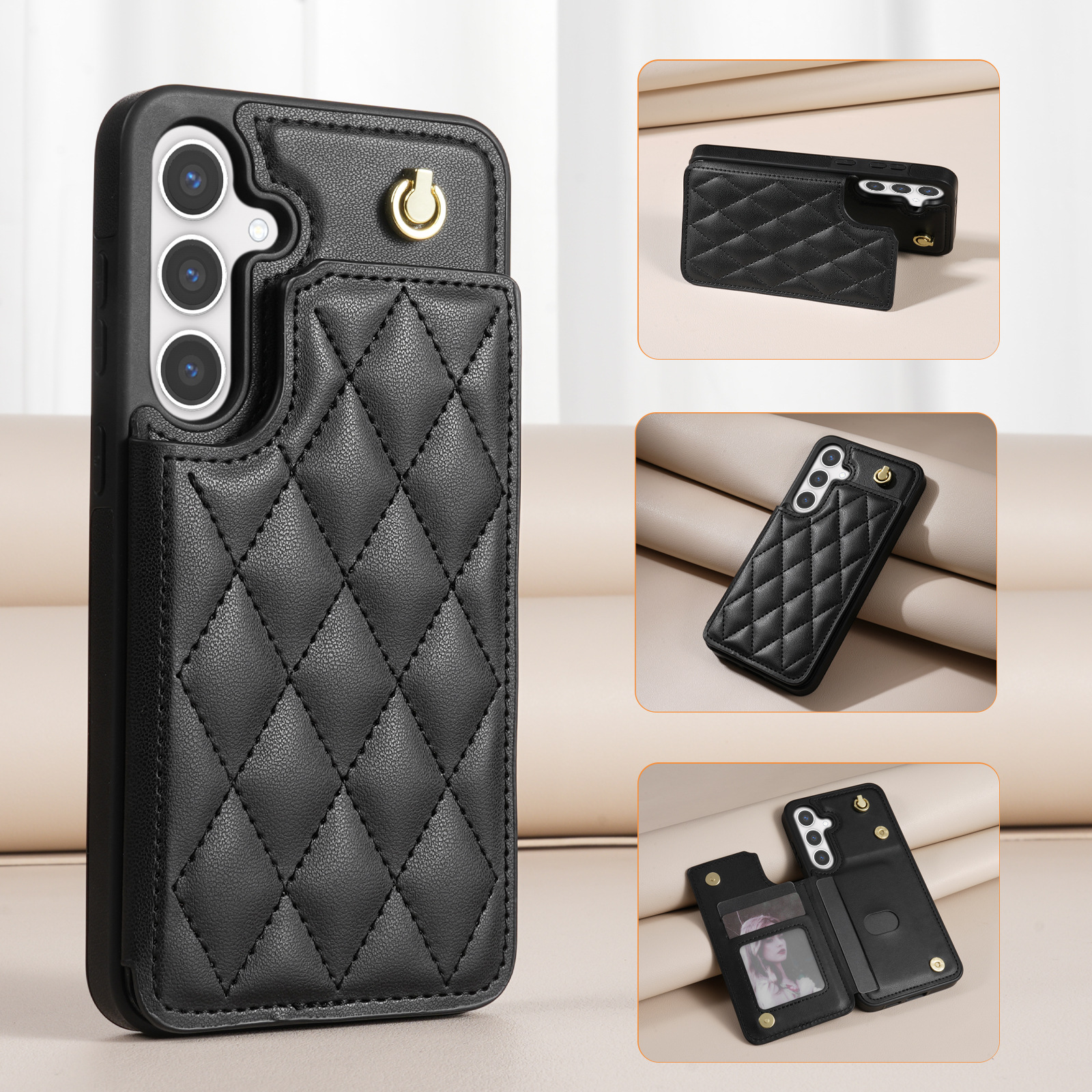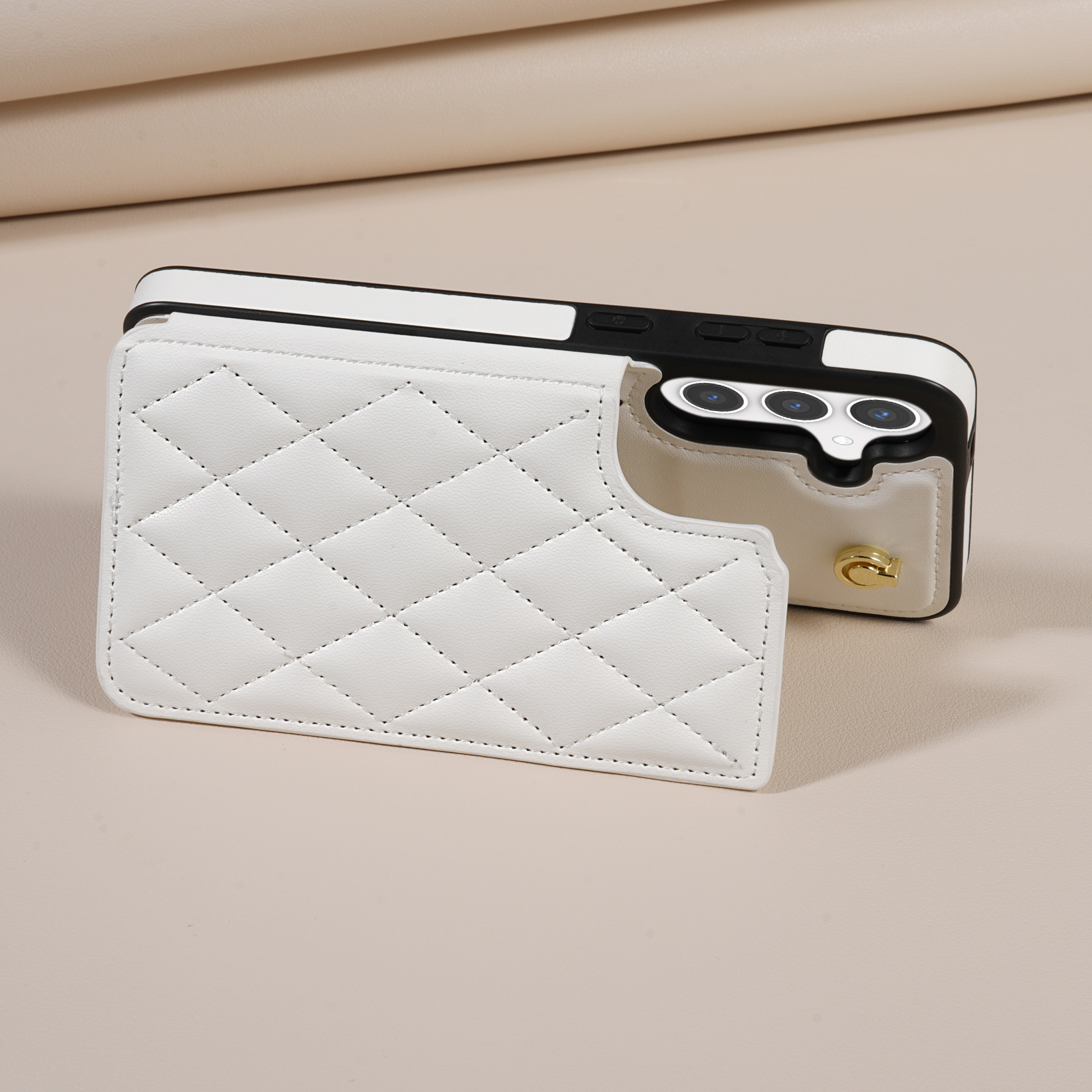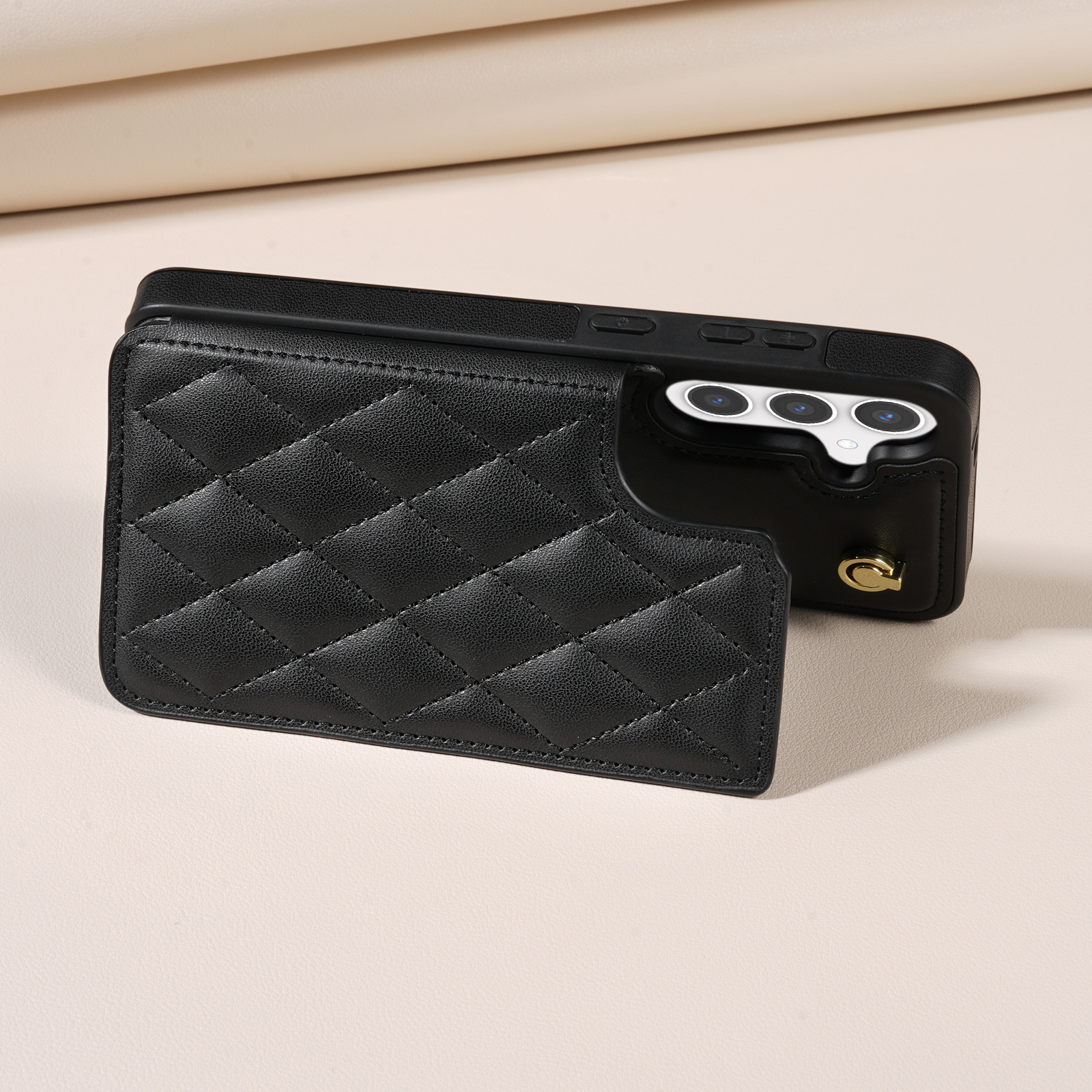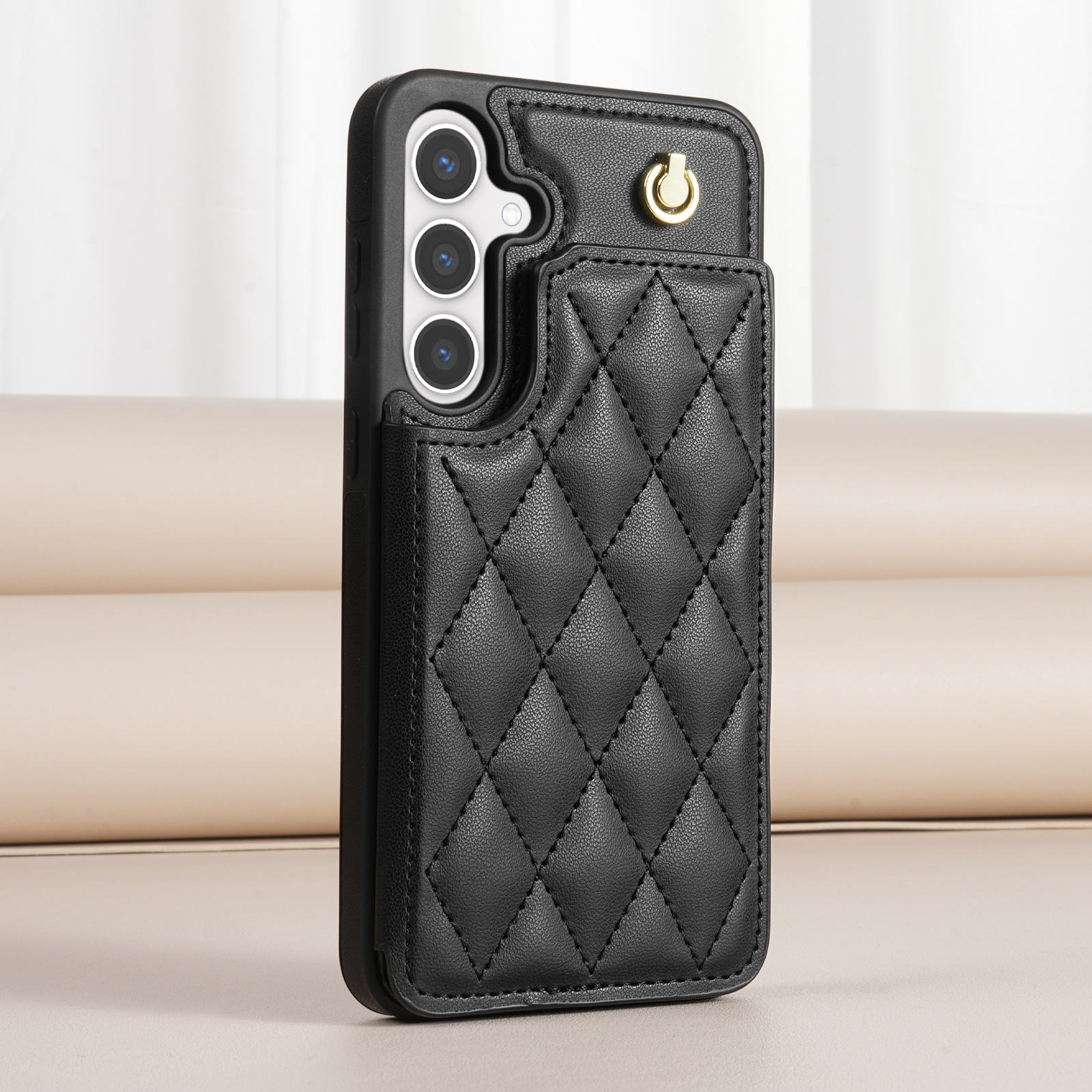 삼성 S25ULTRA 휴대폰 케이스에 적합한 새로운 더블 버튼 작은 향기 스타일 마름모 패턴 카드 홀더 가죽 케이스스토어 가기