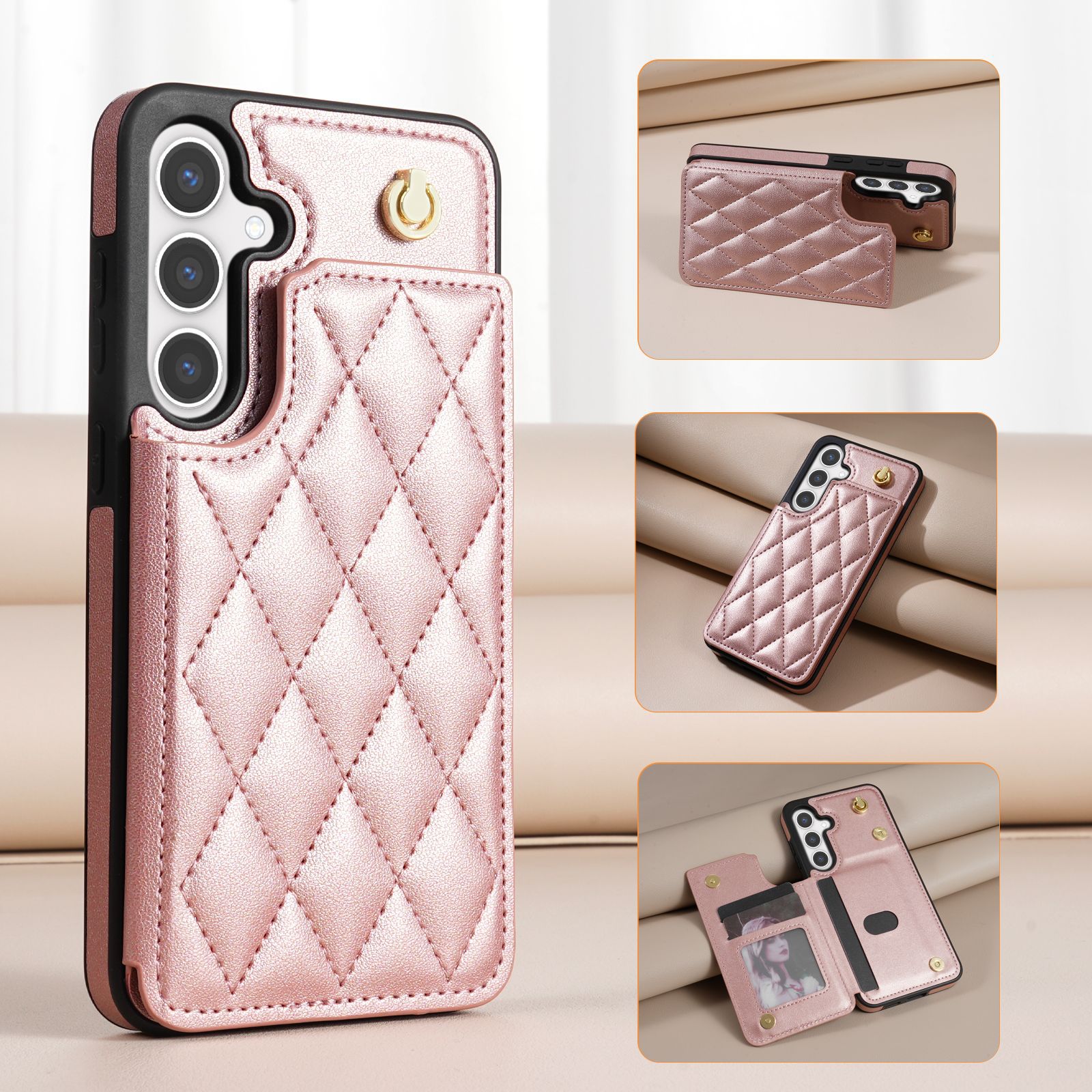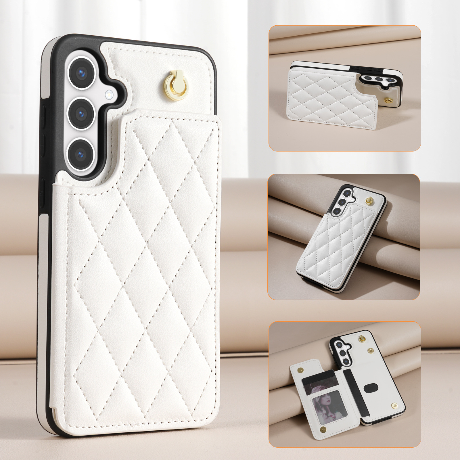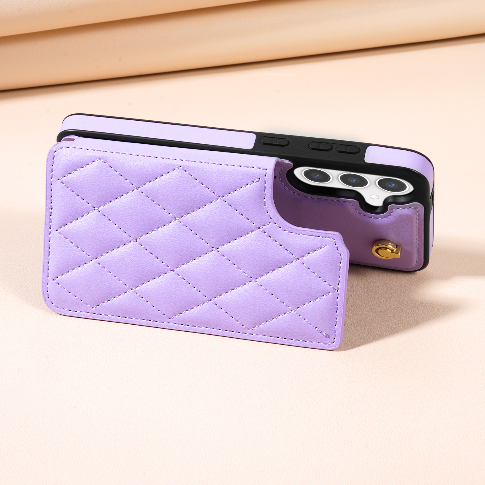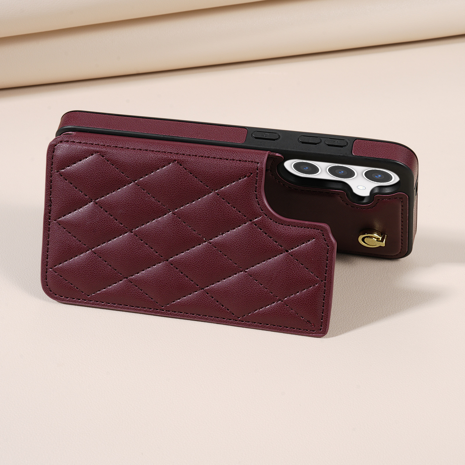 삼성 S25ULTRA 휴대폰 케이스에 적합한 새로운 더블 버튼 작은 향기 스타일 마름모 패턴 카드 홀더 가죽 케이스스토어 가기