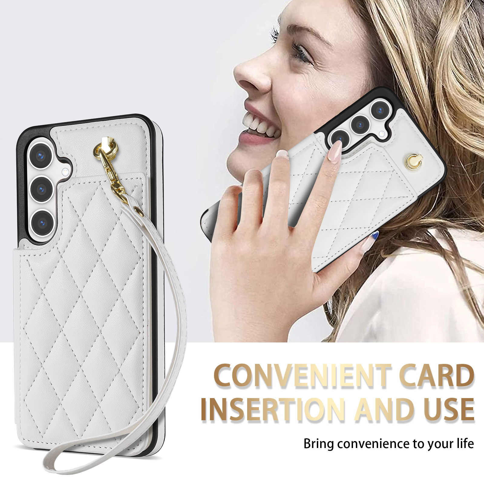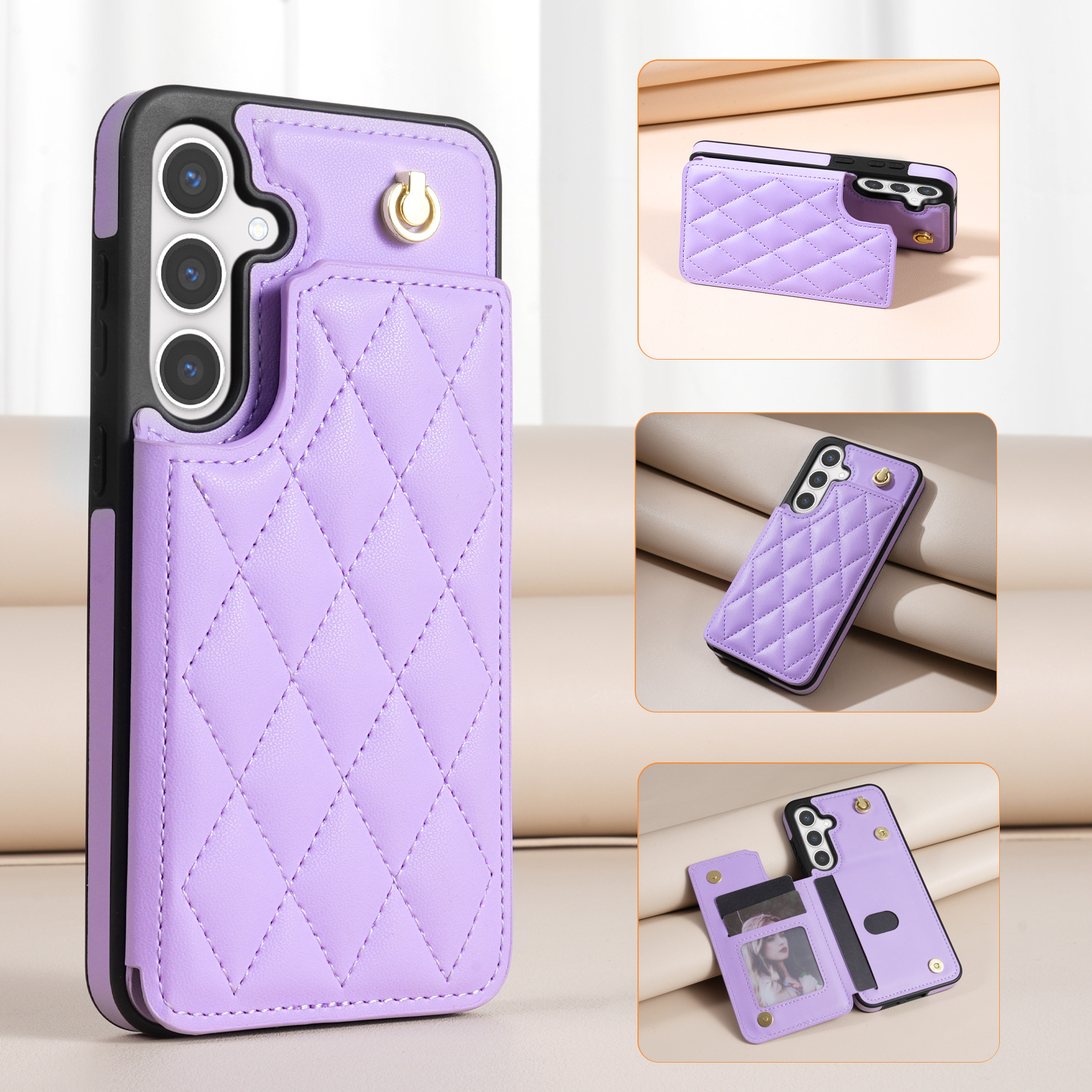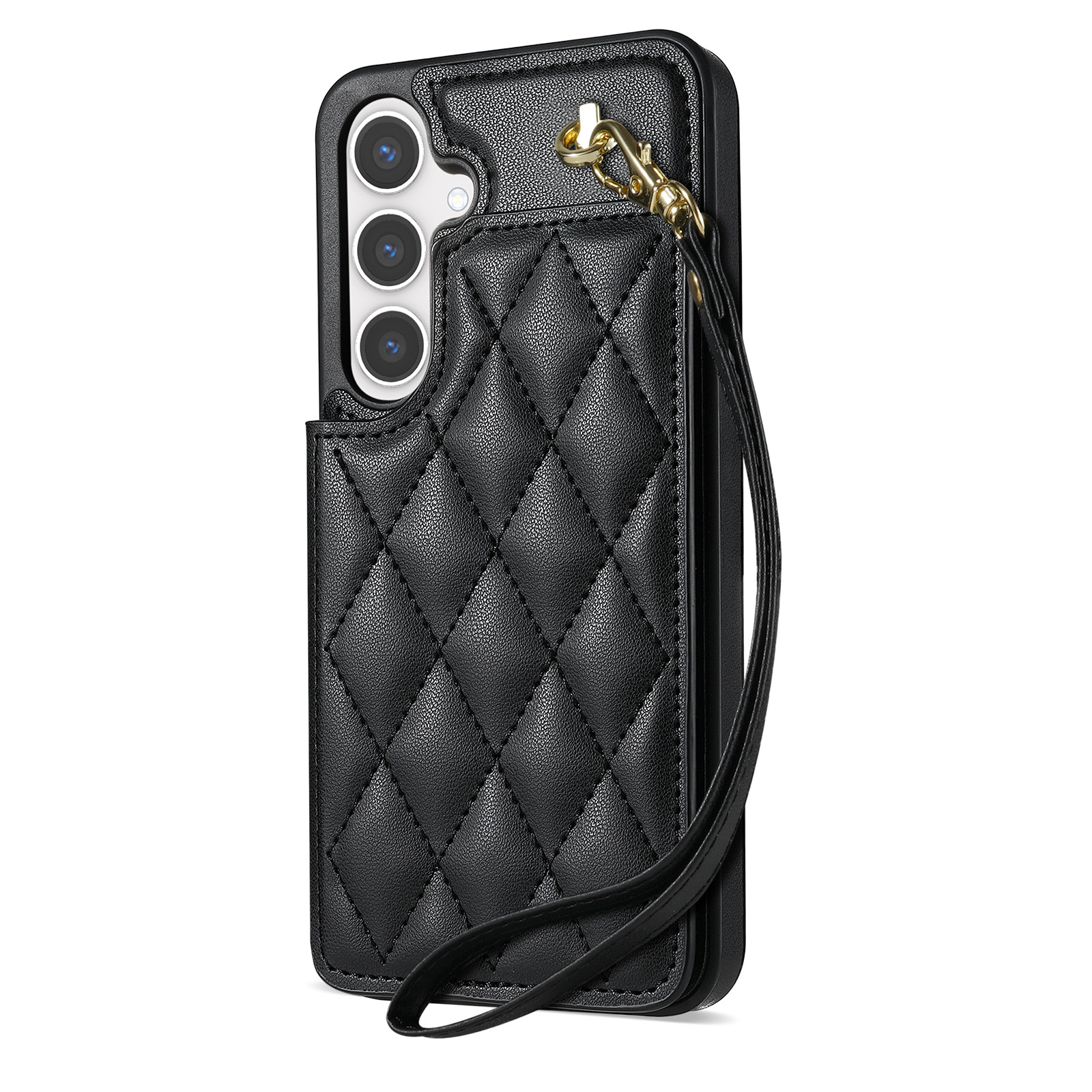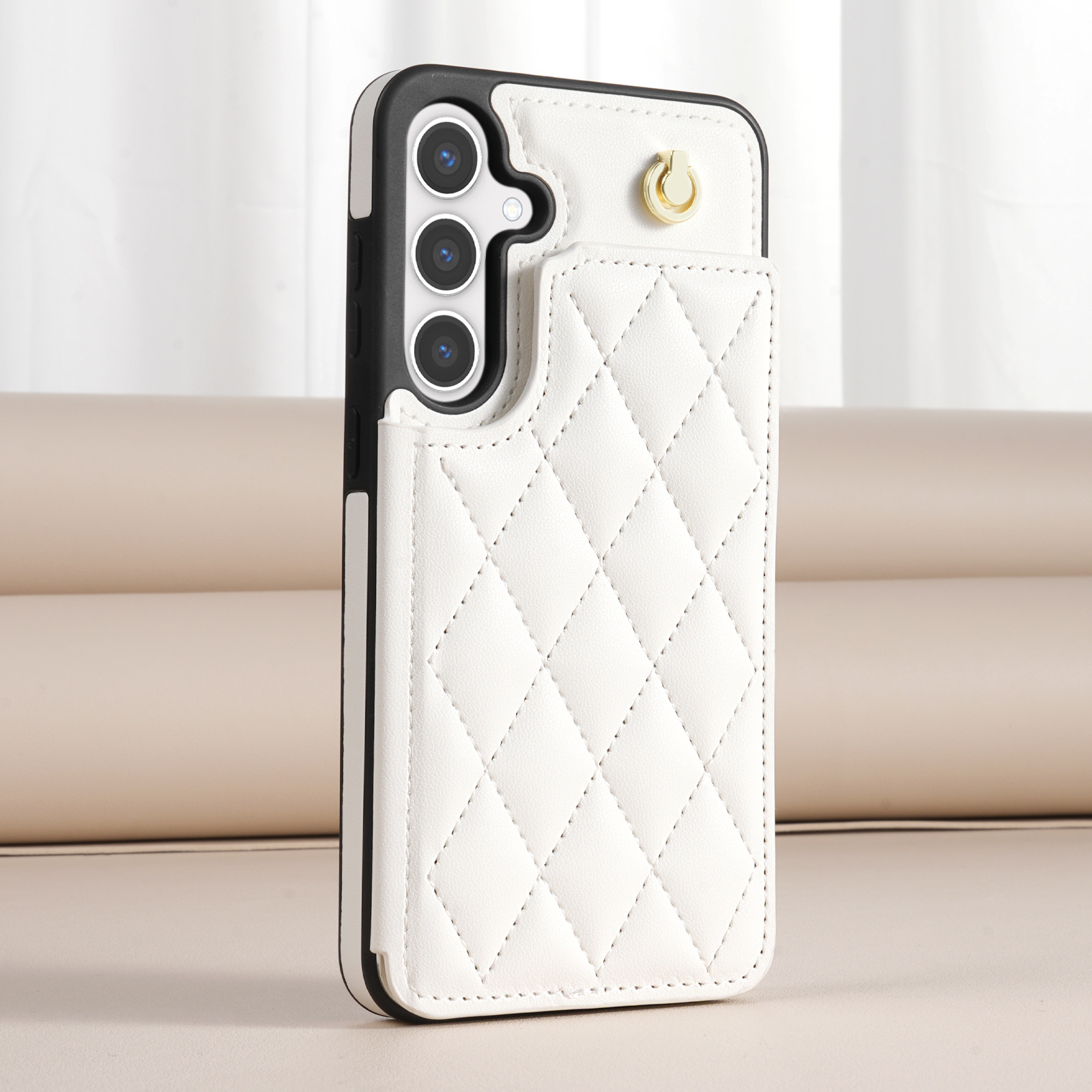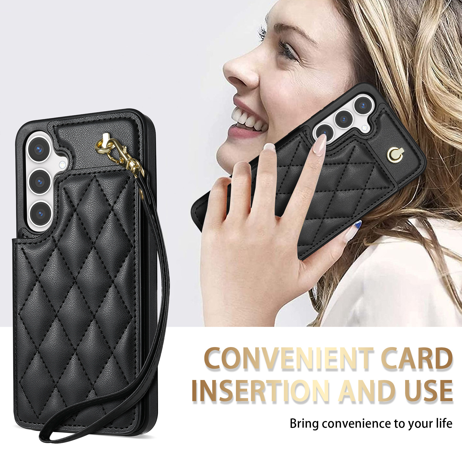 삼성 S25ULTRA 휴대폰 케이스에 적합한 새로운 더블 버튼 작은 향기 스타일 마름모 패턴 카드 홀더 가죽 케이스스토어 가기
