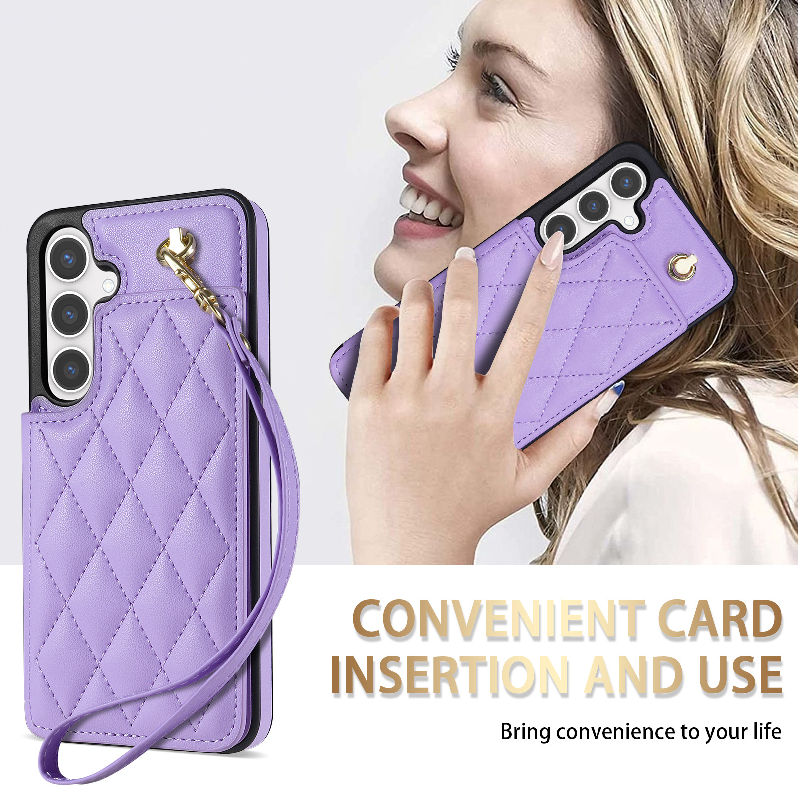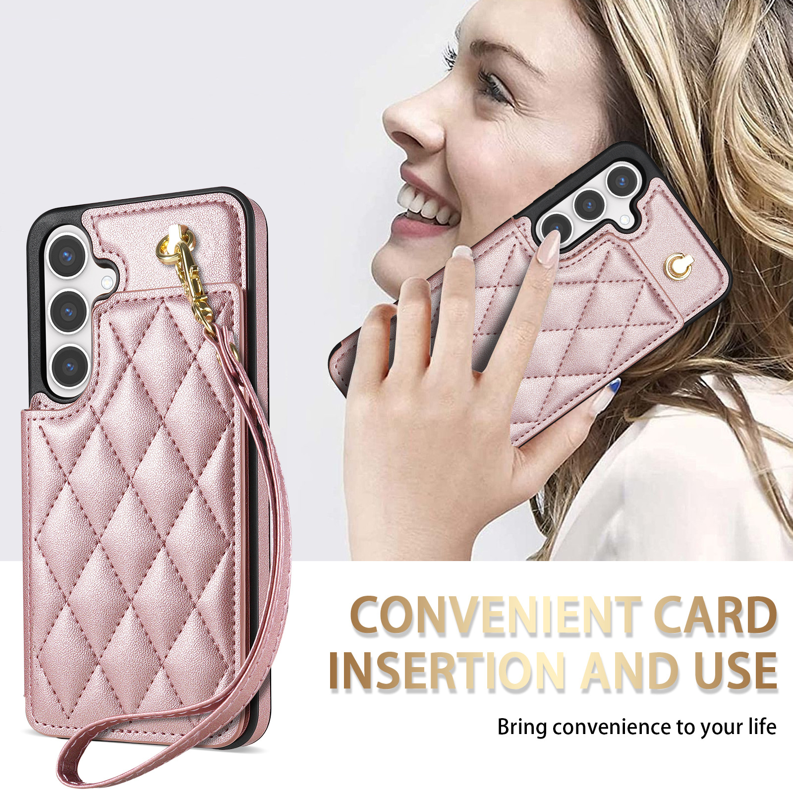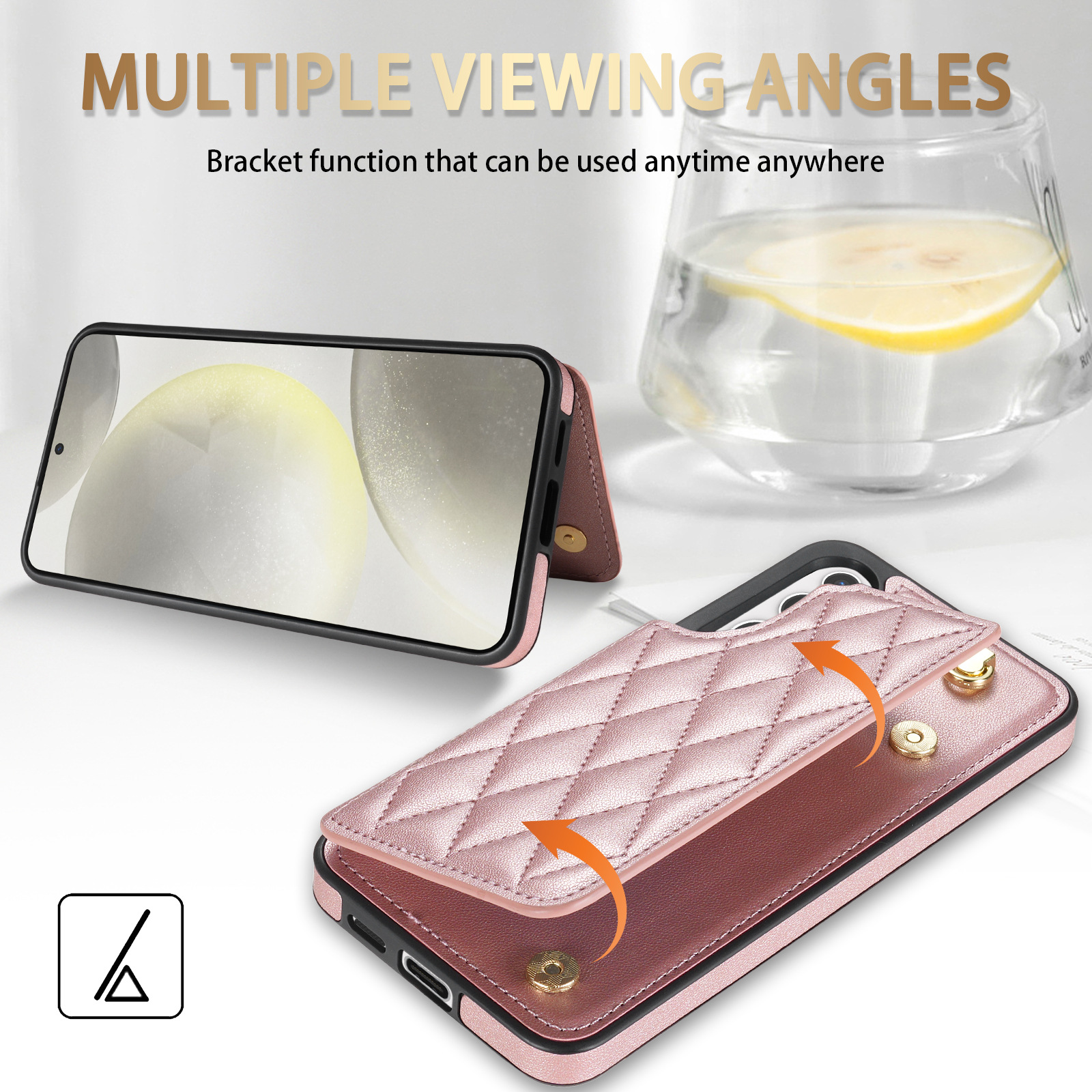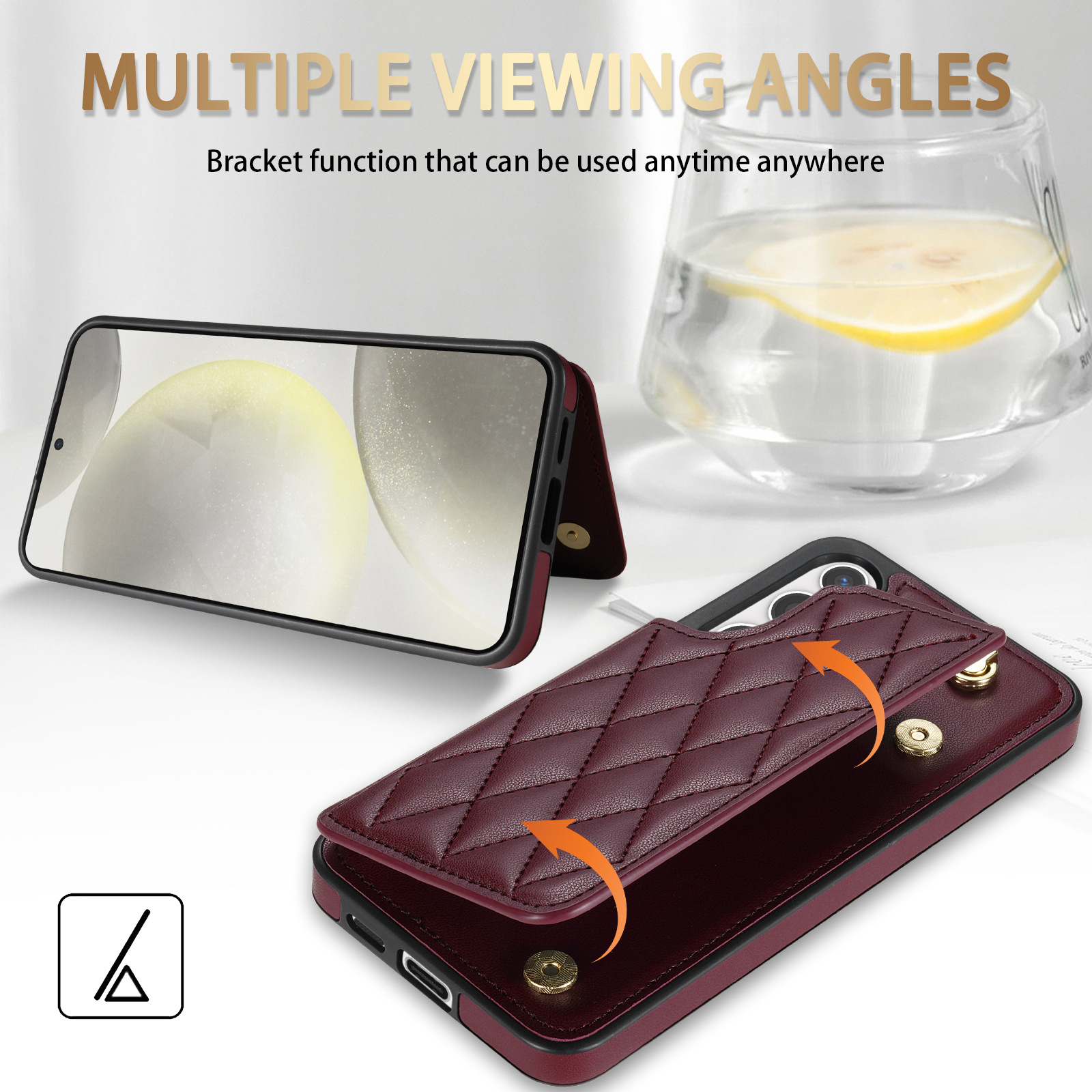 삼성 S25ULTRA 휴대폰 케이스에 적합한 새로운 더블 버튼 작은 향기 스타일 마름모 패턴 카드 홀더 가죽 케이스스토어 가기