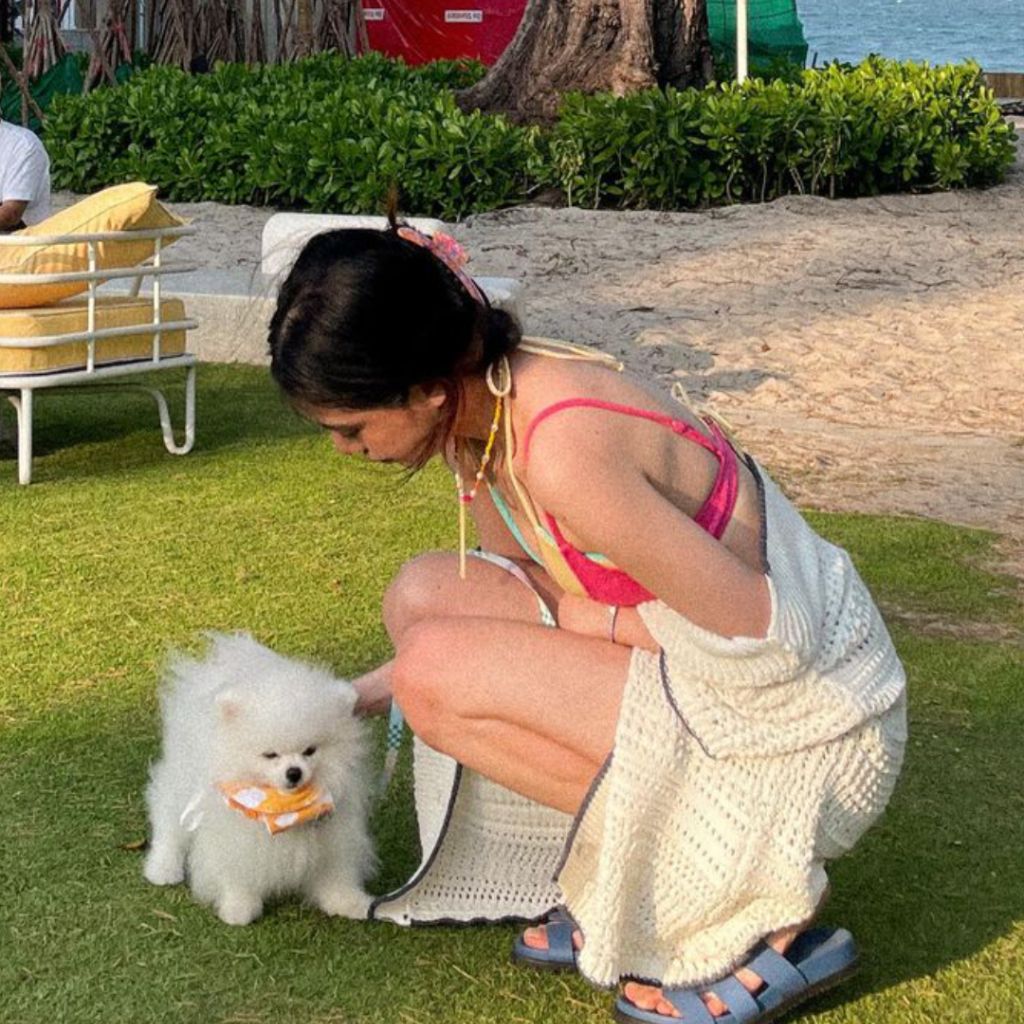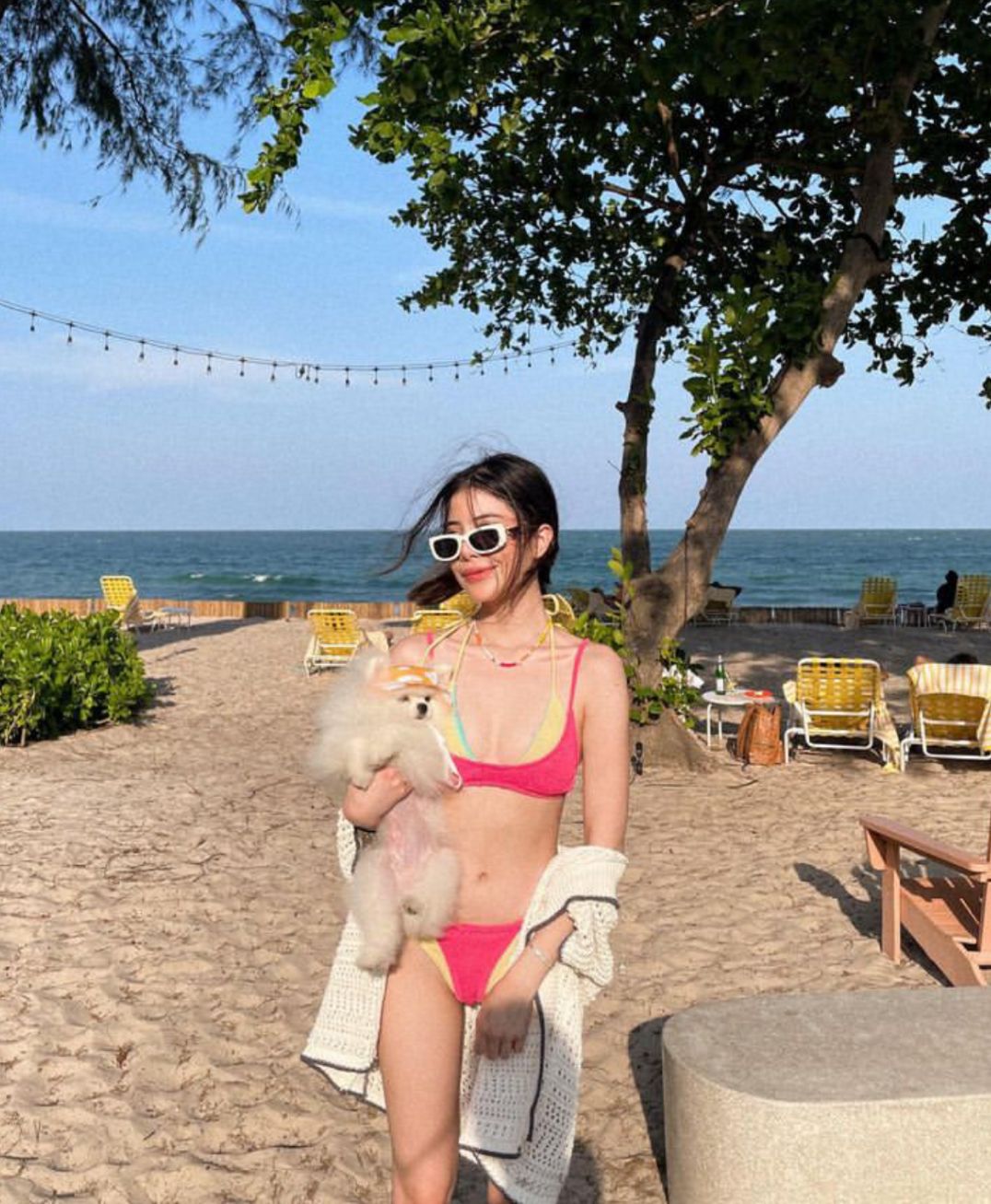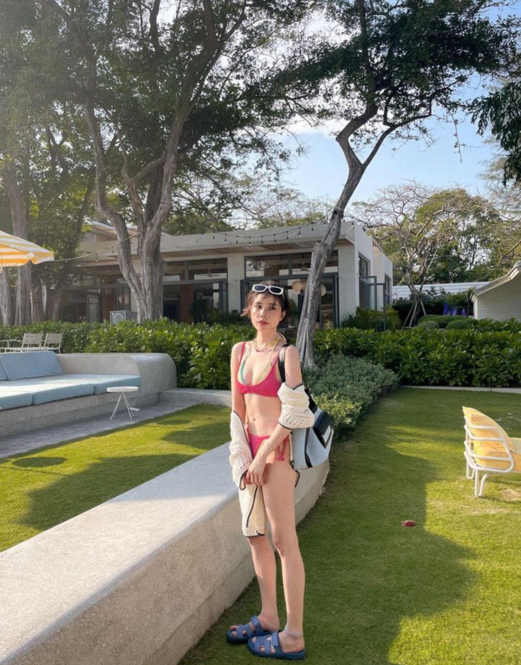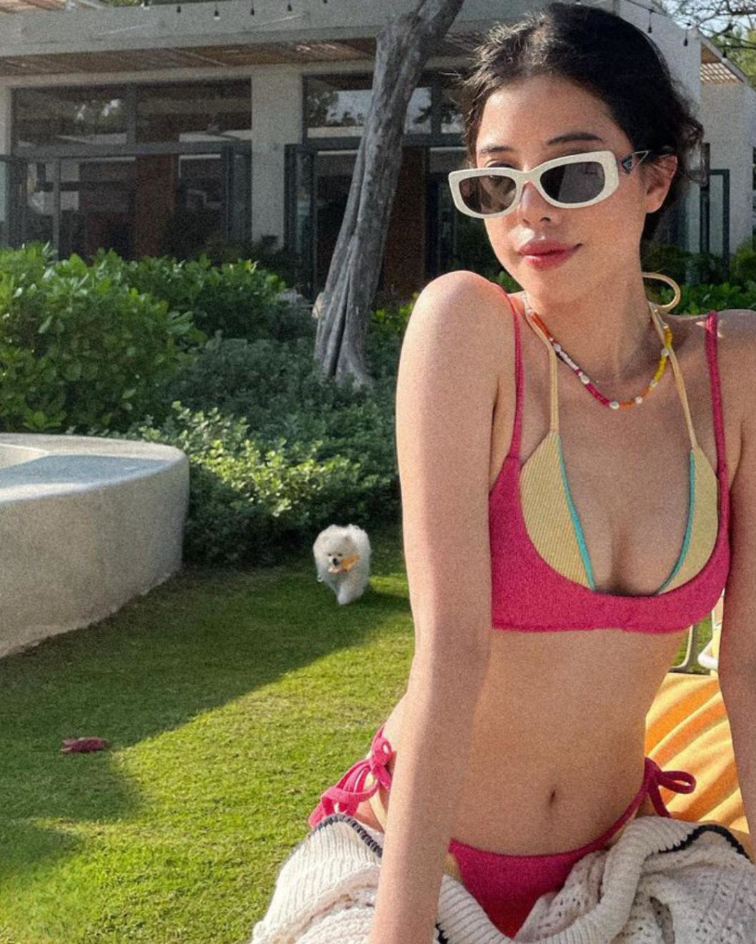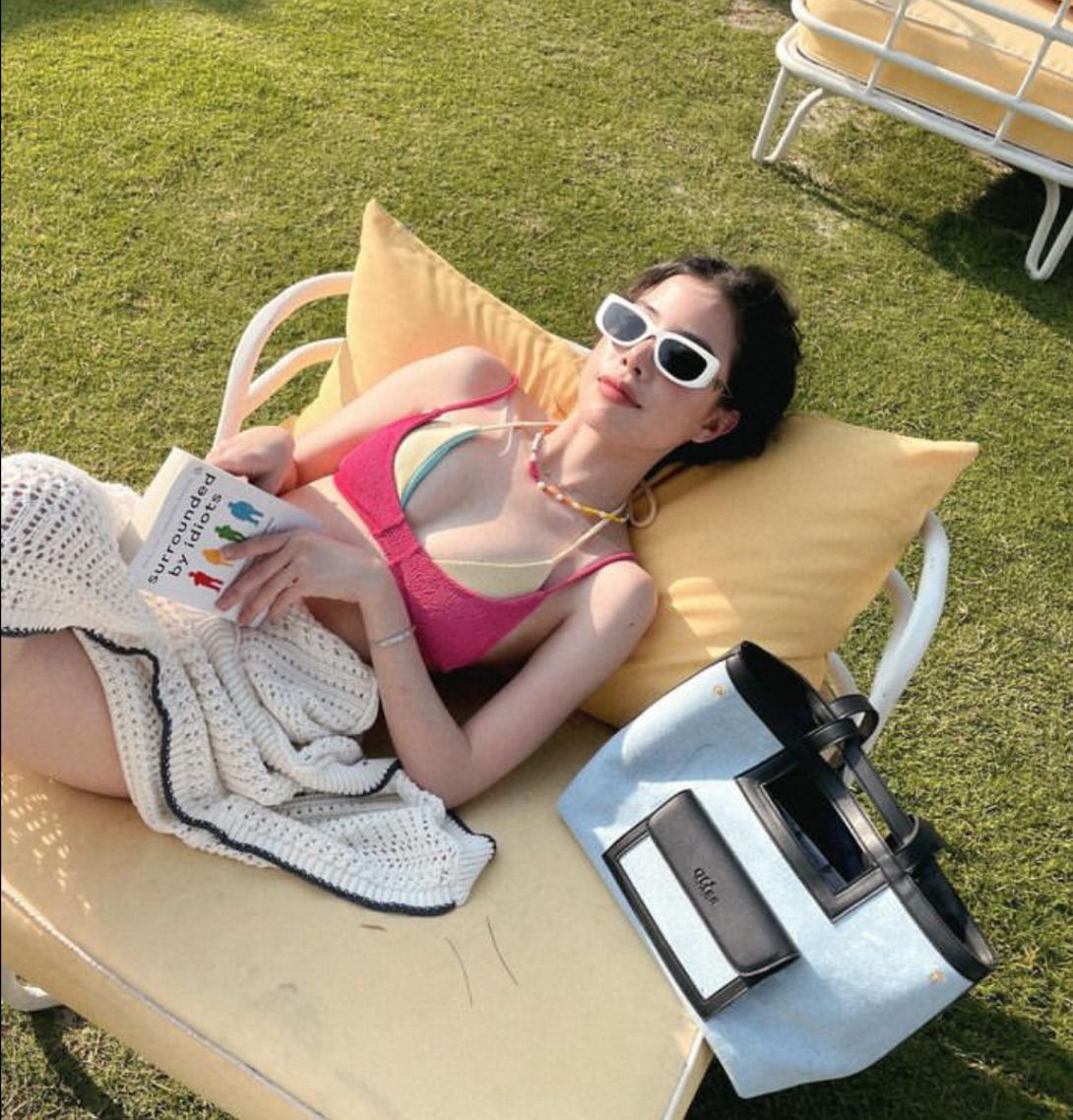 2024 한국 신상 스플릿 수영복, 여성스러운 슬림 백리스 서스펜더 비키니, 온천 리조트 스타일 비키니스토어 가기