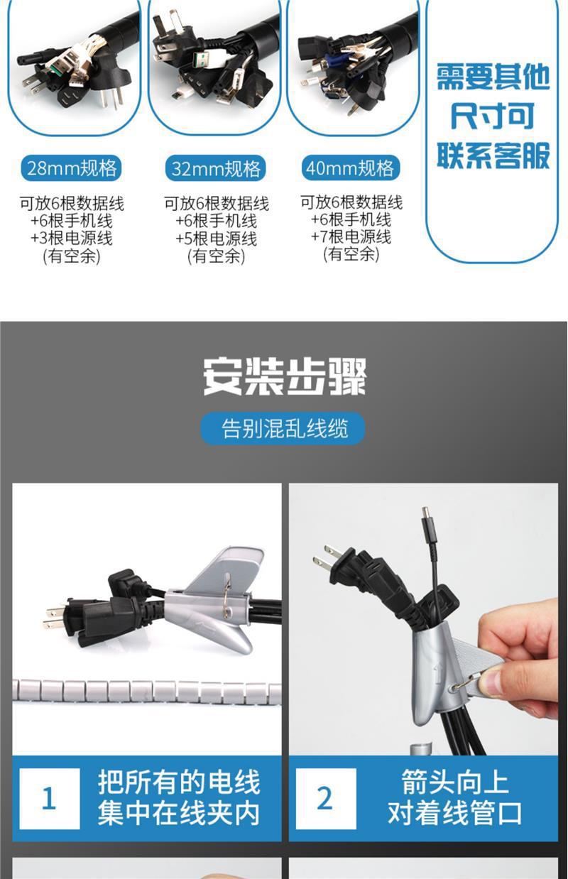 • 회색 42MM 5m / 케이블 클립 + 타이 + 고정 베이스 포함