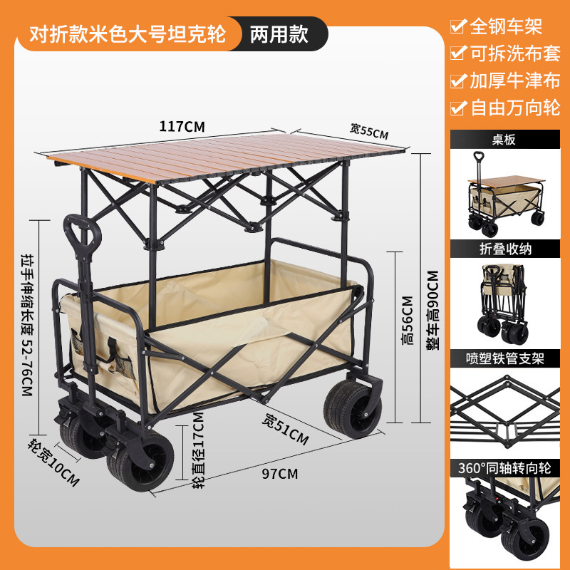 • 대형 드래그 버킷 10inch 탱크 휠(베이지색) + 높고 길어진 접이식 테이블