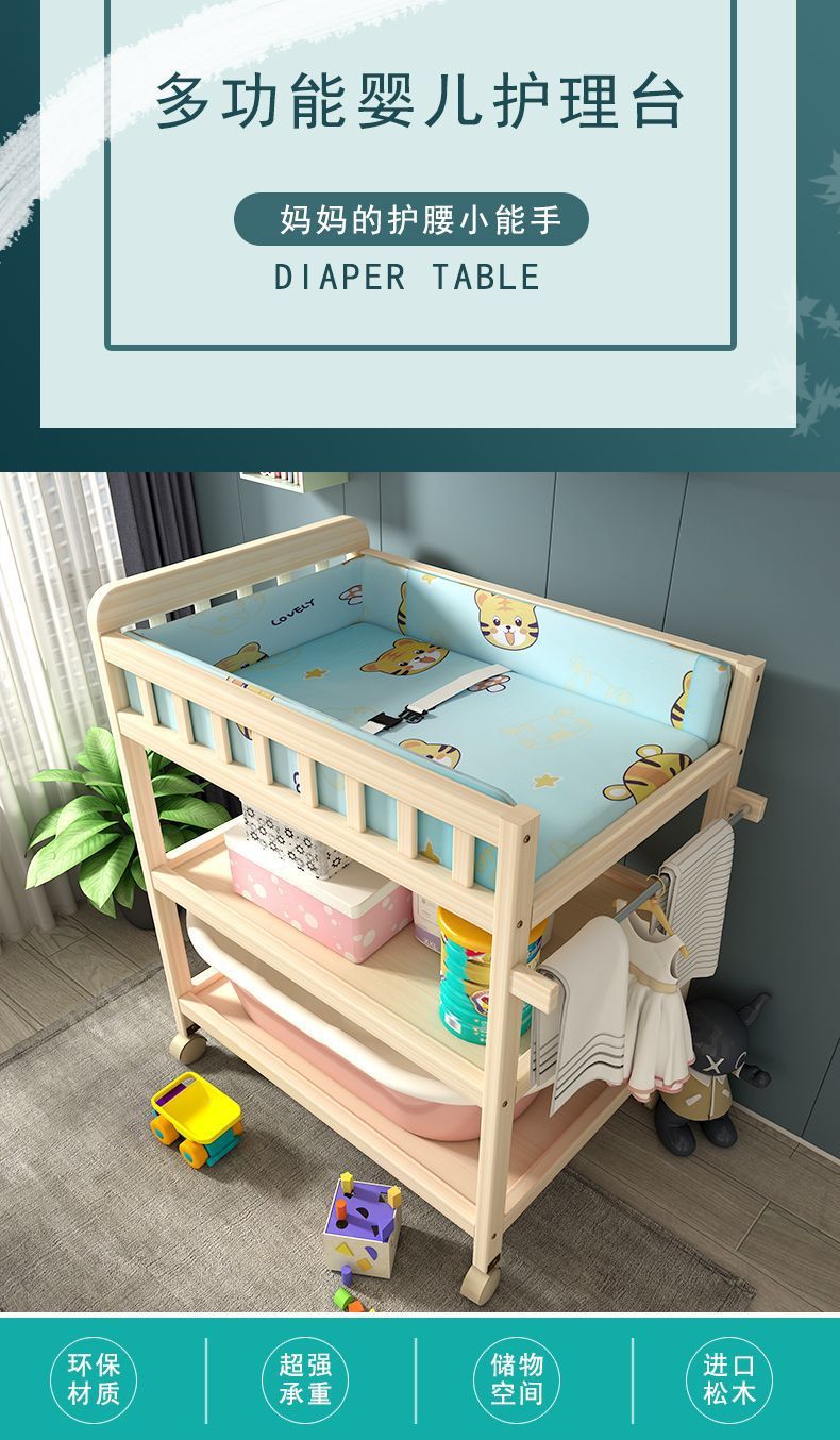 아기 단단한 나무 기저귀 교환대 신생아 다기능 목욕 마사지 케어 기저귀 교환대 이동식스토어 가기