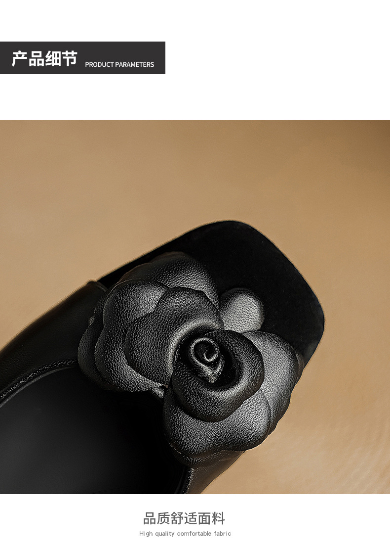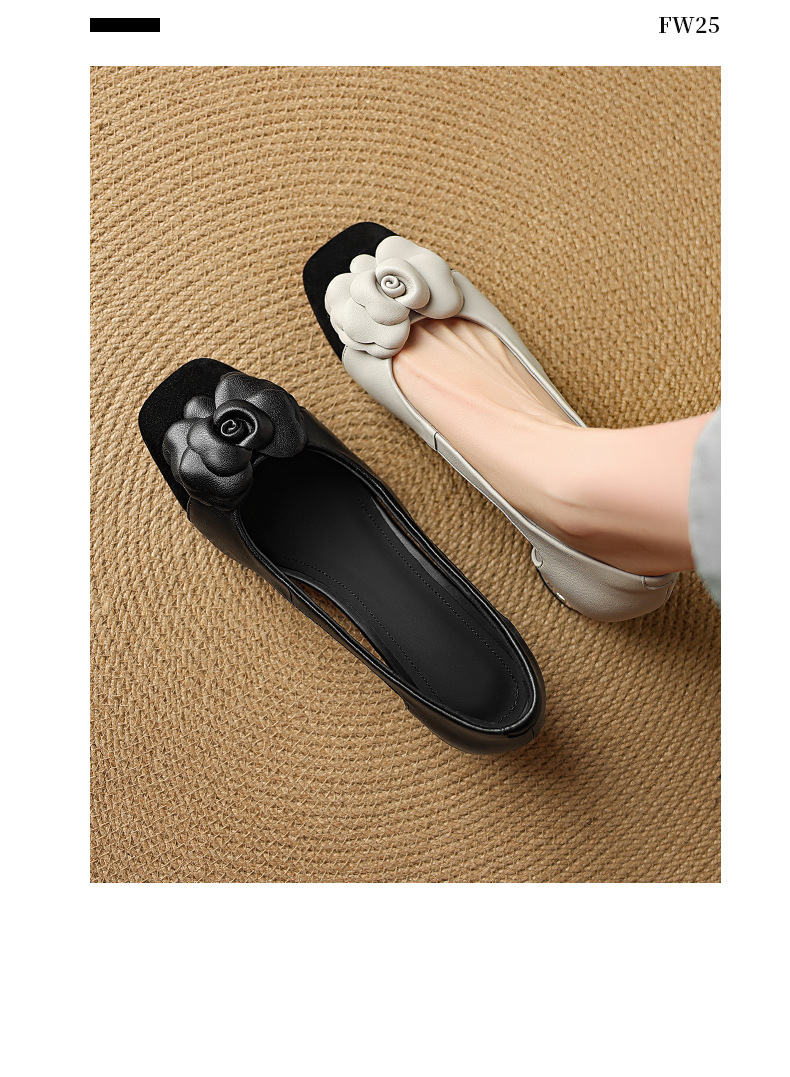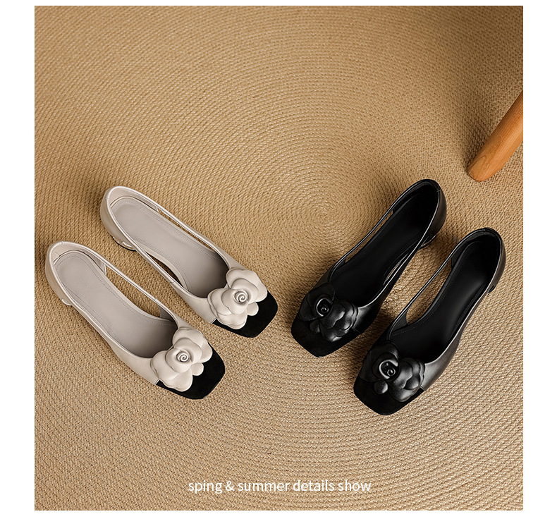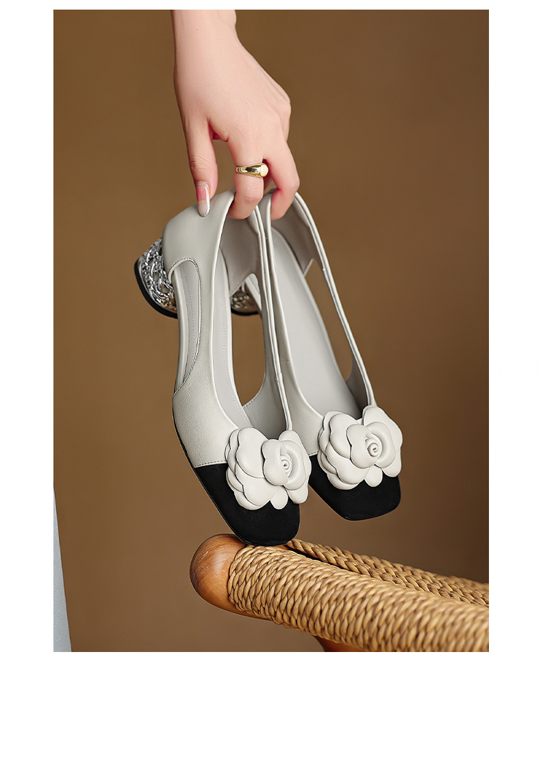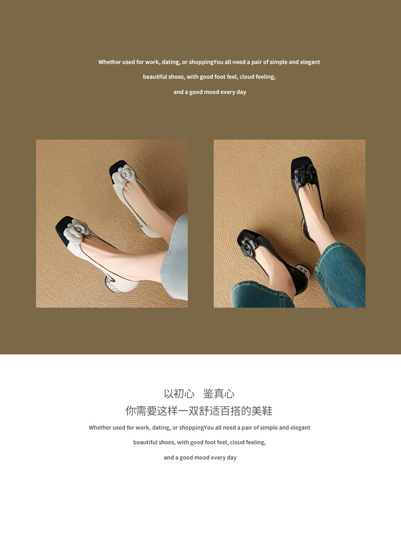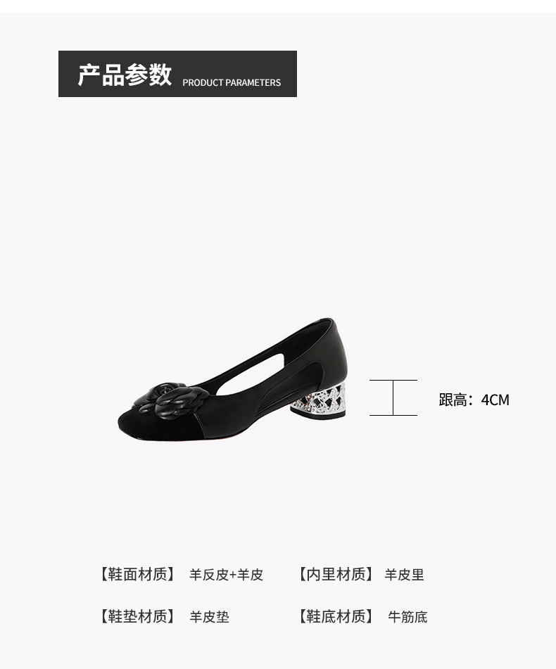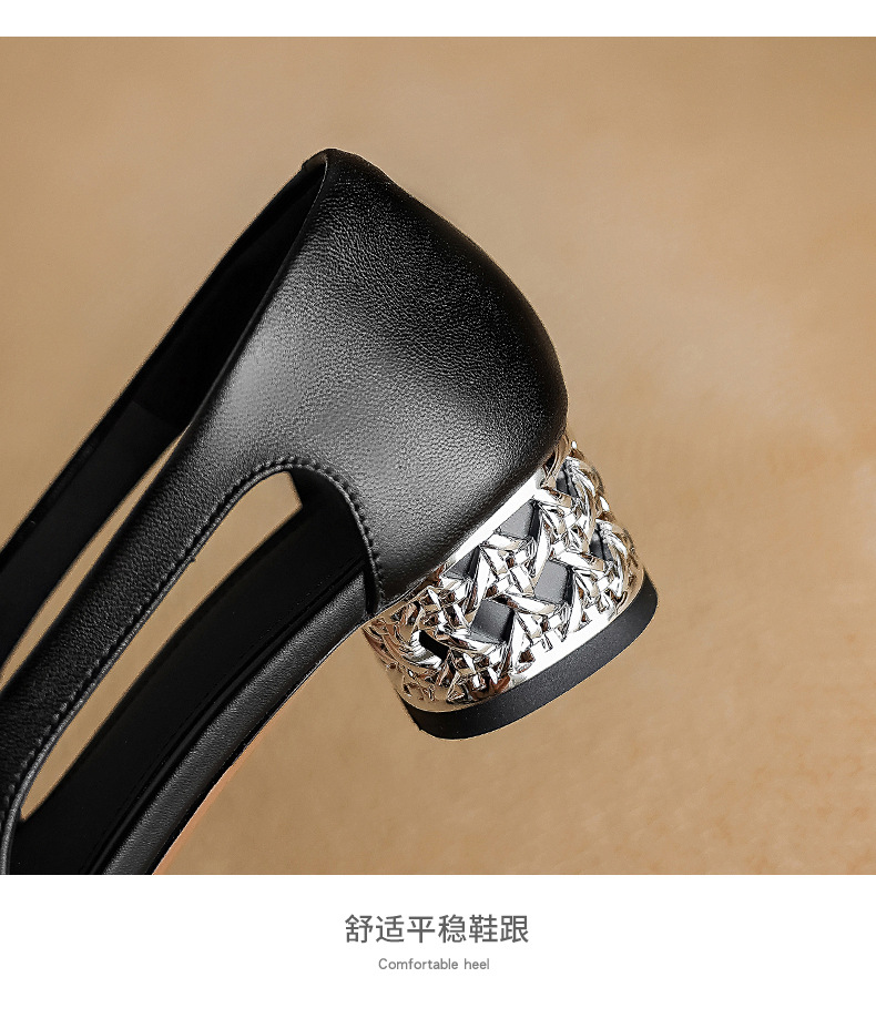 1층 소가죽 프렌치 미드힐 컬러블로킹 동백 포인티드 토 슈즈 25 봄, 가을 두꺼운 굽 얕은 입구 다용도 여성화