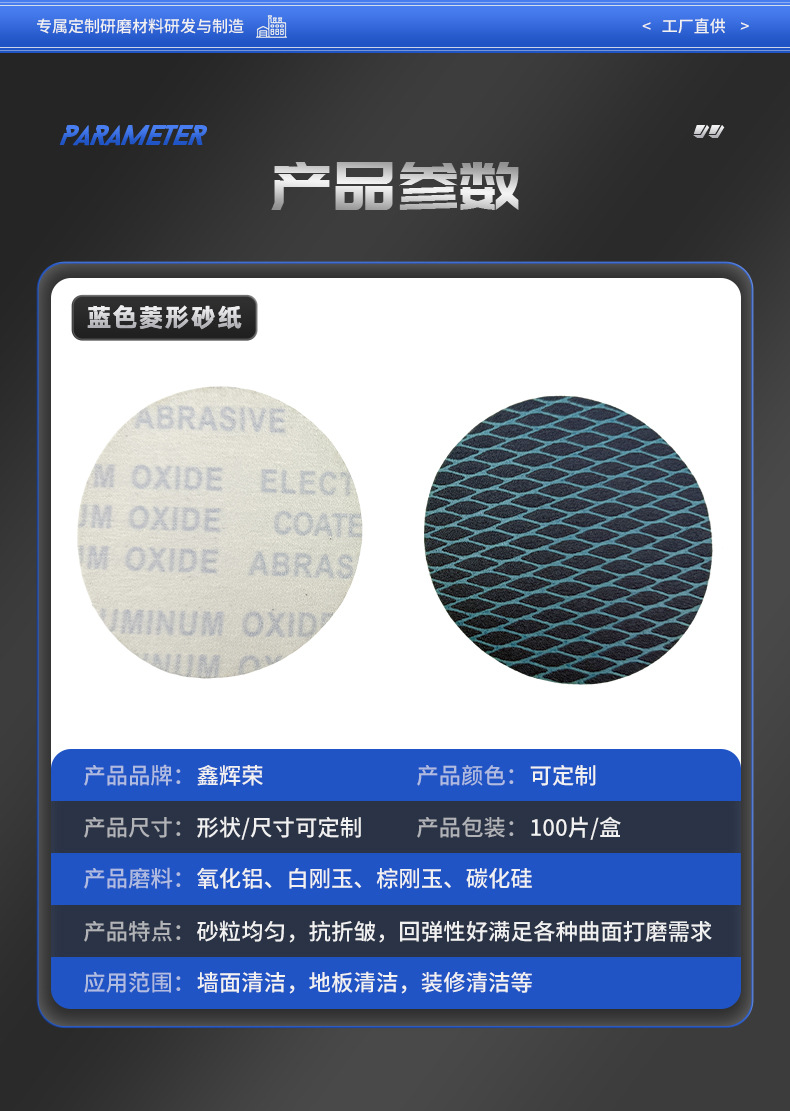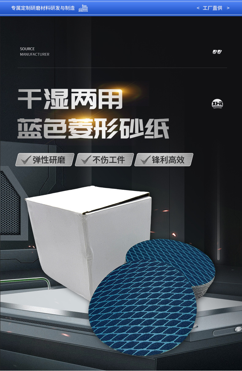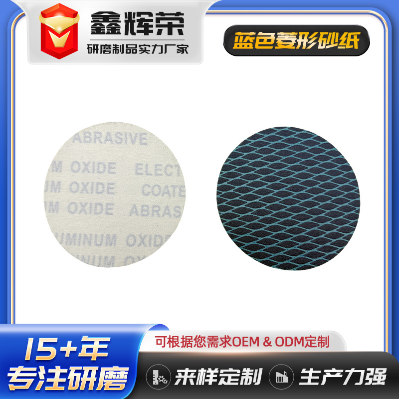 국경 간 인기 판매 4inch 5inch 마름모꼴 물고기 비늘 패턴 백 벨벳 사포 금속 페인트 연마 블루 마름모 원형 디스크 샌딩 시트