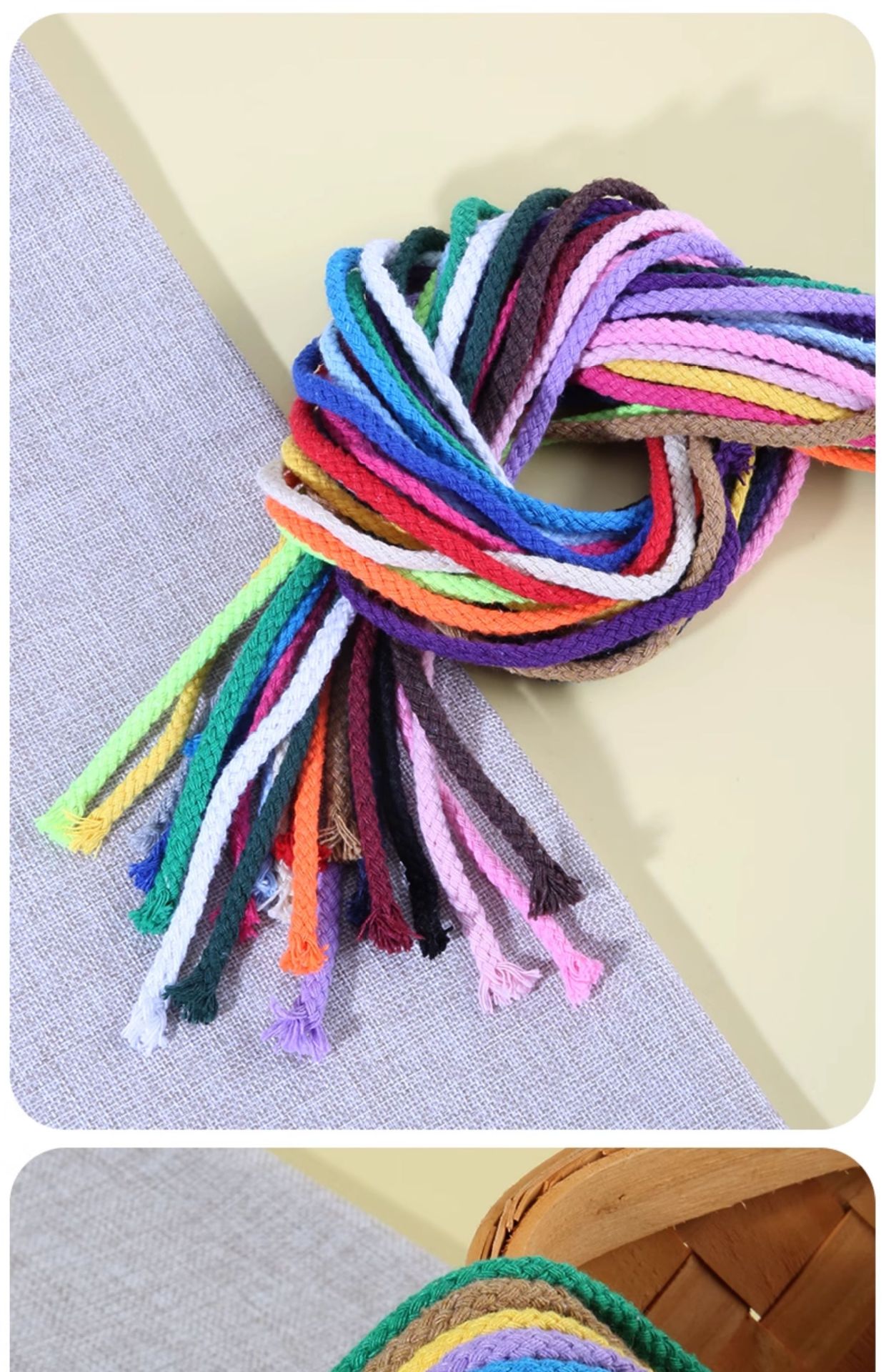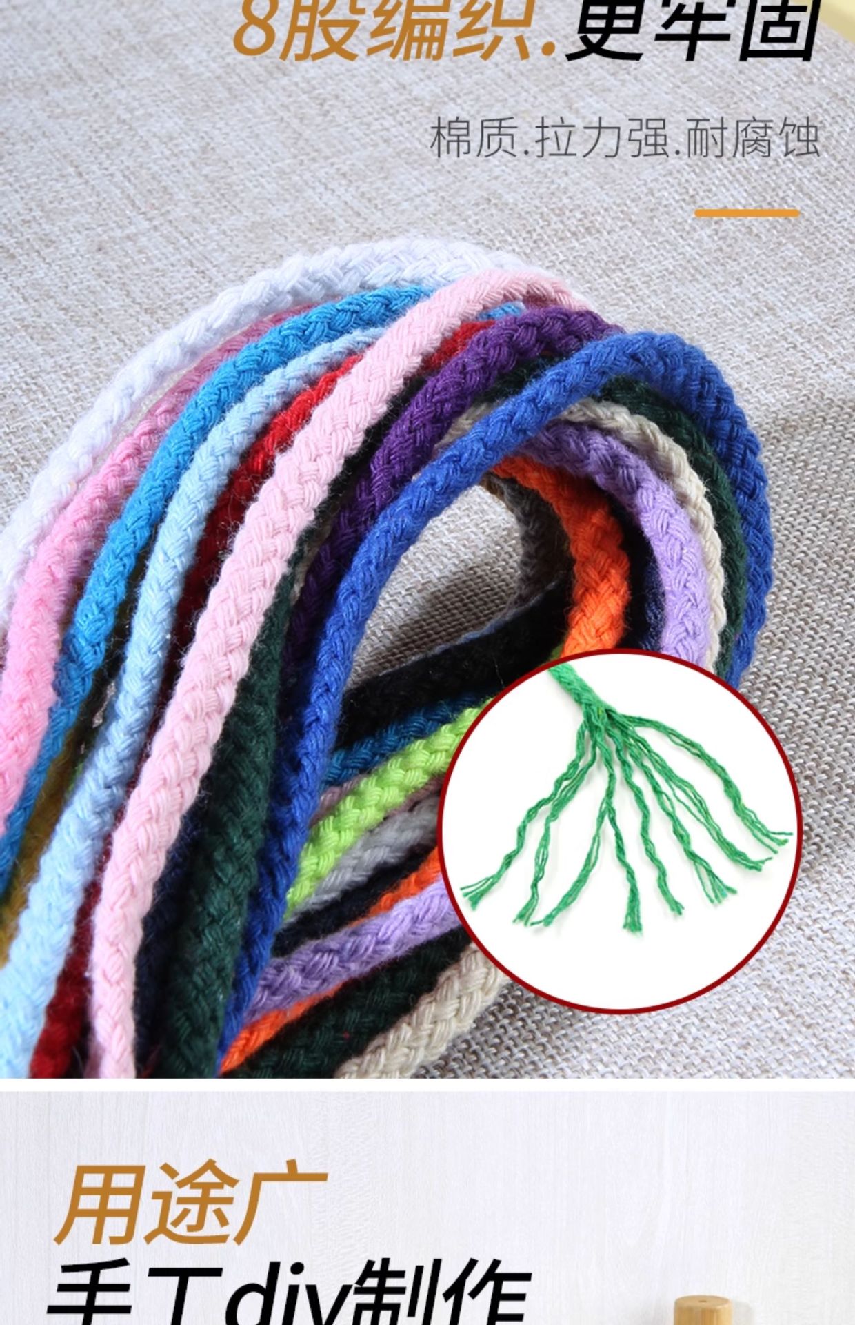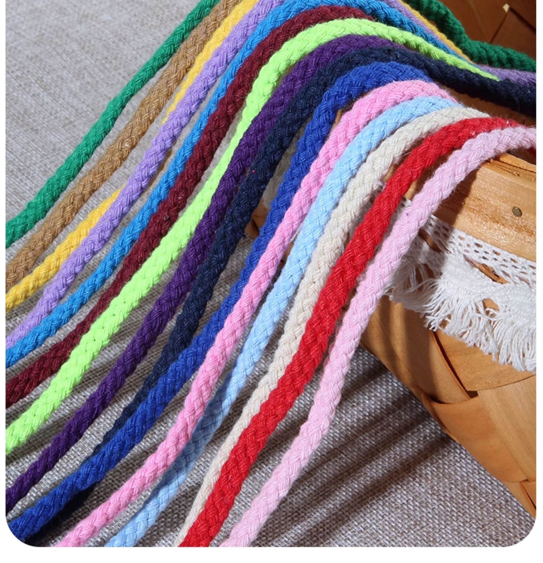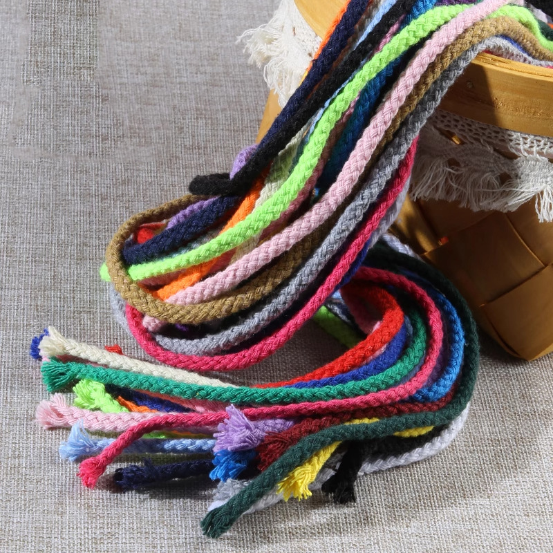 두께 5mm의 다채로운 면 로프 10m diy 손으로 짠 면 로프 8 가닥 묶음 로프 포켓 졸라 매는 끈 모자 로프스토어 가기
